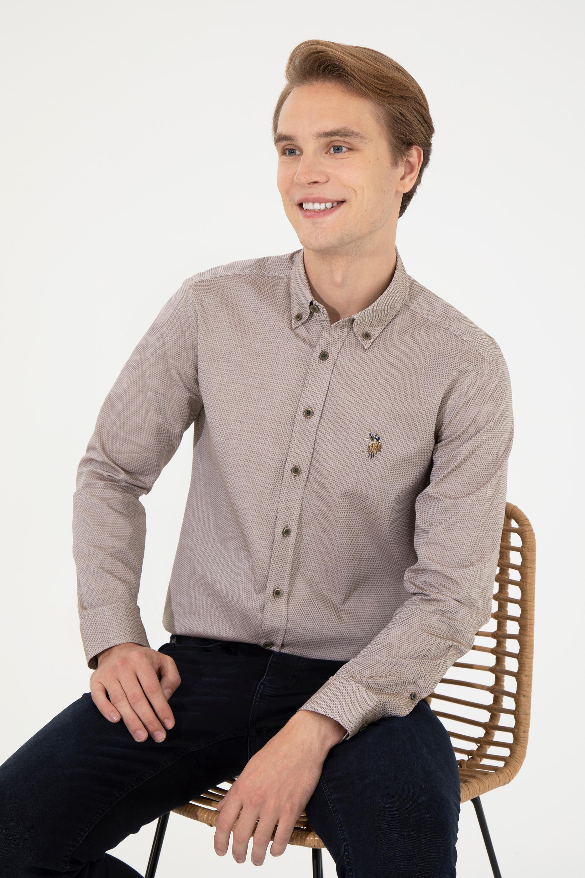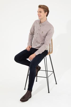 Erkek Koyu Haki Uzun Kollu Basic Gömlek