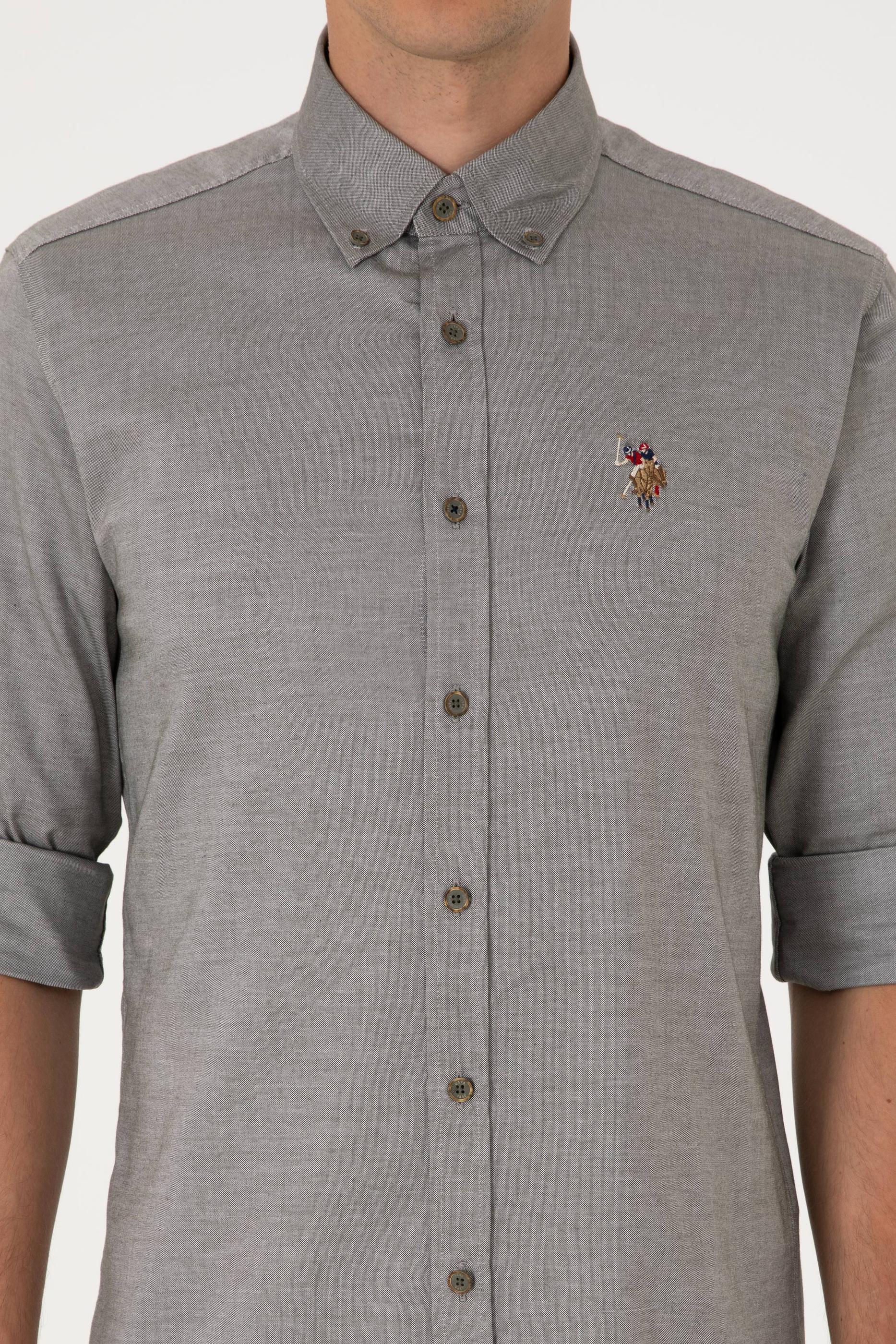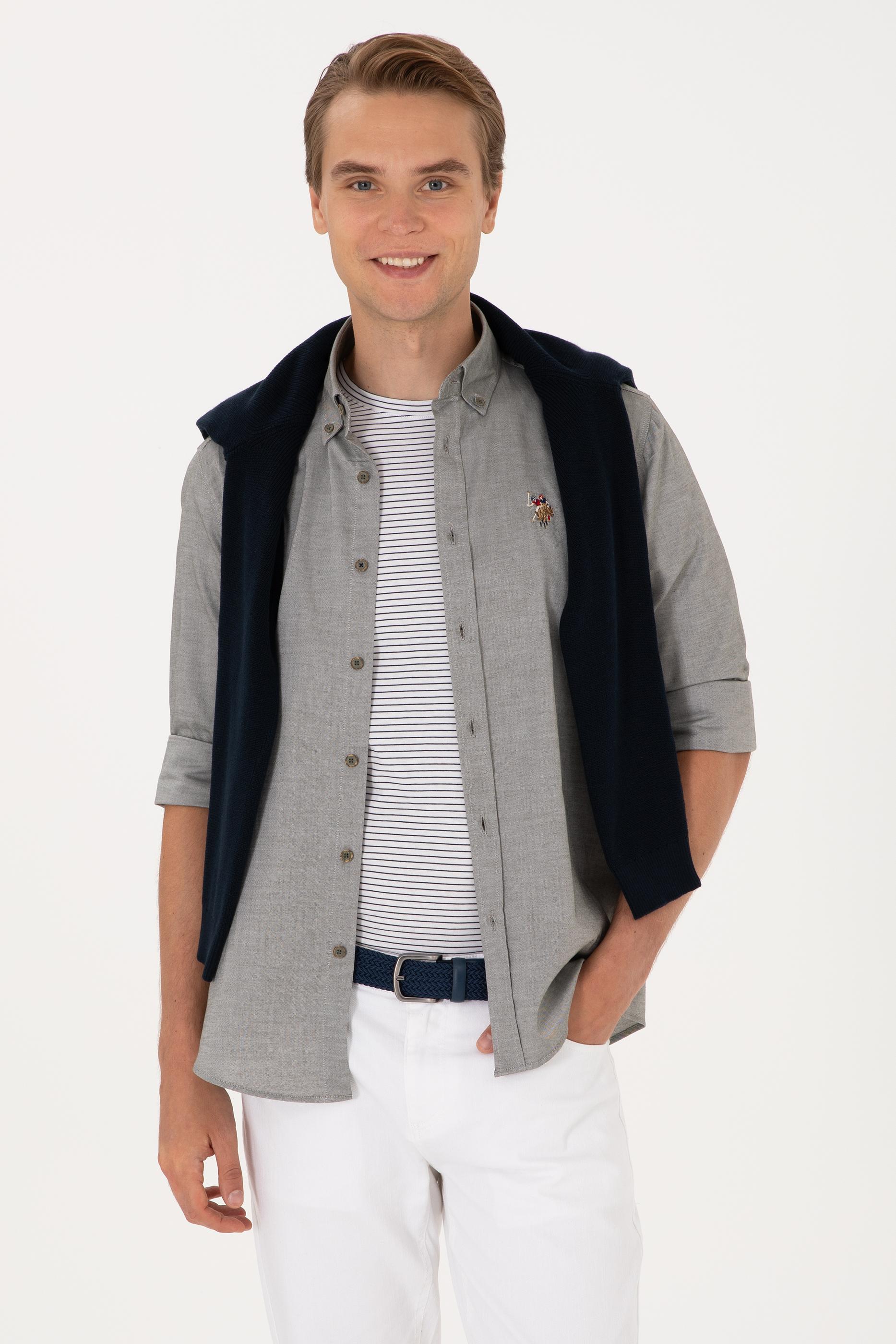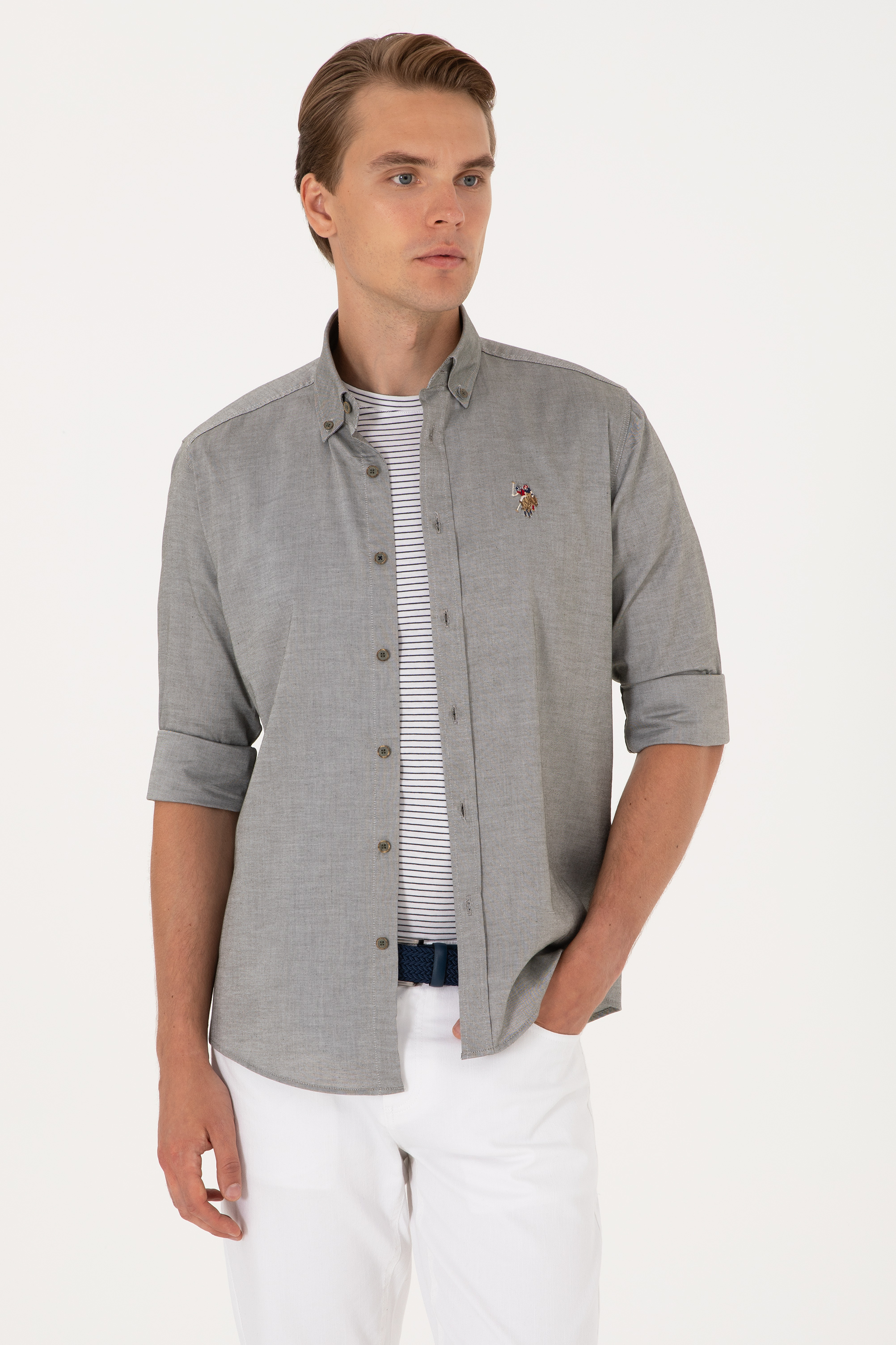 Erkek Koyu Haki Uzun Kollu Basic Gömlek