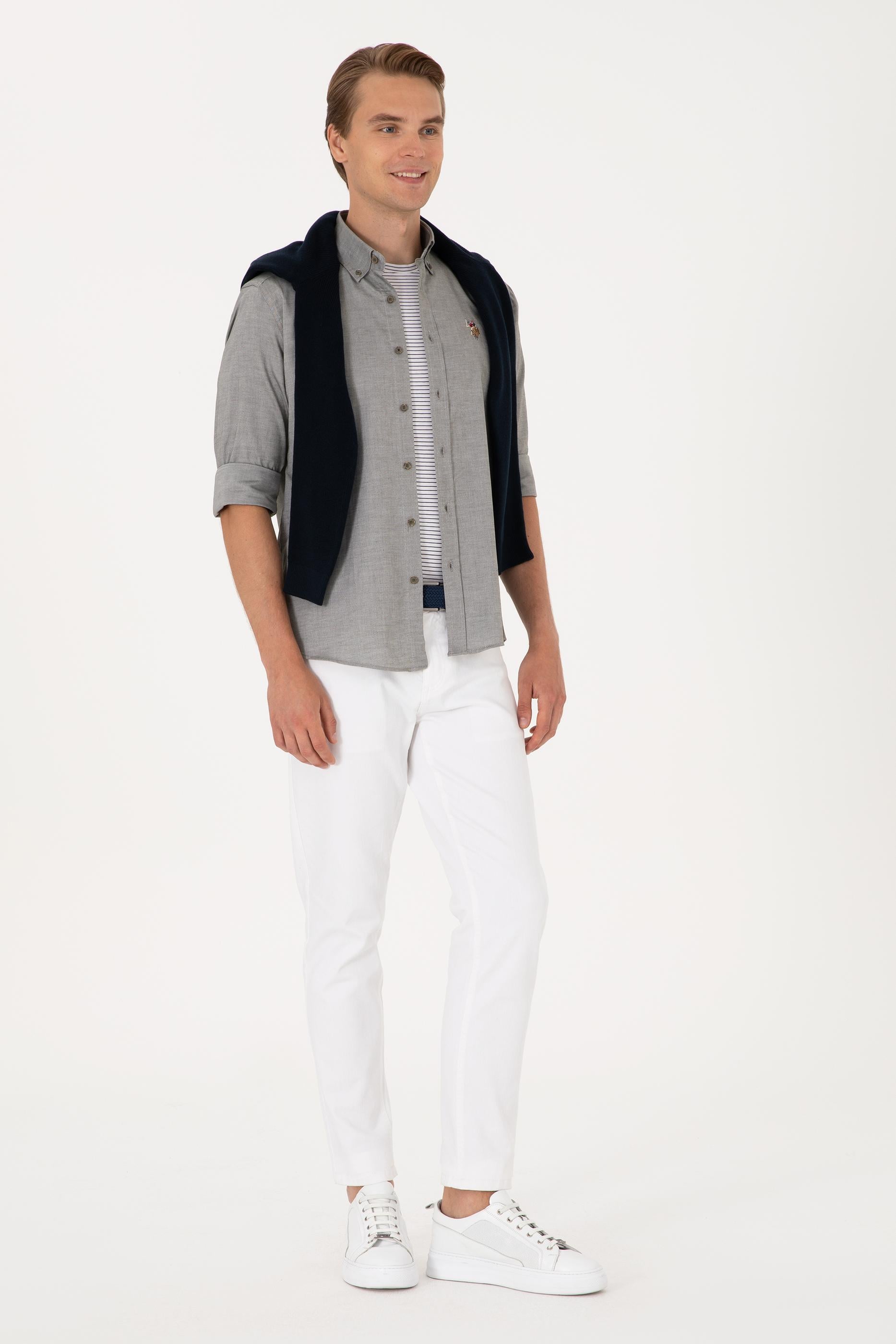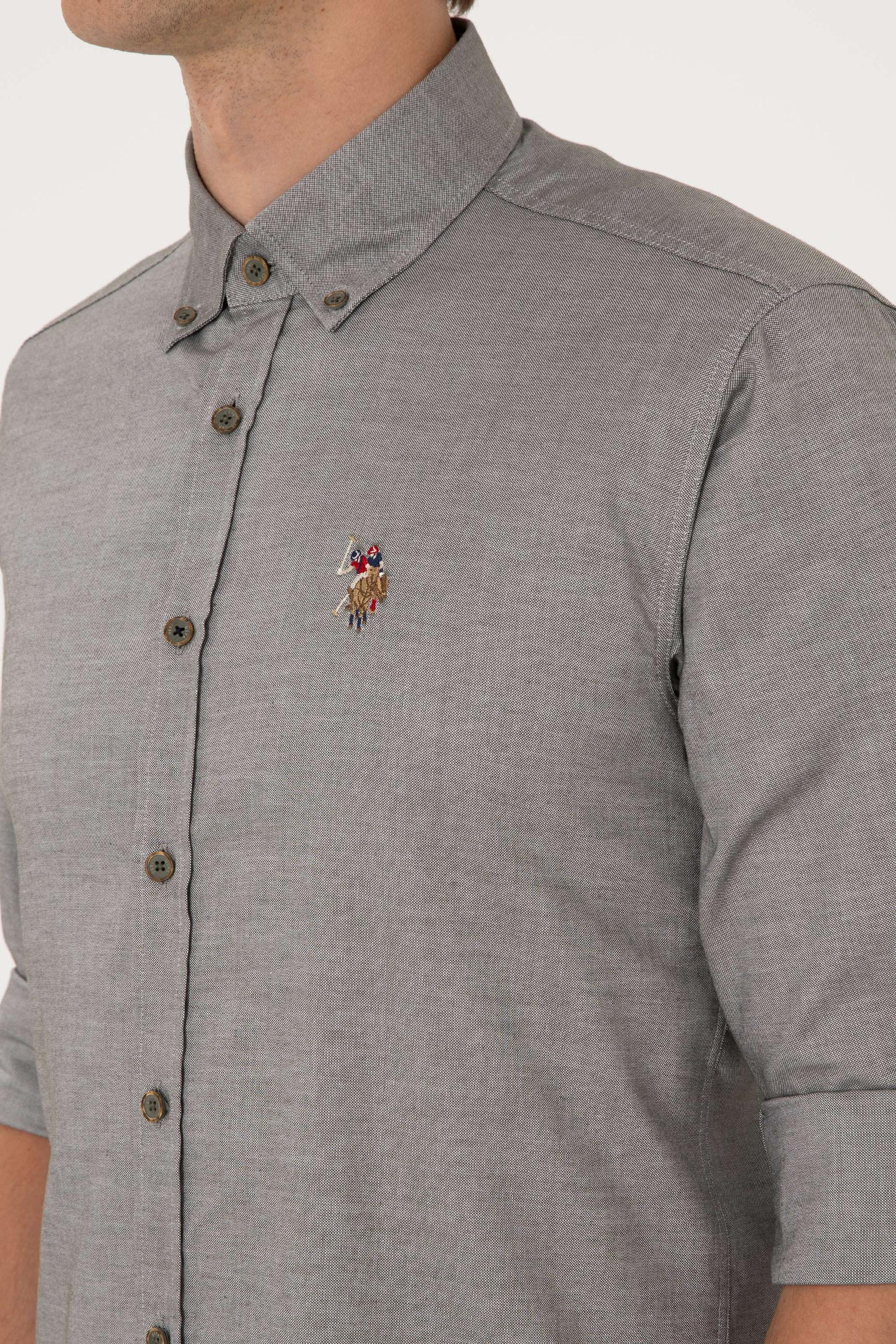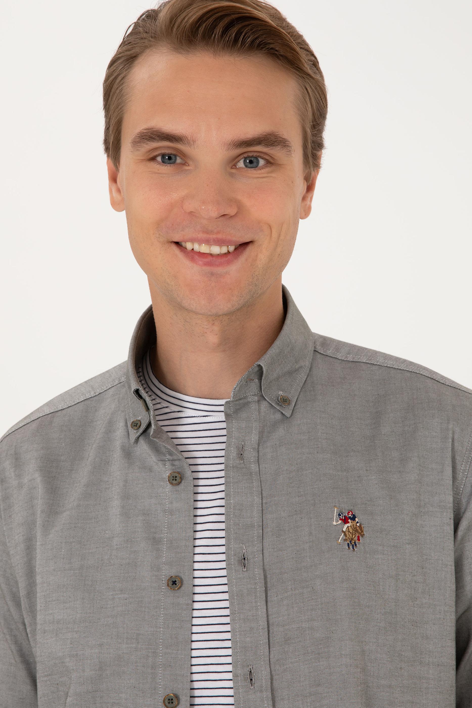 Erkek Koyu Haki Uzun Kollu Basic Gömlek