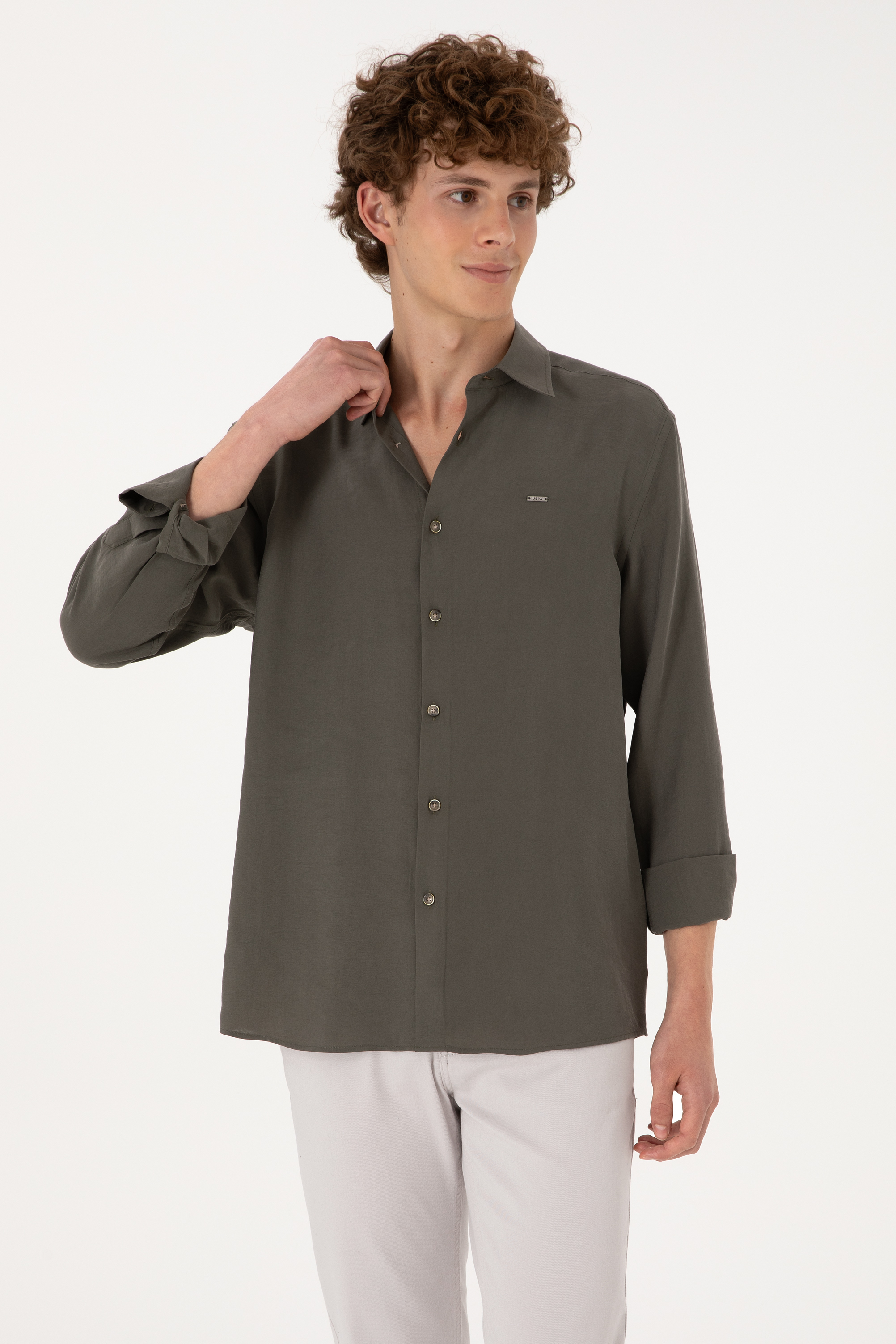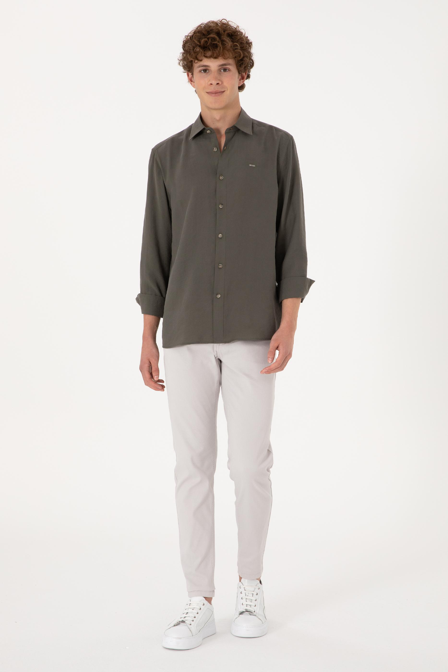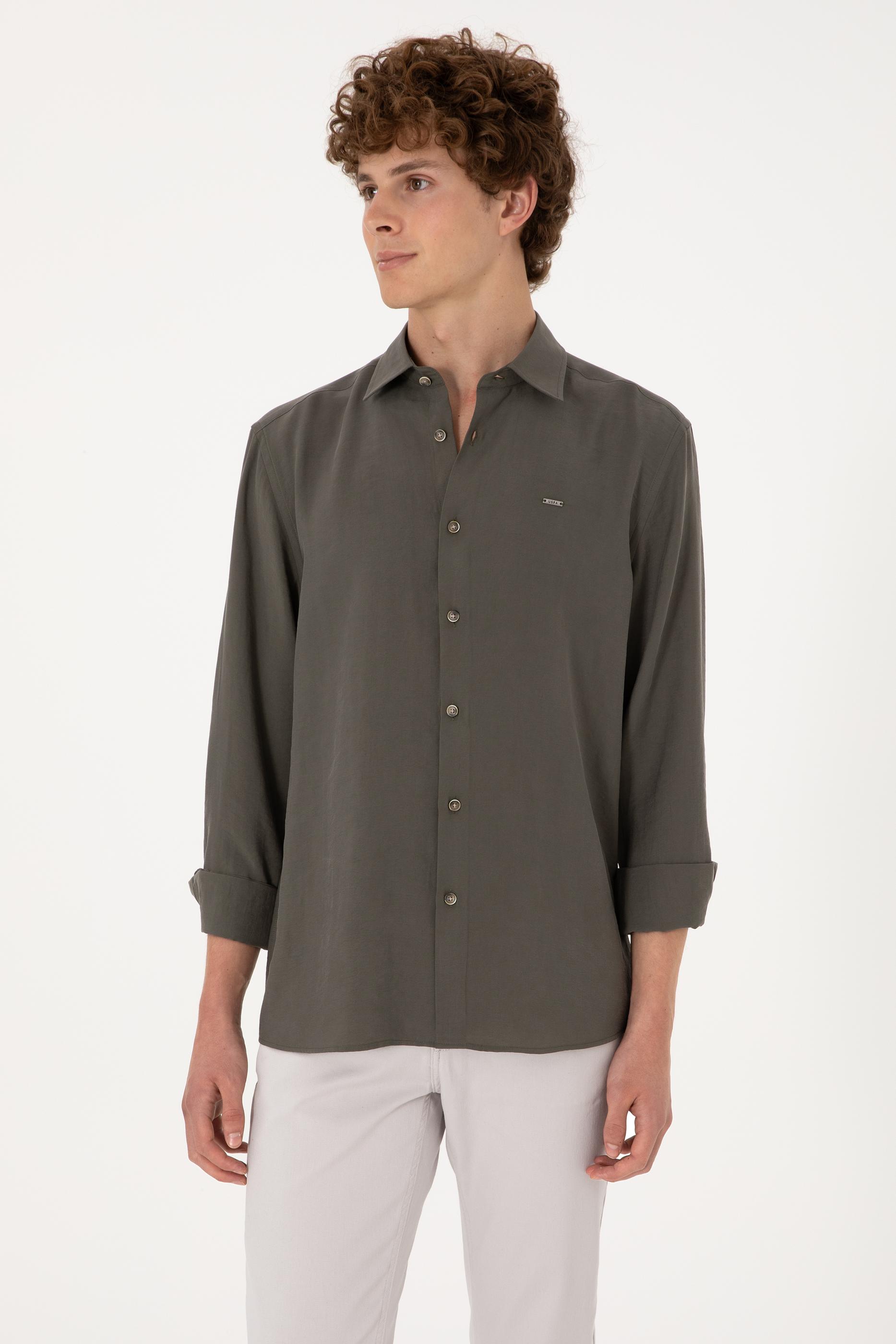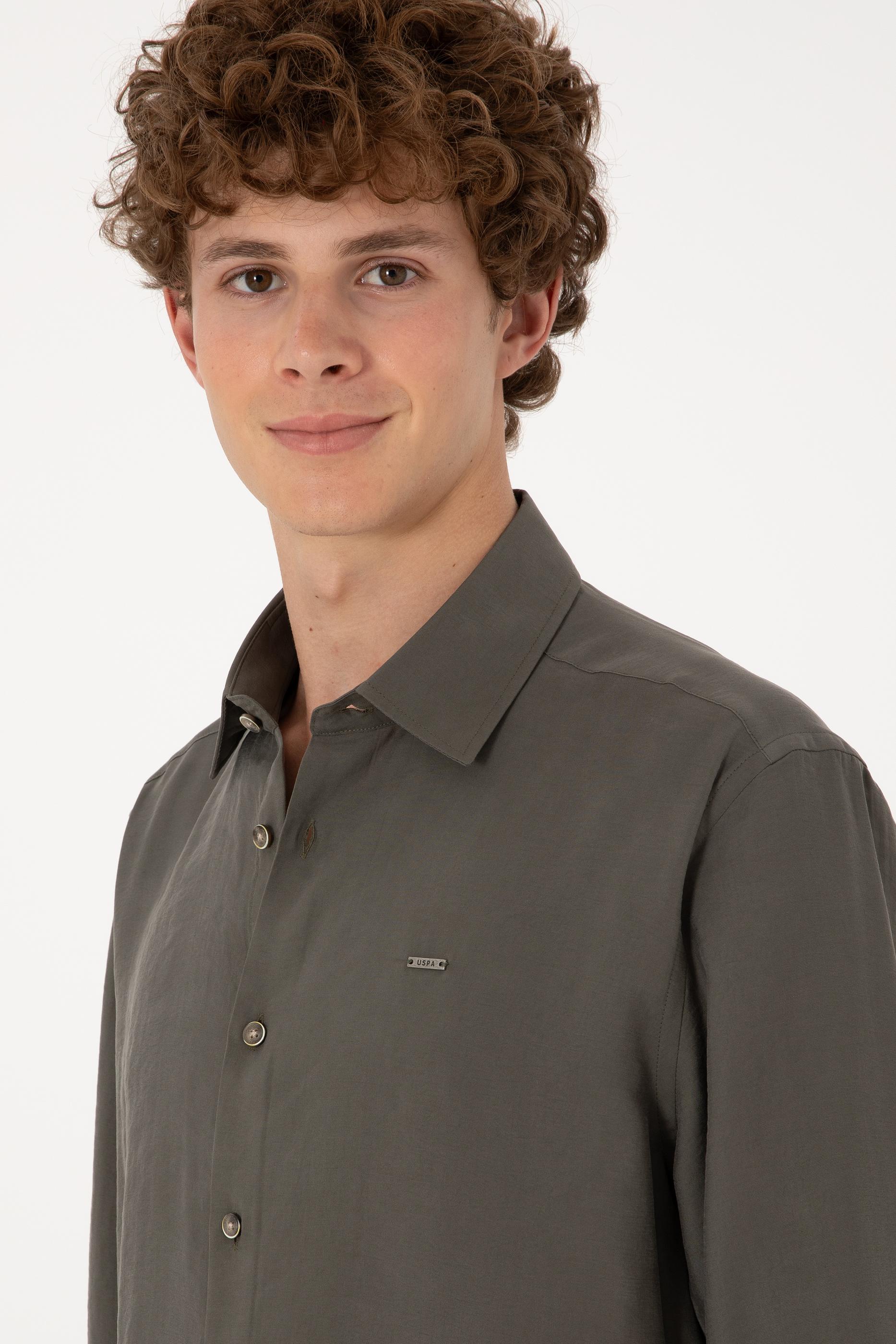 - Erkek Koyu Haki Uzun Kollu Gömlek