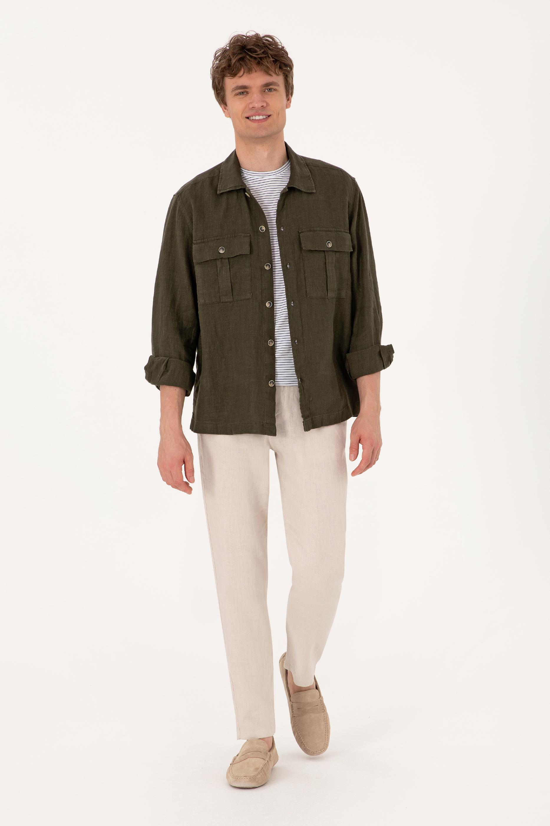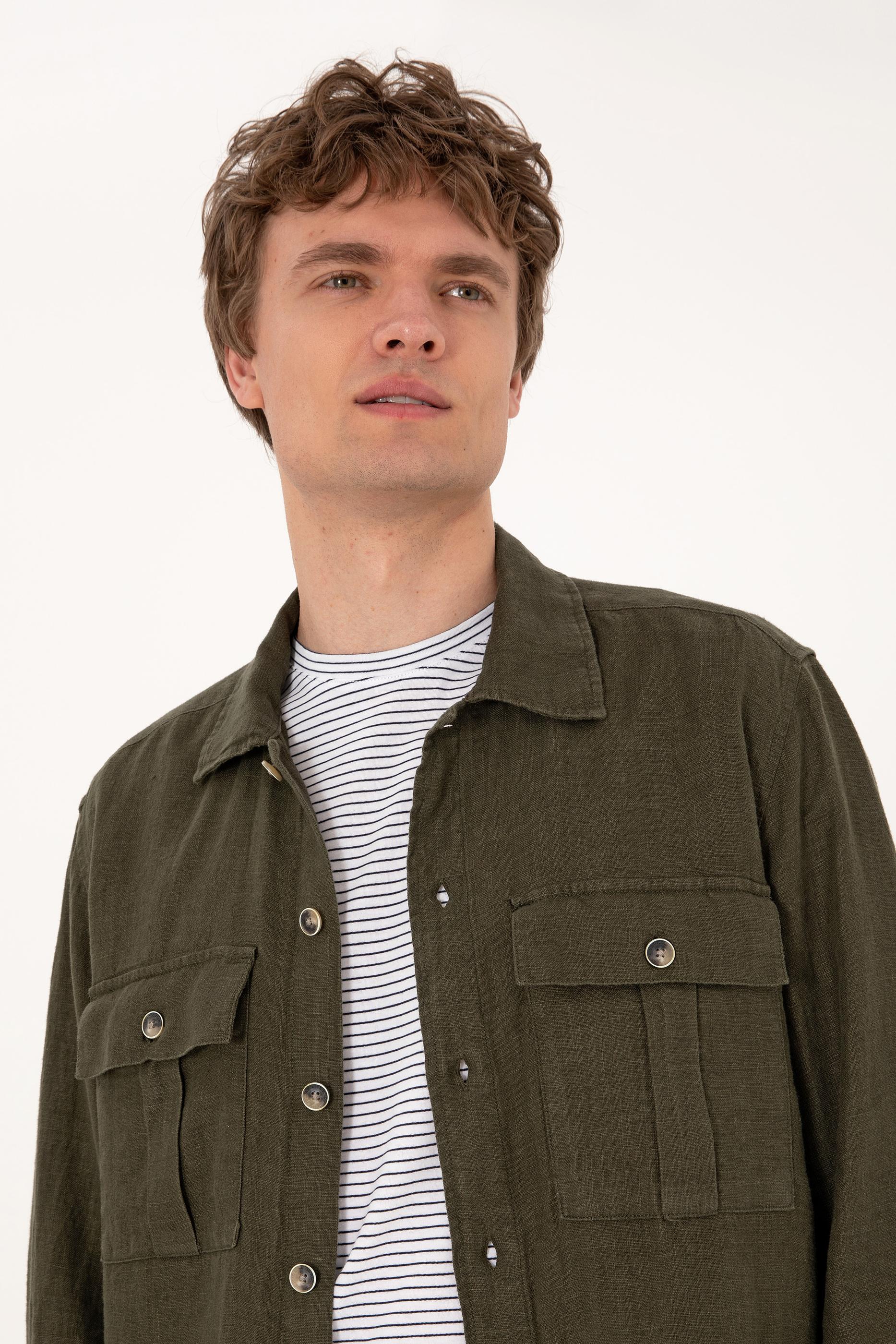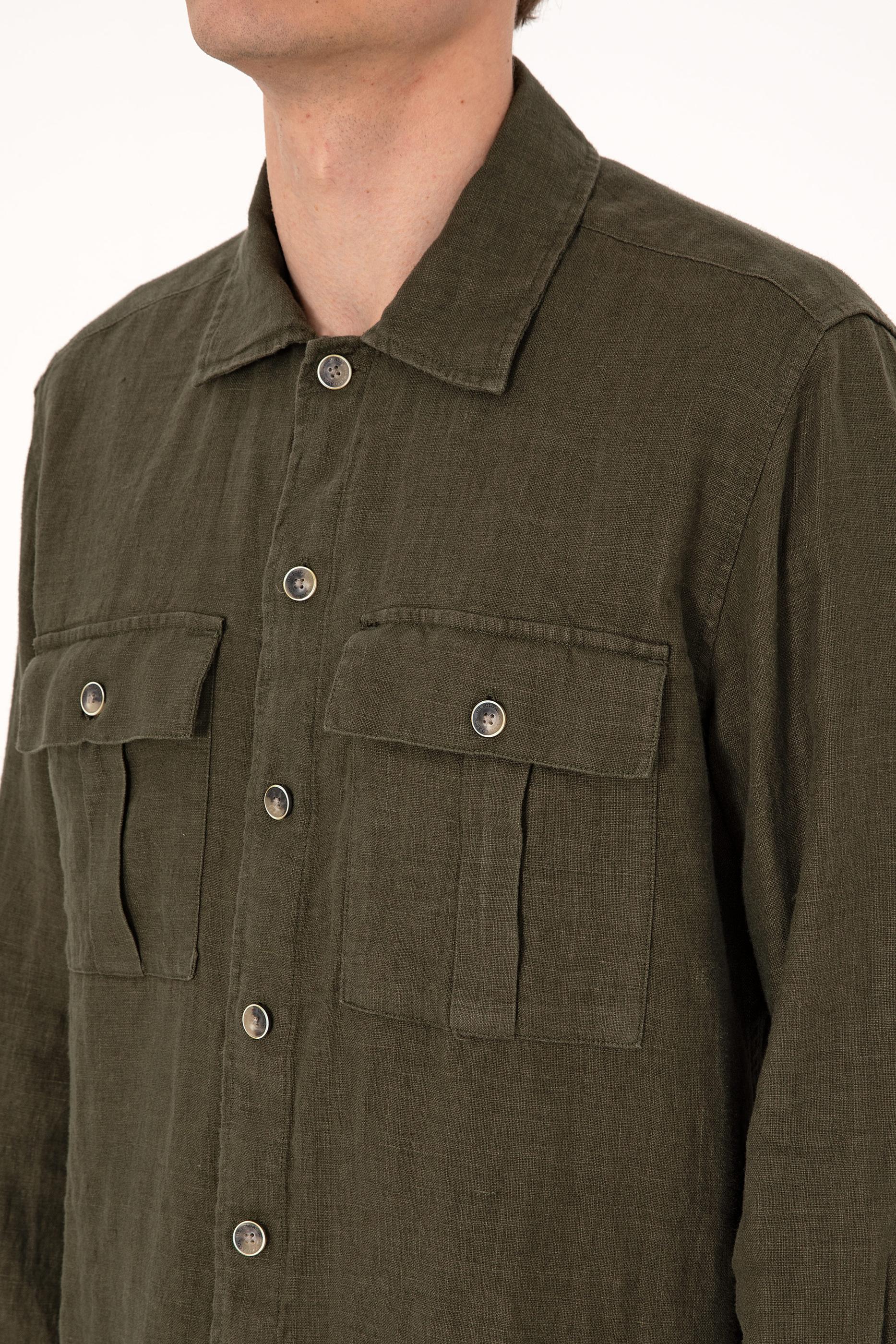 - Erkek Koyu Haki Uzun Kollu Gömlek