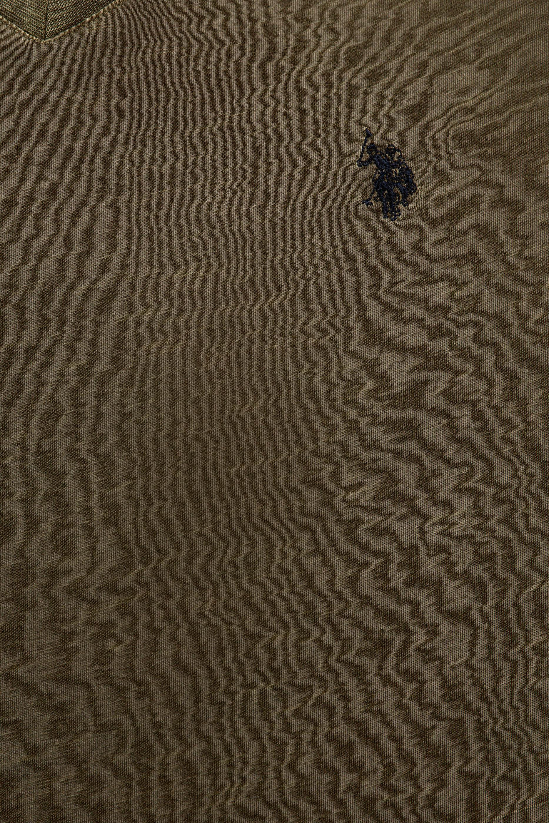 Erkek Koyu Haki V-Yaka T-Shirt Basic
