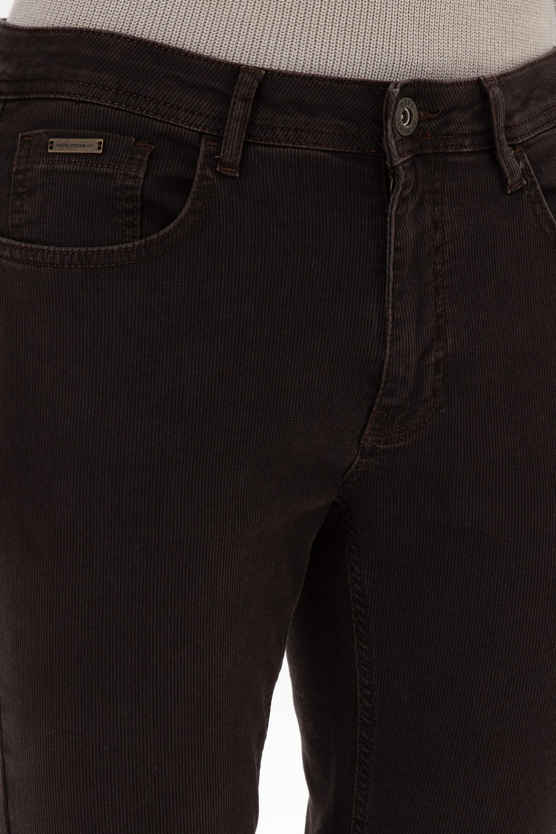 Erkek Koyu Kahverengi Slim Fit Jean Pantolon