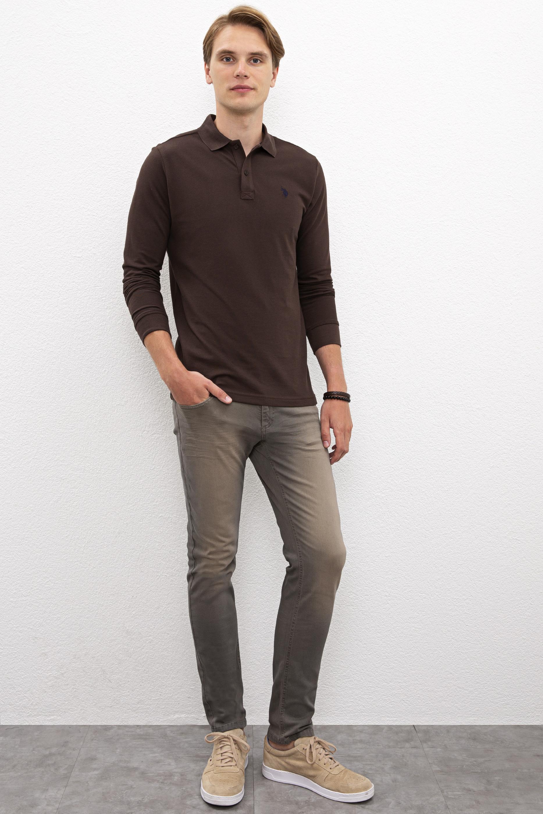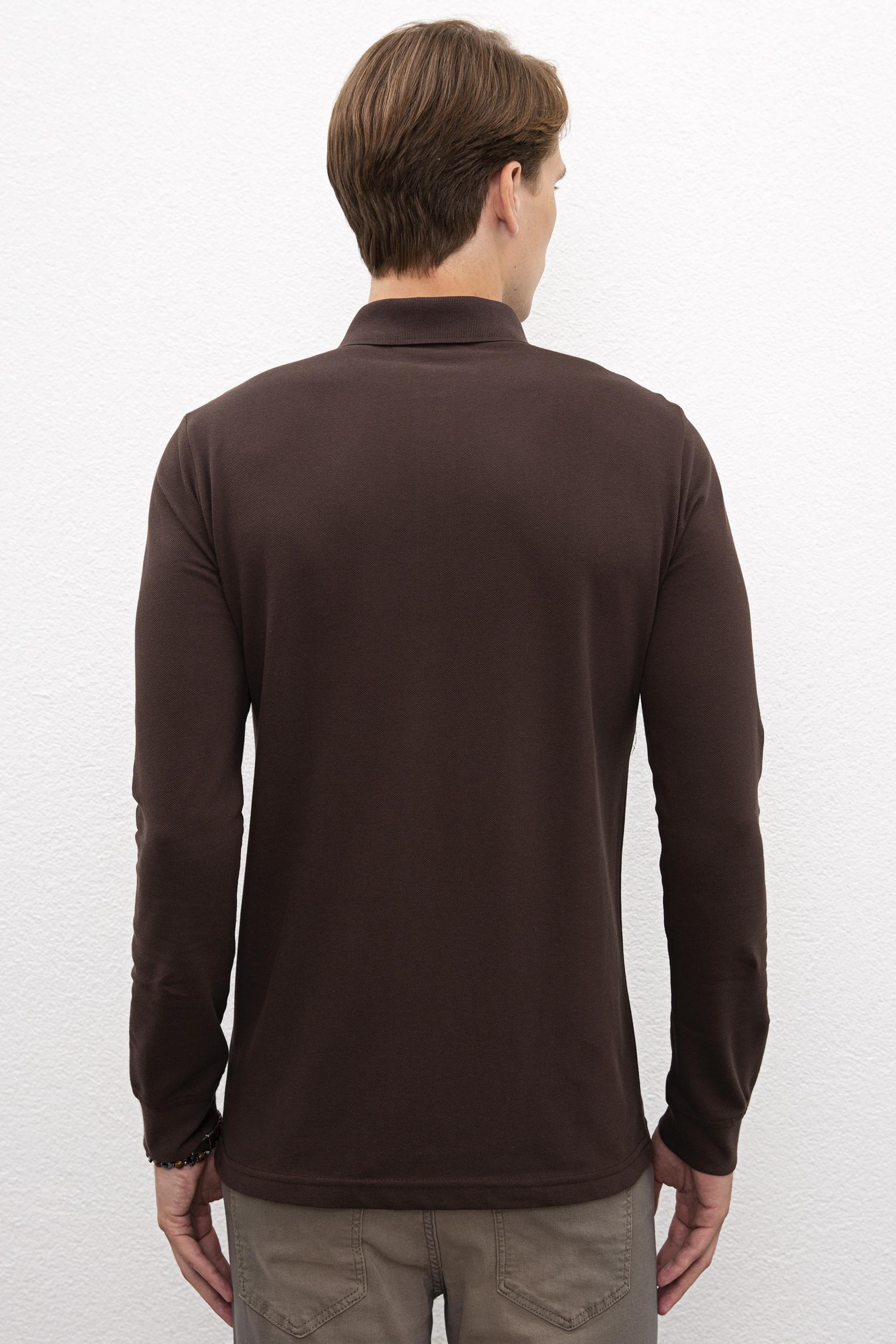 "name": "Erkek Koyu Kahverengi Polo Yaka Sweatshirt Basic",