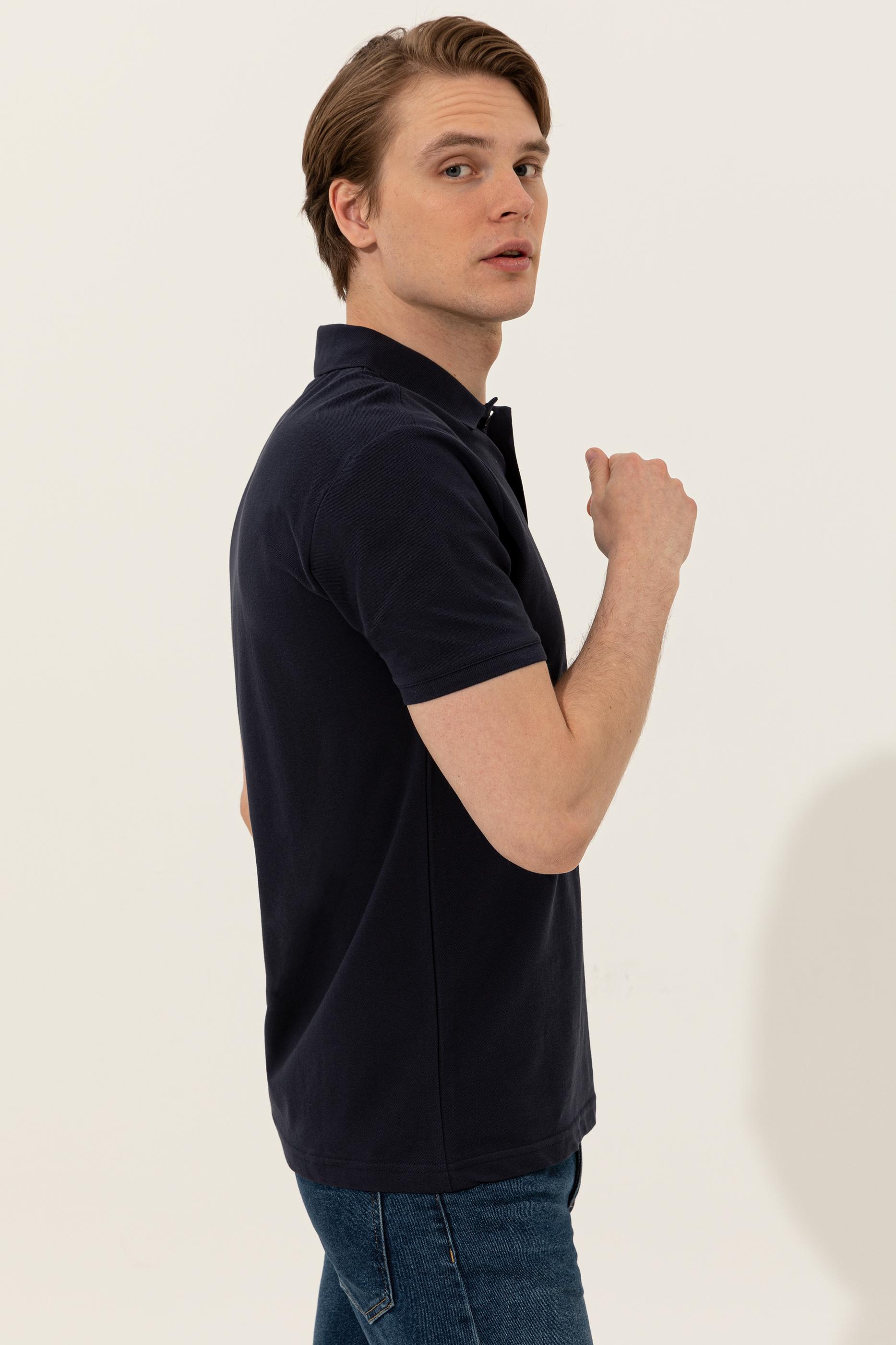 - Erkek Koyu Lacivert Polo Yaka Basic T-Shirt
