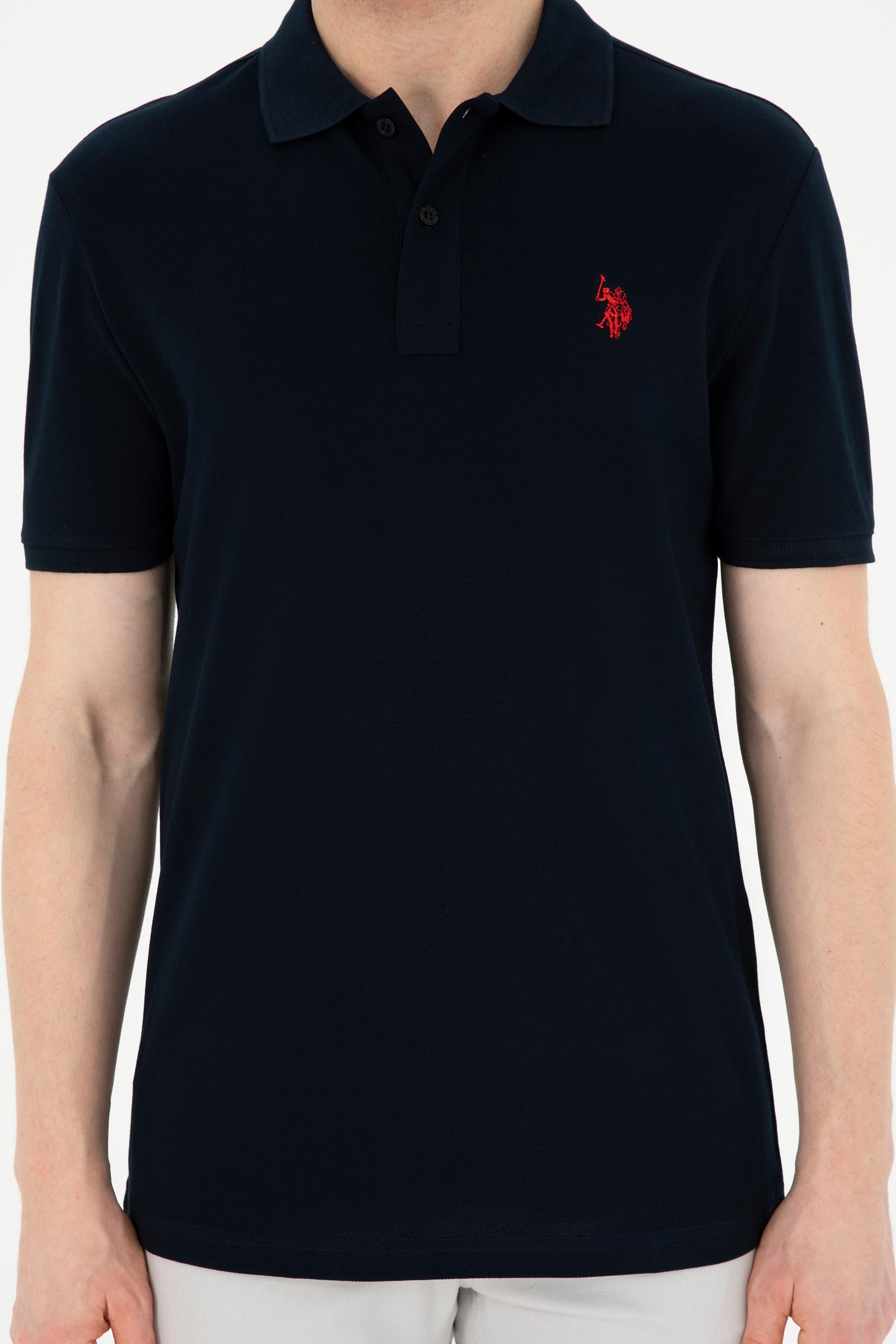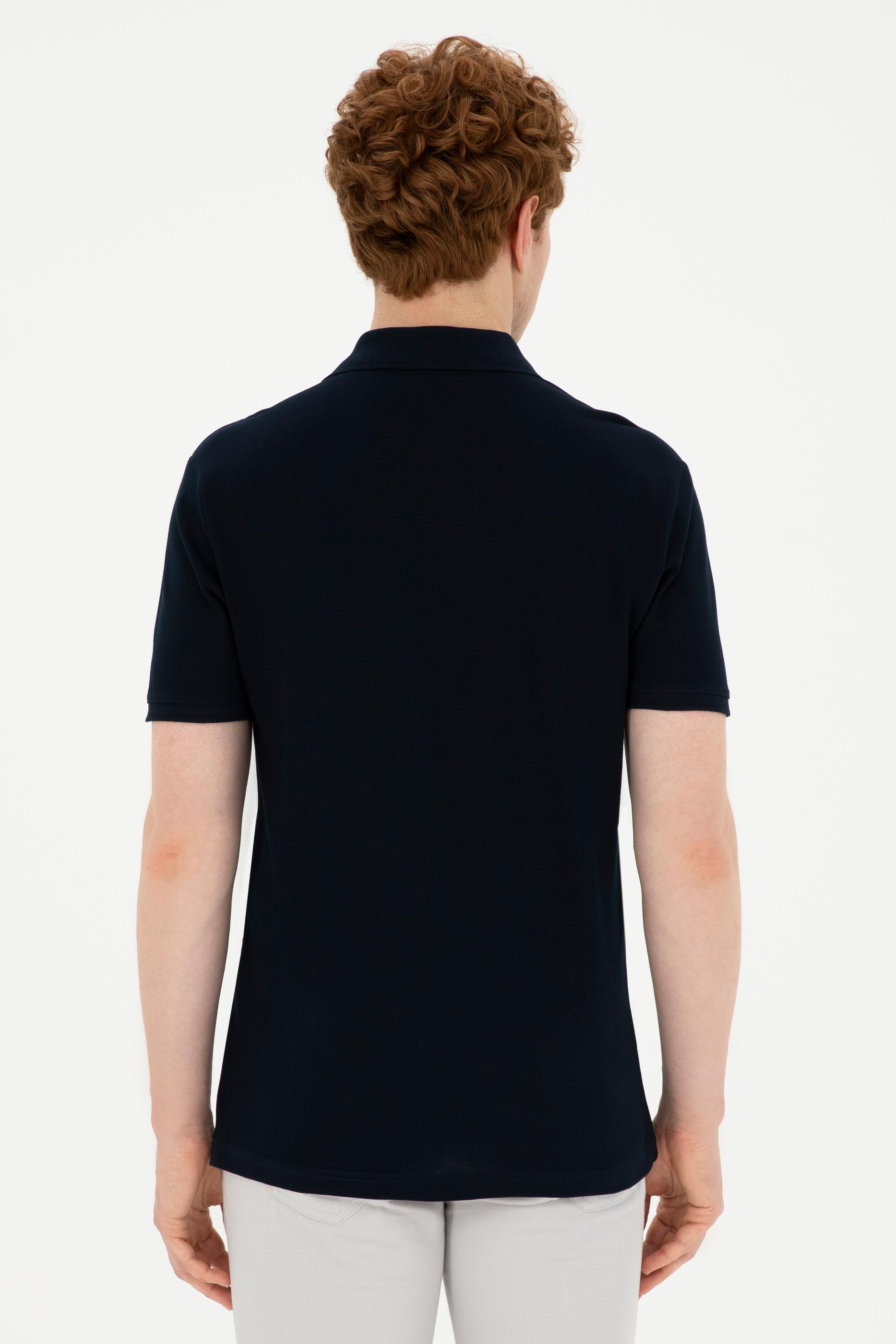 Erkek Slim Fit Polo Yaka Koyu Lacivert Basic Tişört