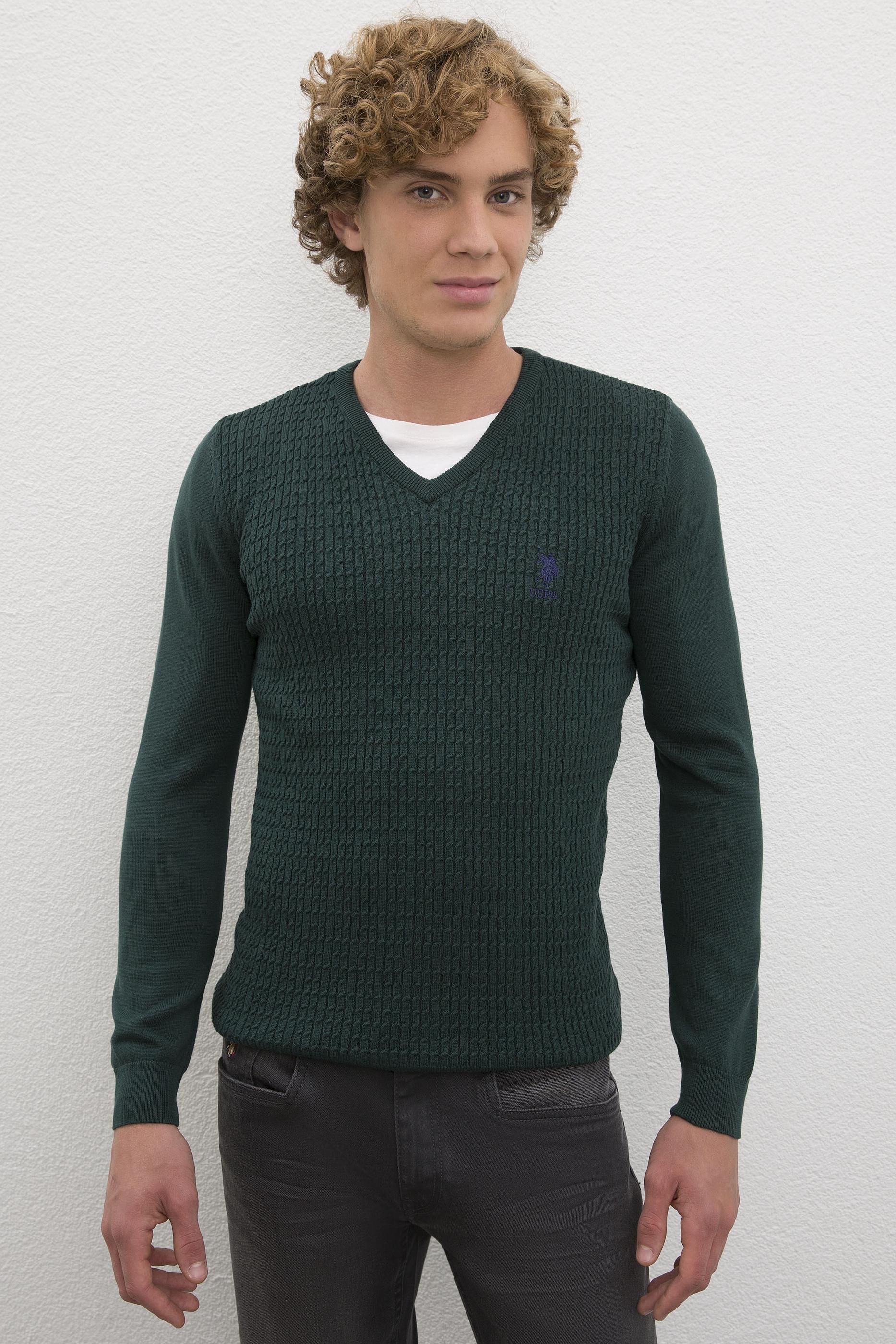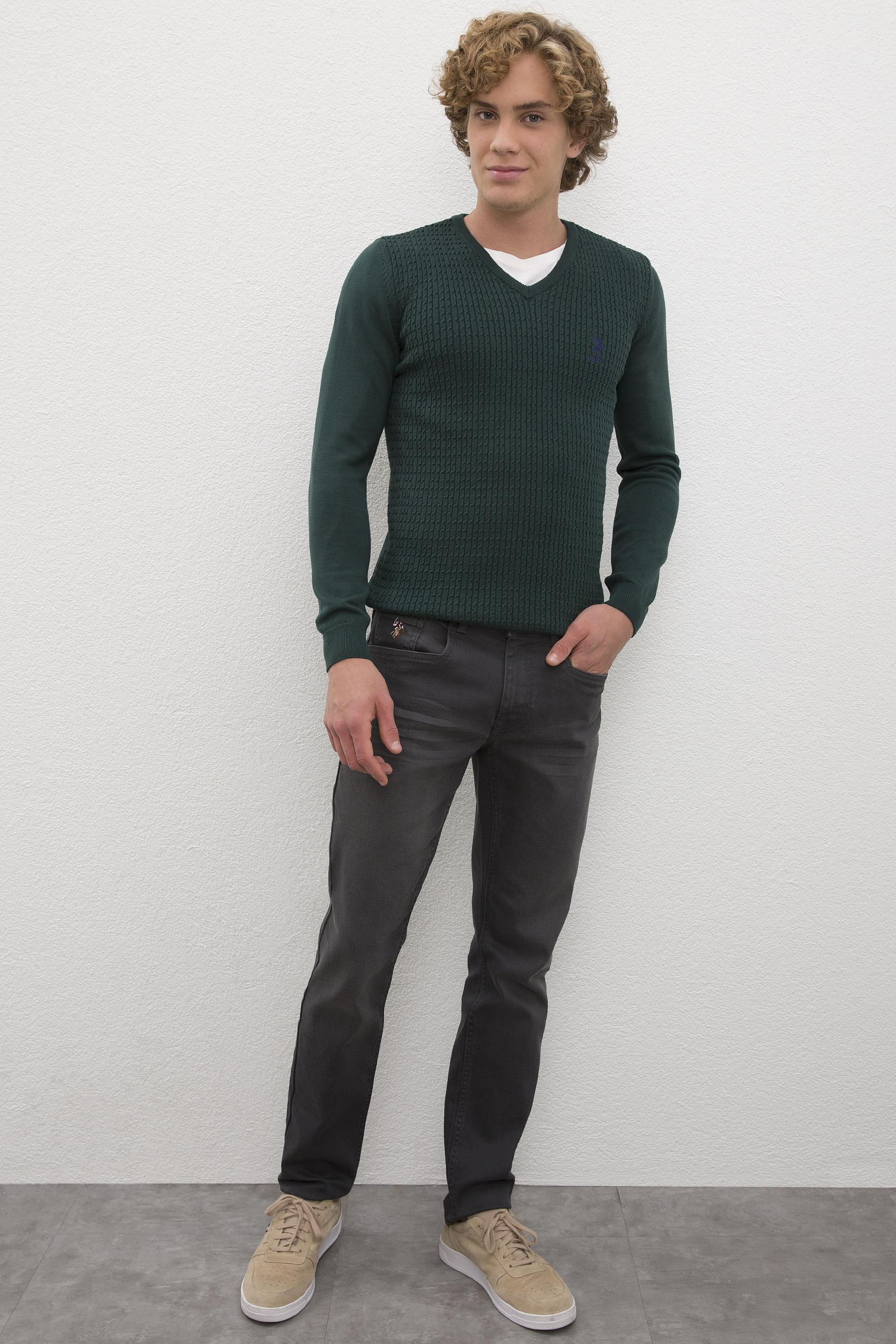 Erkek Koyu Yeşil Basic Kazak - 50224991013