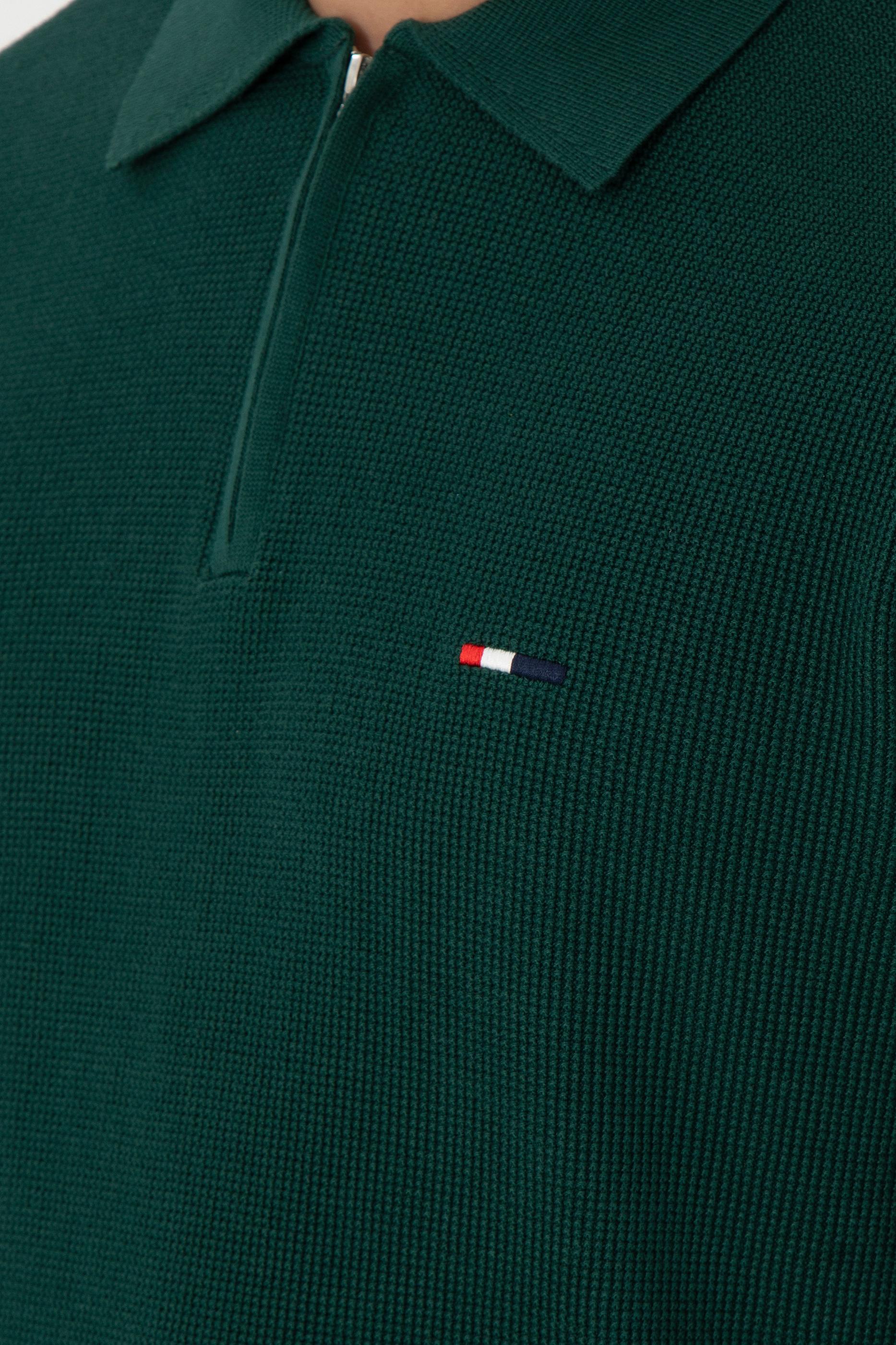 Erkek Regular Fit Yarım Fermuarlı Koyu Yeşil Basic Kazak