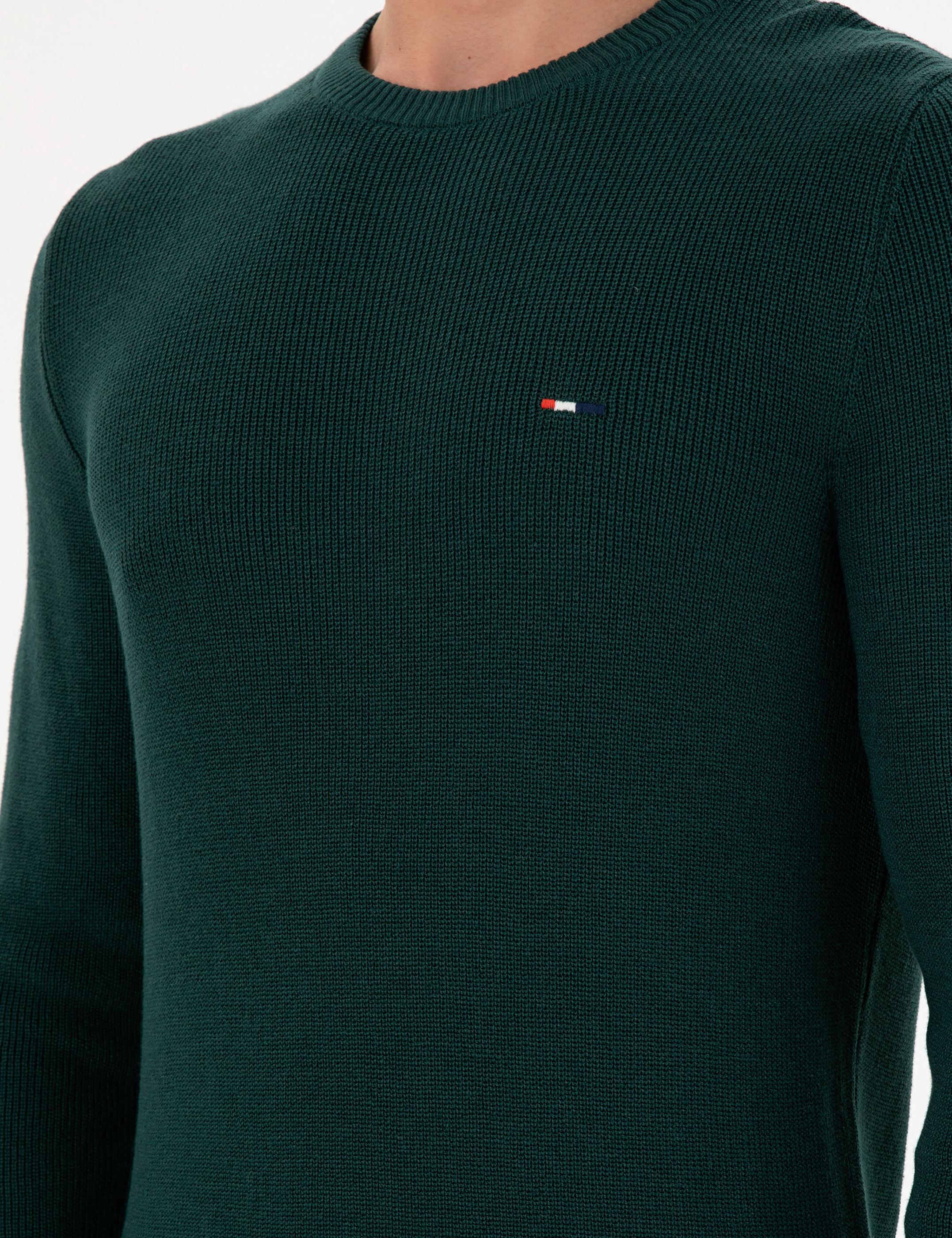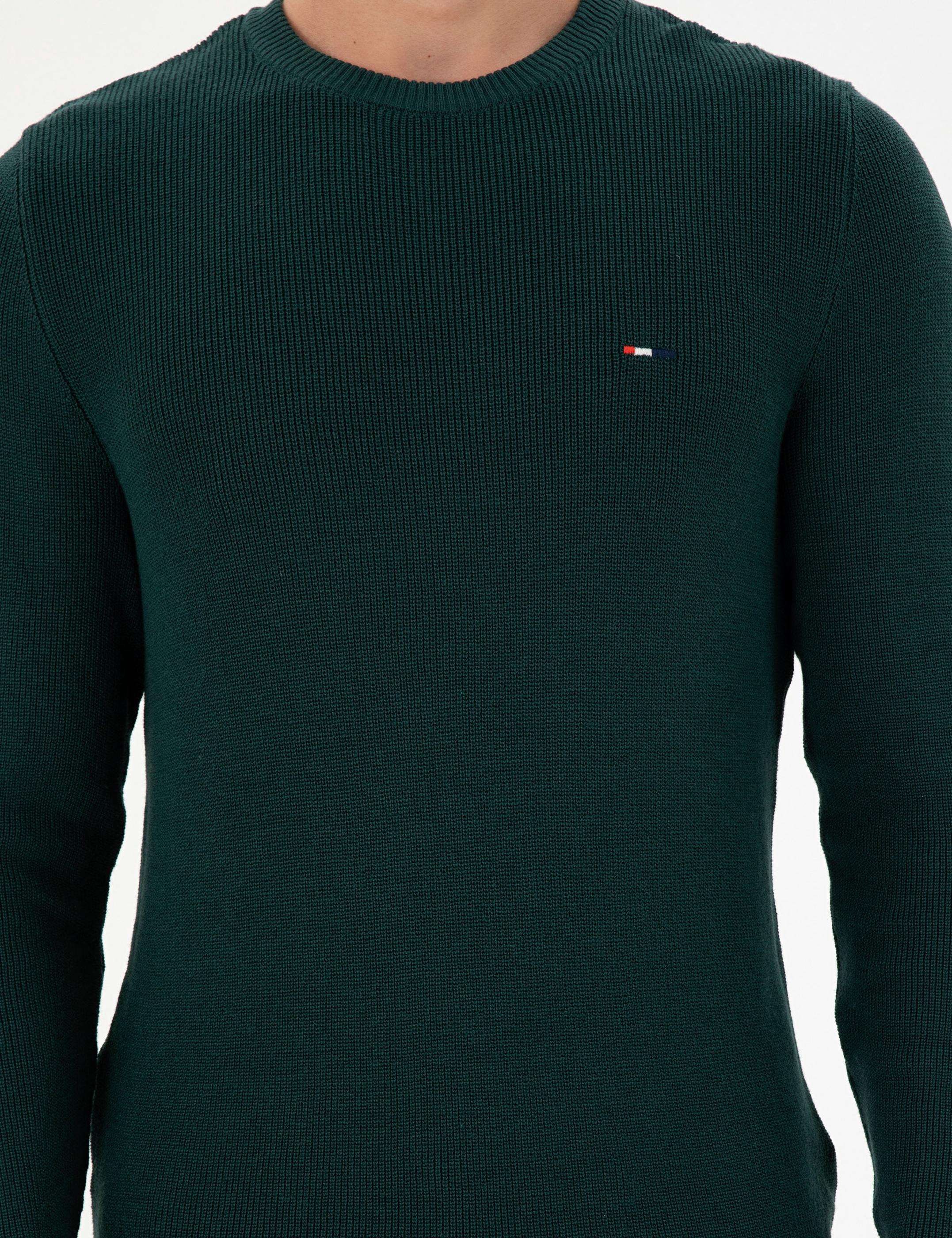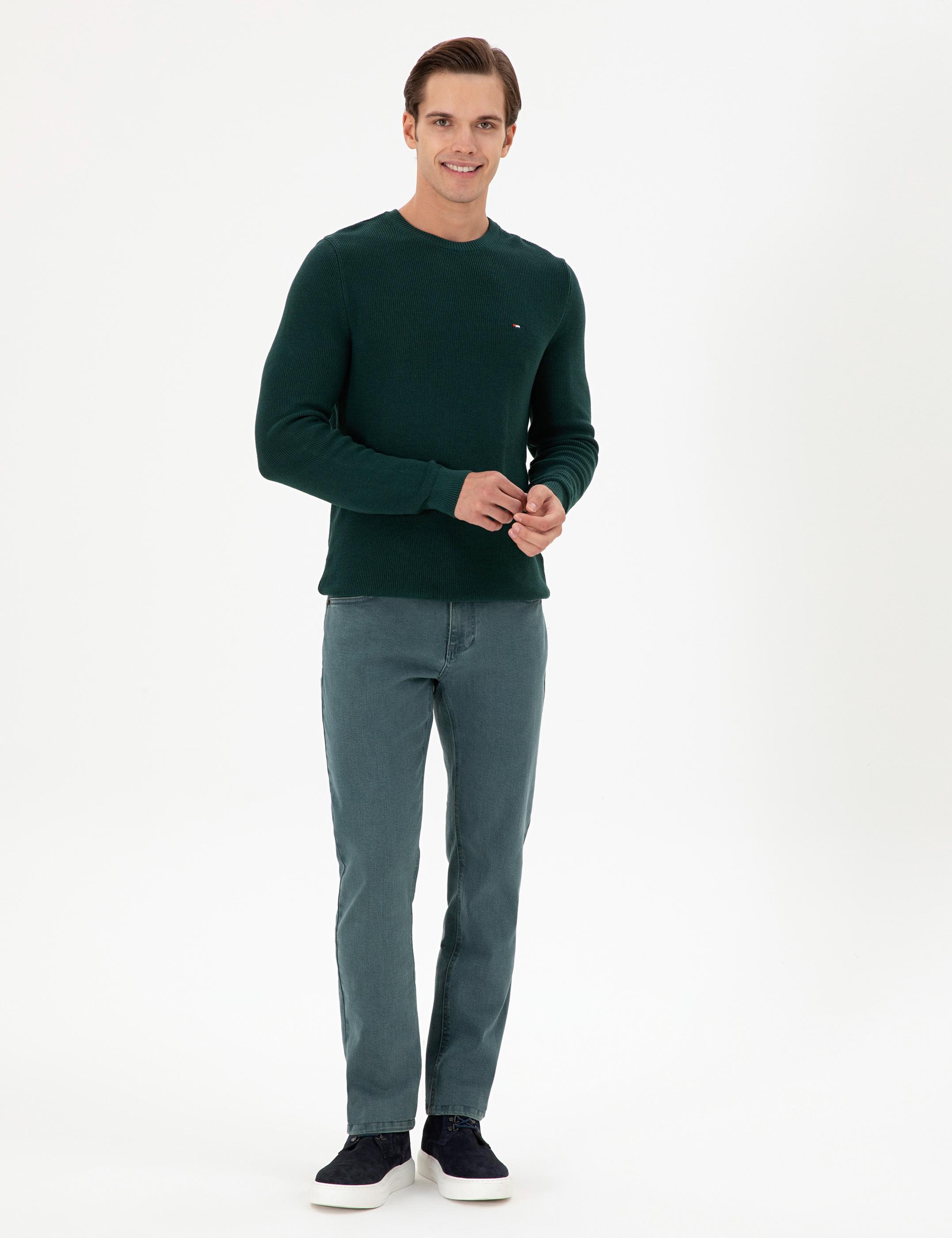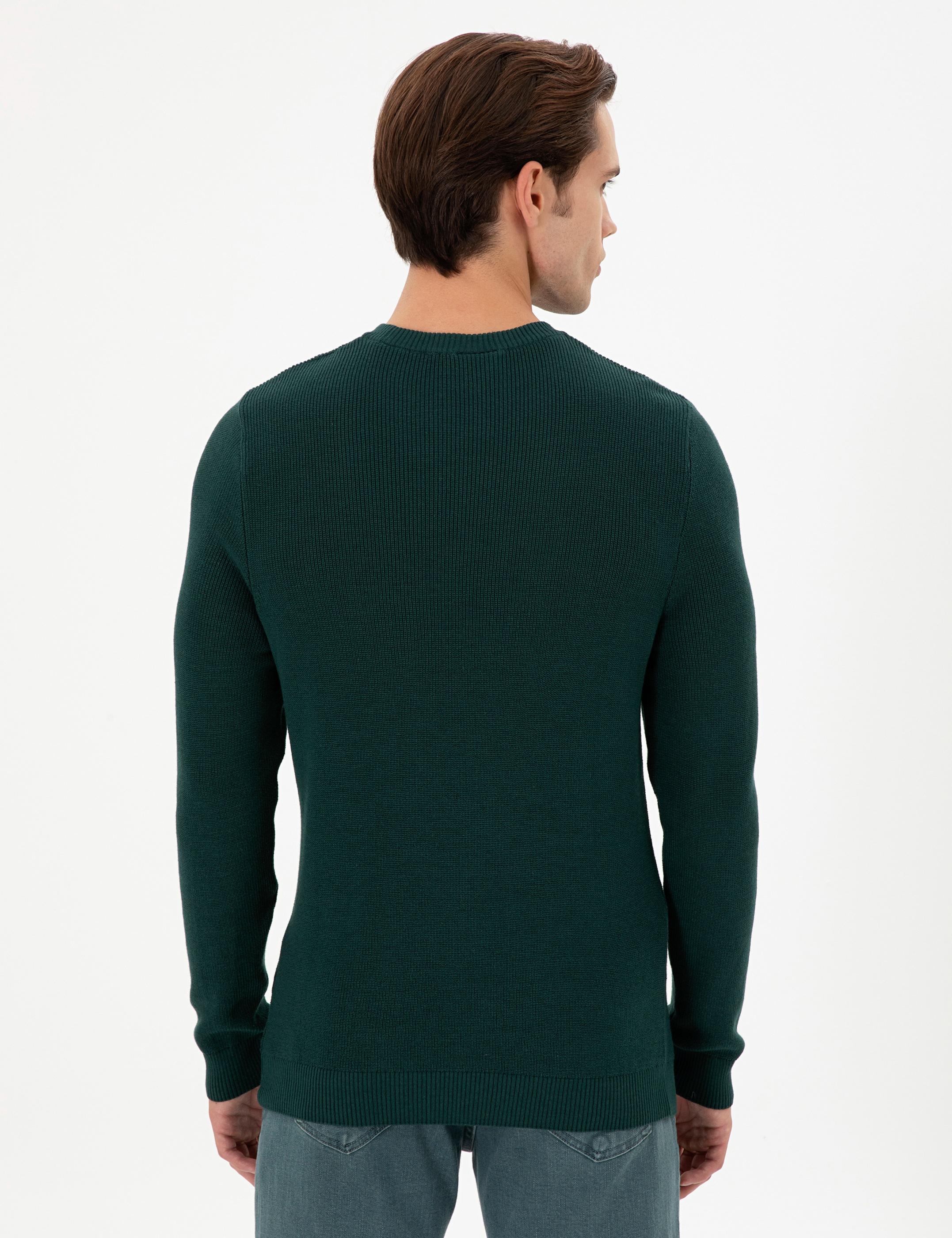 Erkek Slim Fit Bisiklet Yaka Koyu Yeşil Basic Kazak