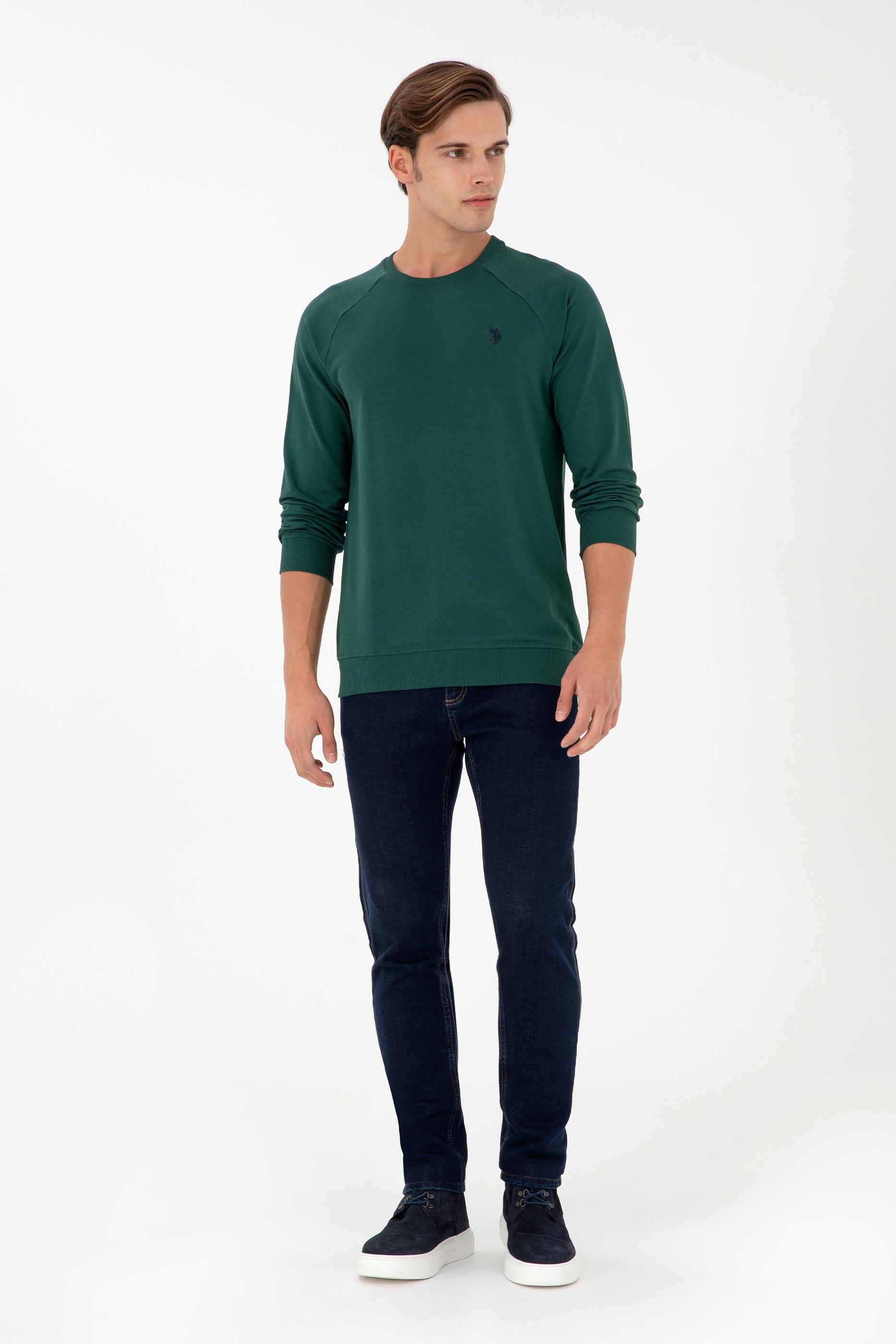 Erkek Koyu Yeşil Basic Sweatshirt
