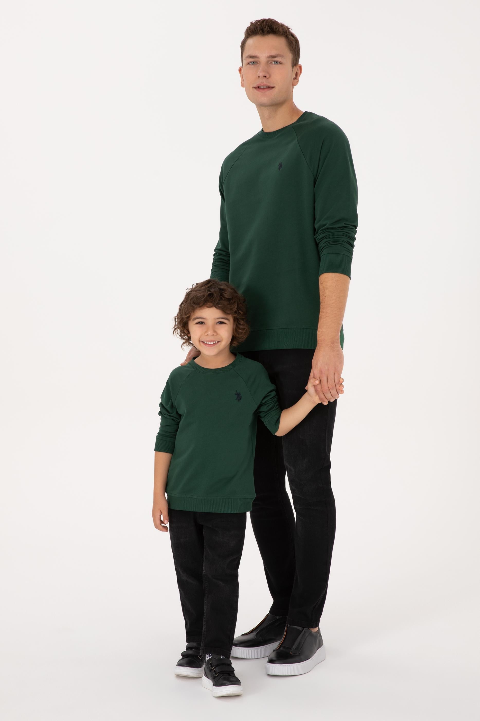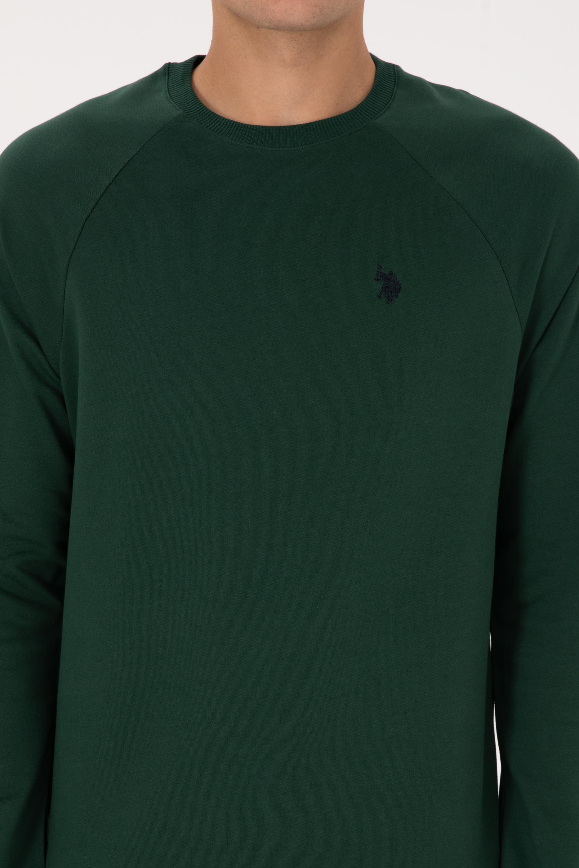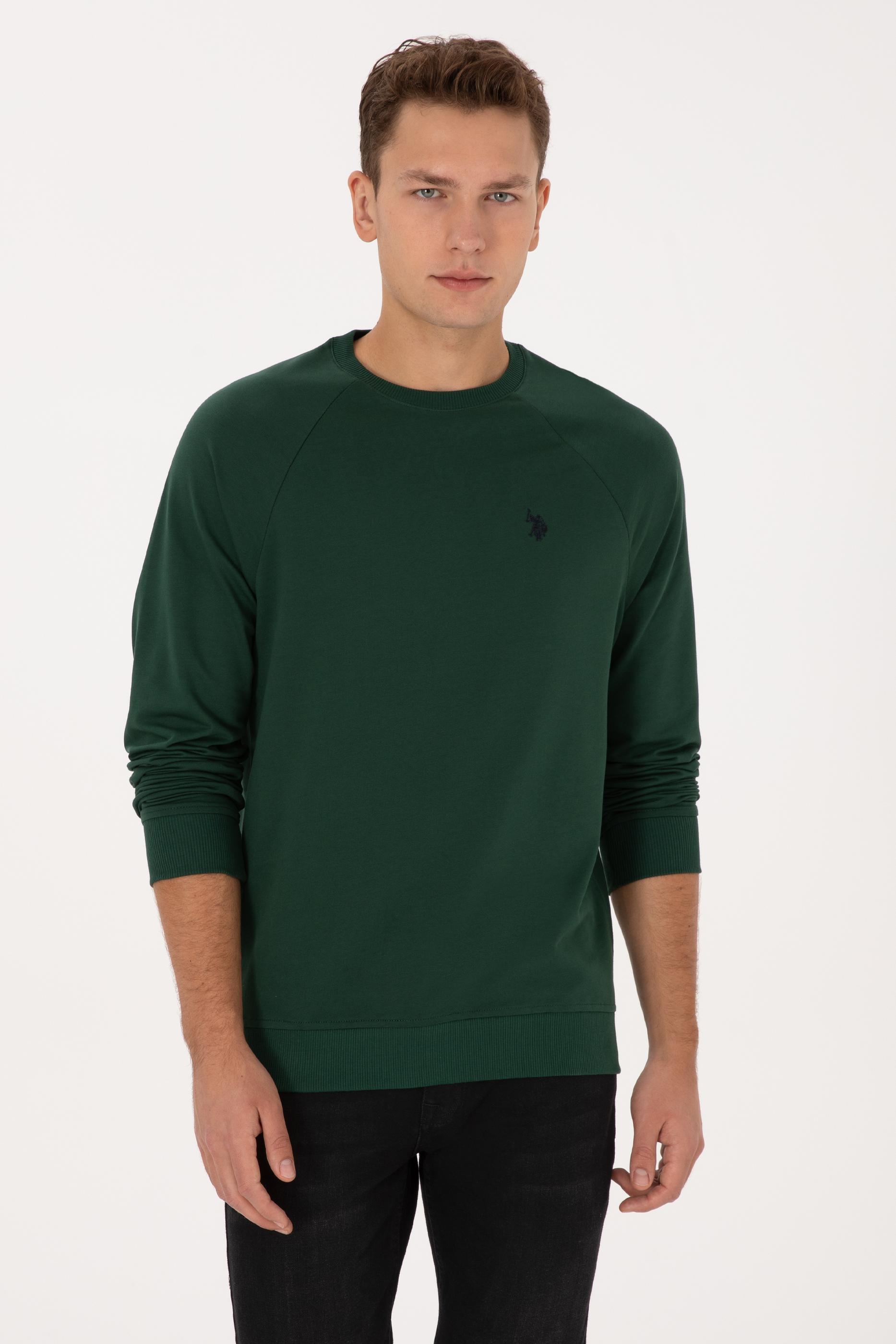 - Erkek Regular Fit Bisiklet Yaka Koyu Yeşil İnce Basic Sweatshirt