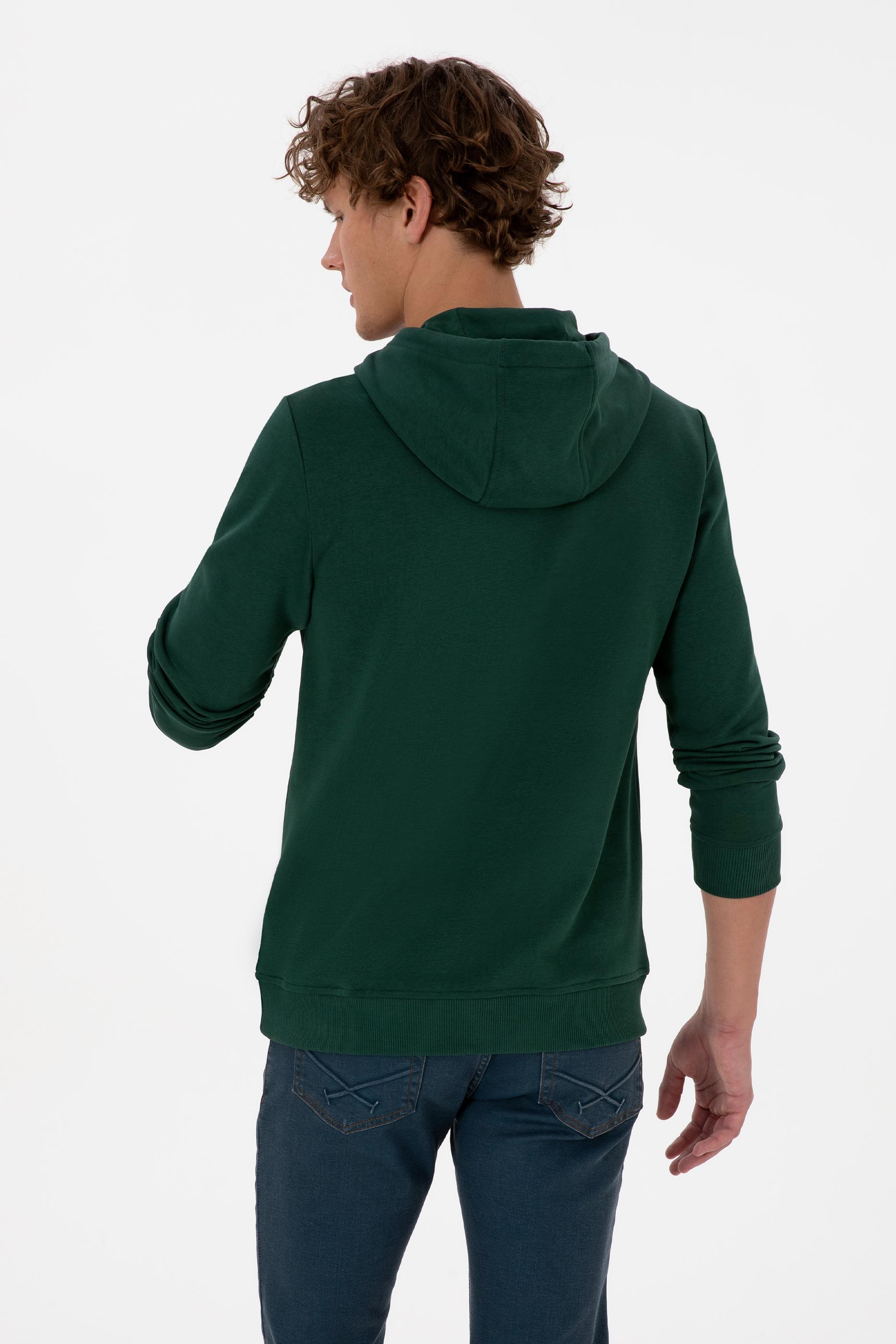 Erkek Regular Fit Kapüşonlu Koyu Yeşil Basic Sweatshirt