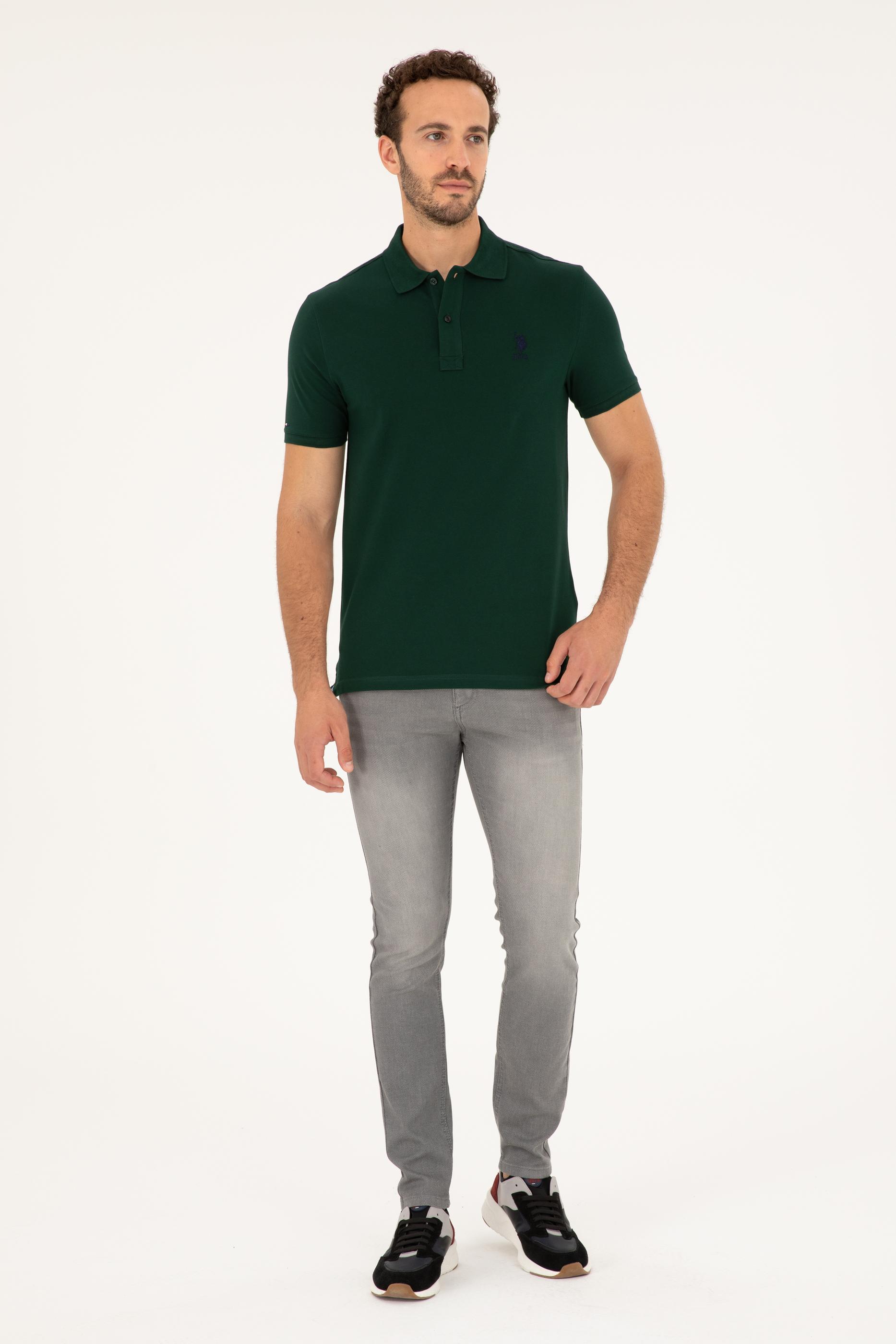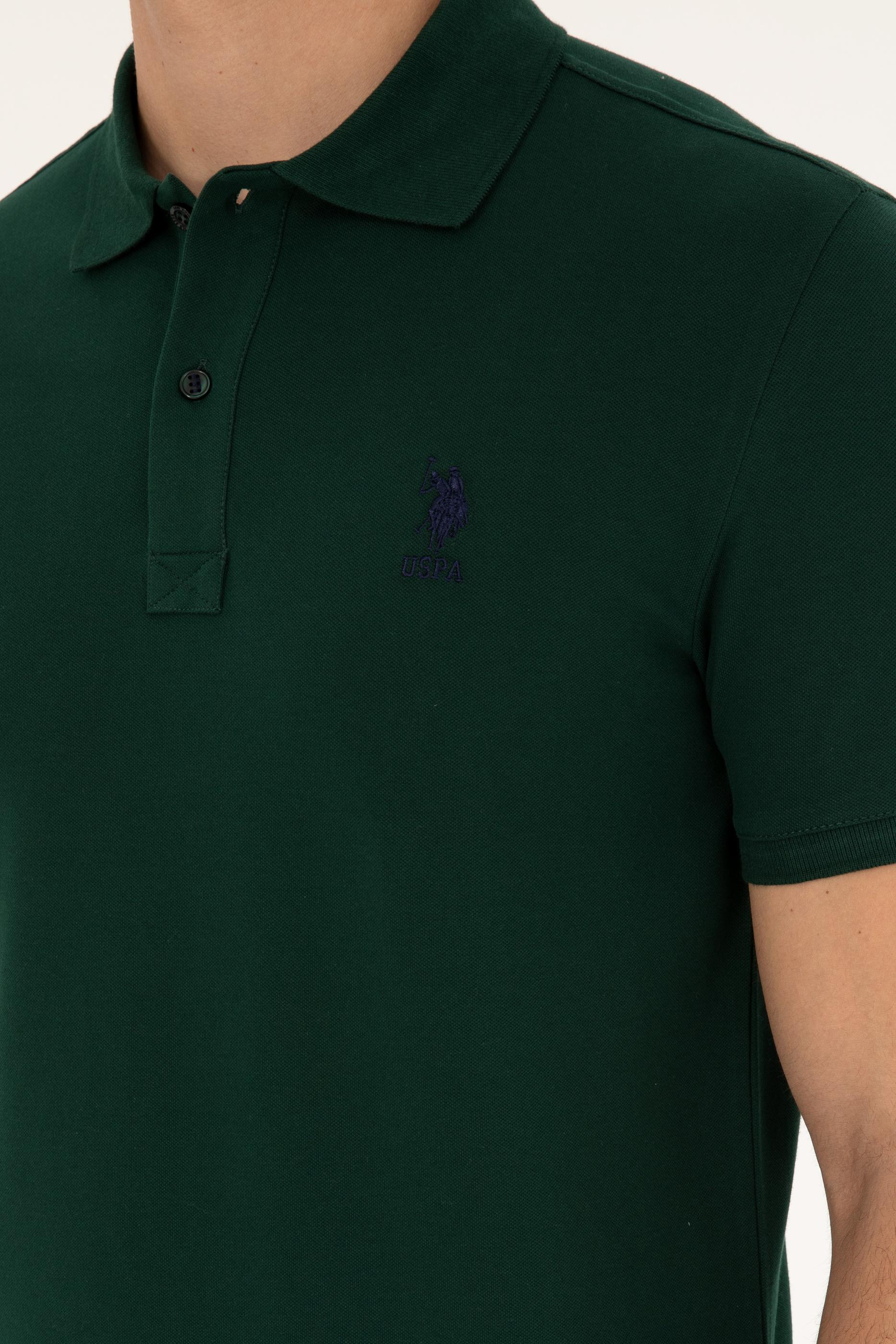 - Erkek Slim Fit Polo Yaka Koyu Yeşil Basic Tişört