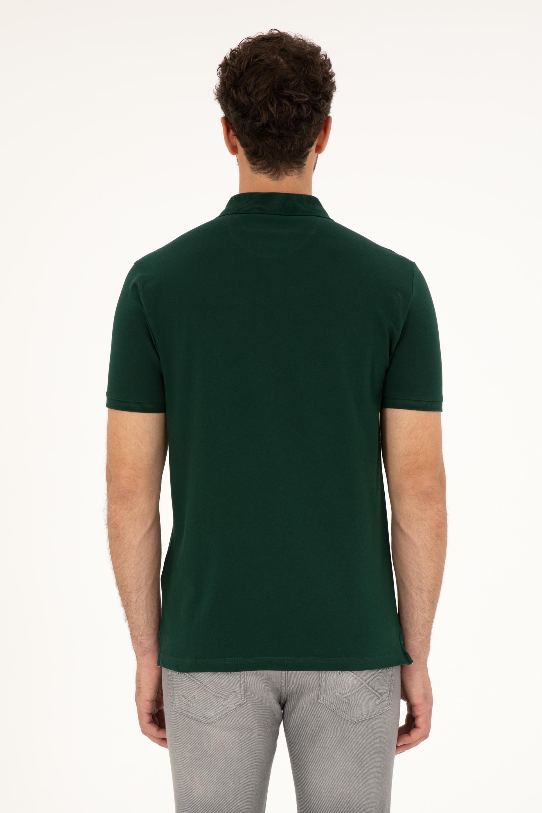 Erkek Slim Fit Polo Yaka Koyu Yeşil Basic Tişört