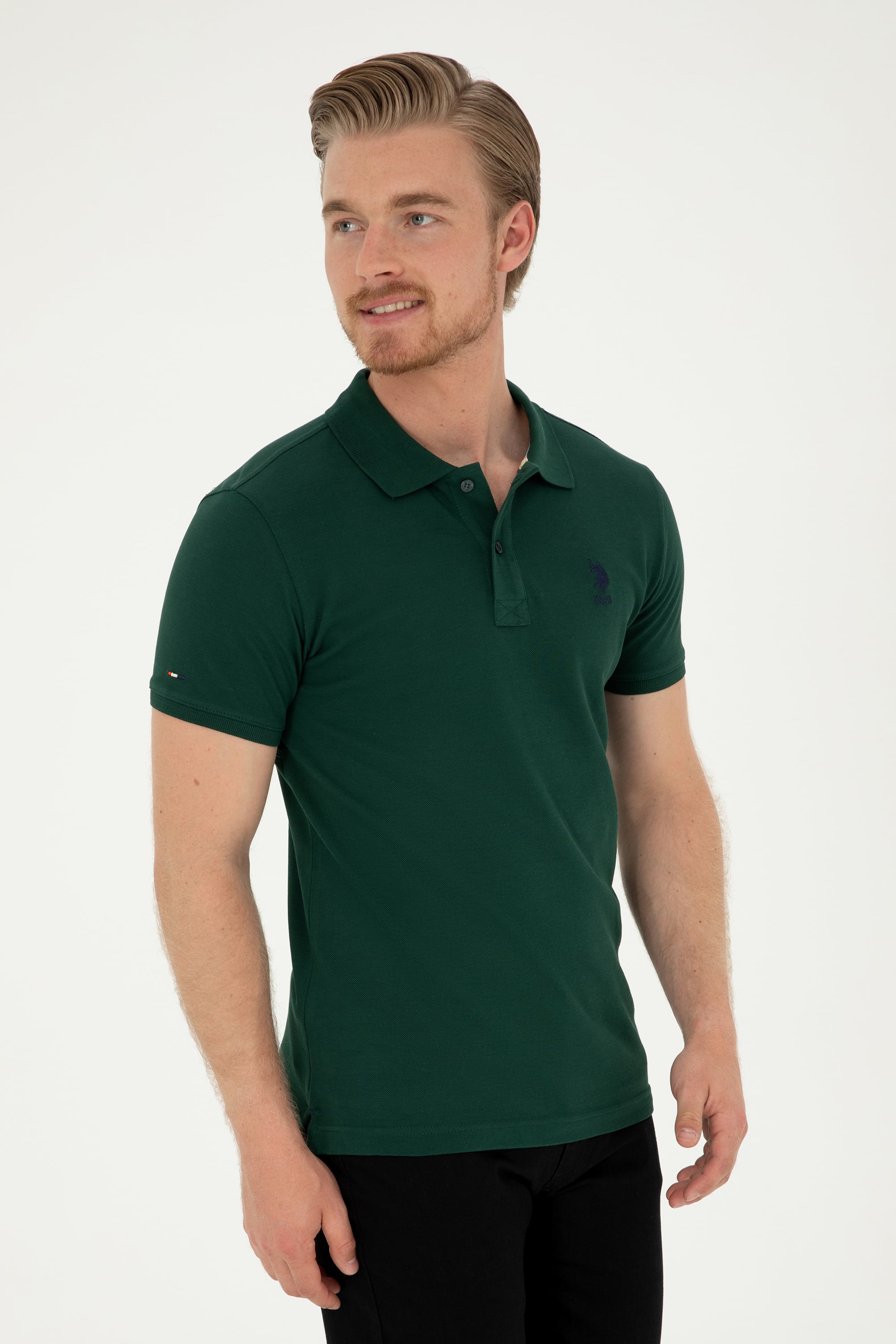 "name": "Erkek Slim Fit Polo Yaka Koyu Yeşil Basic Tişört",