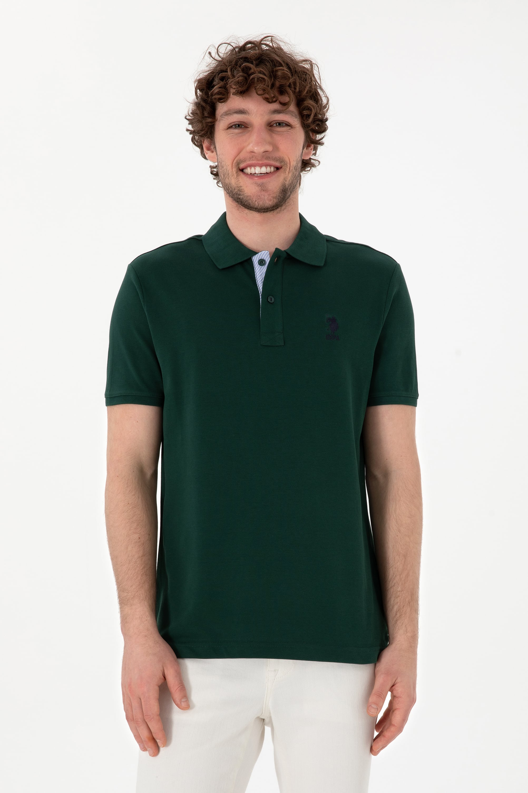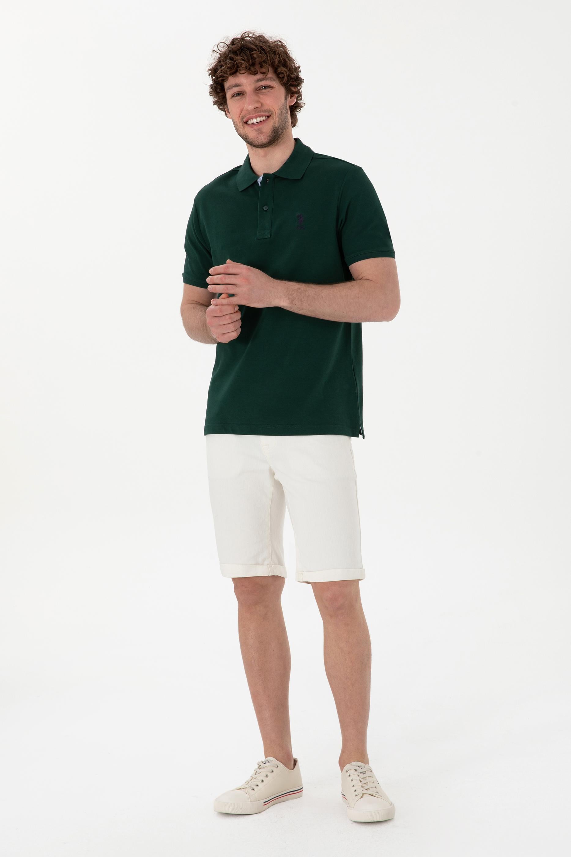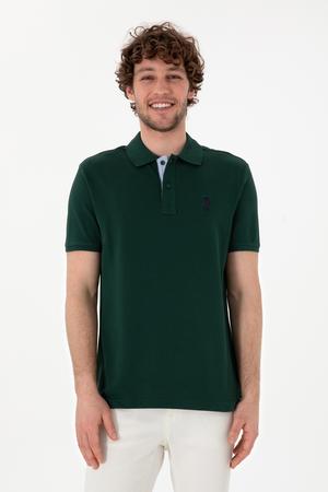 - Erkek Regular Fit Polo Yaka Koyu Yeşil Basic Tişört