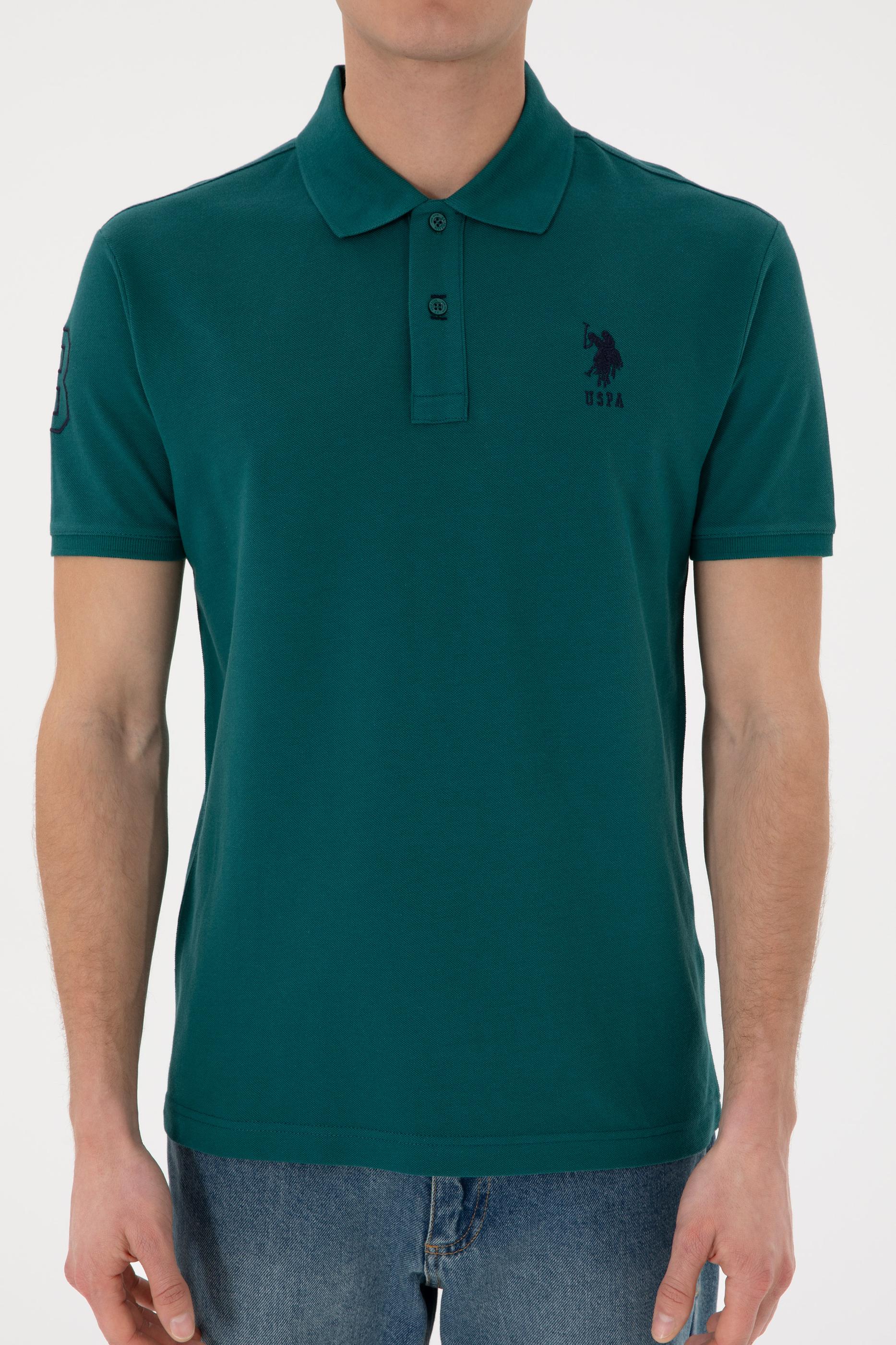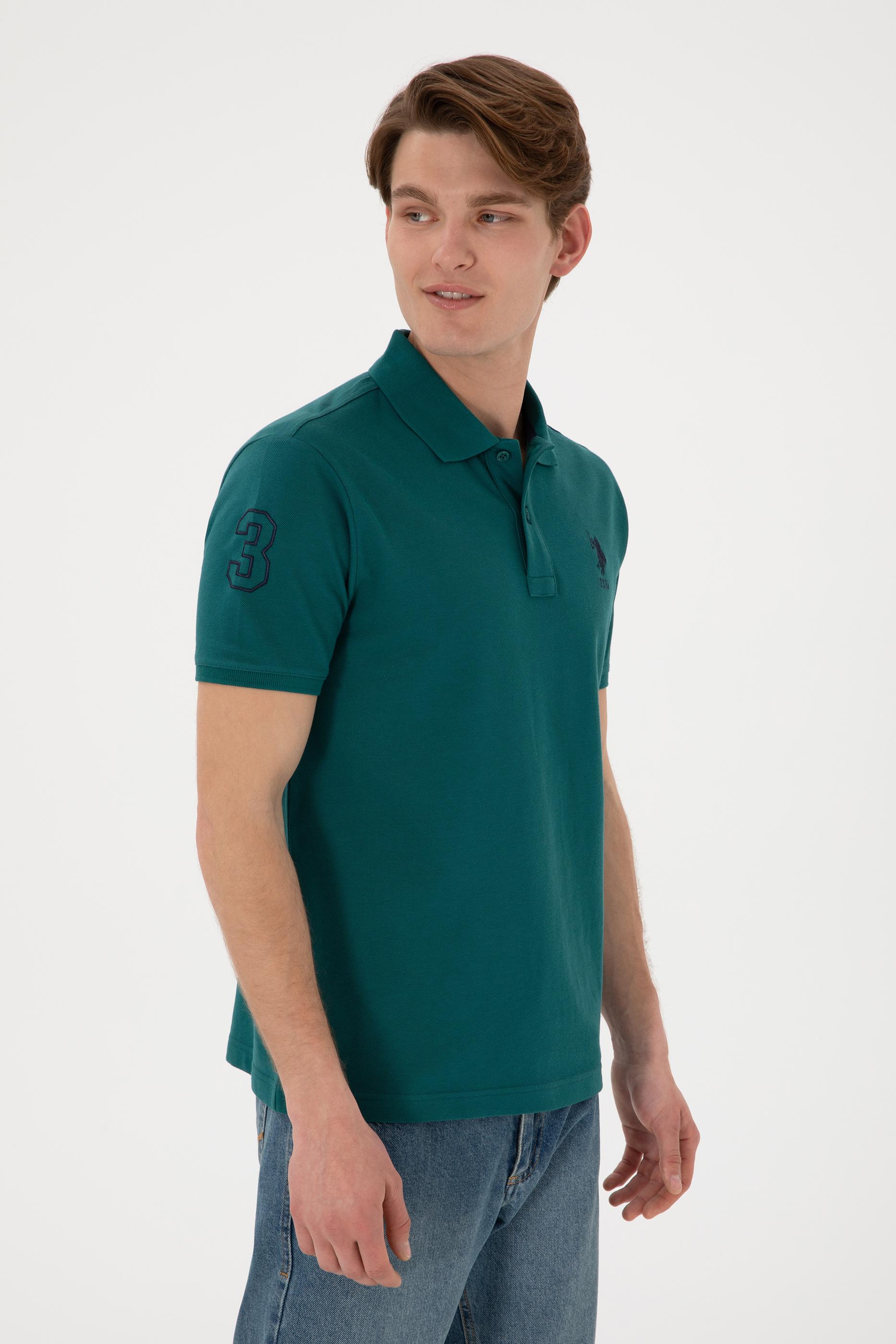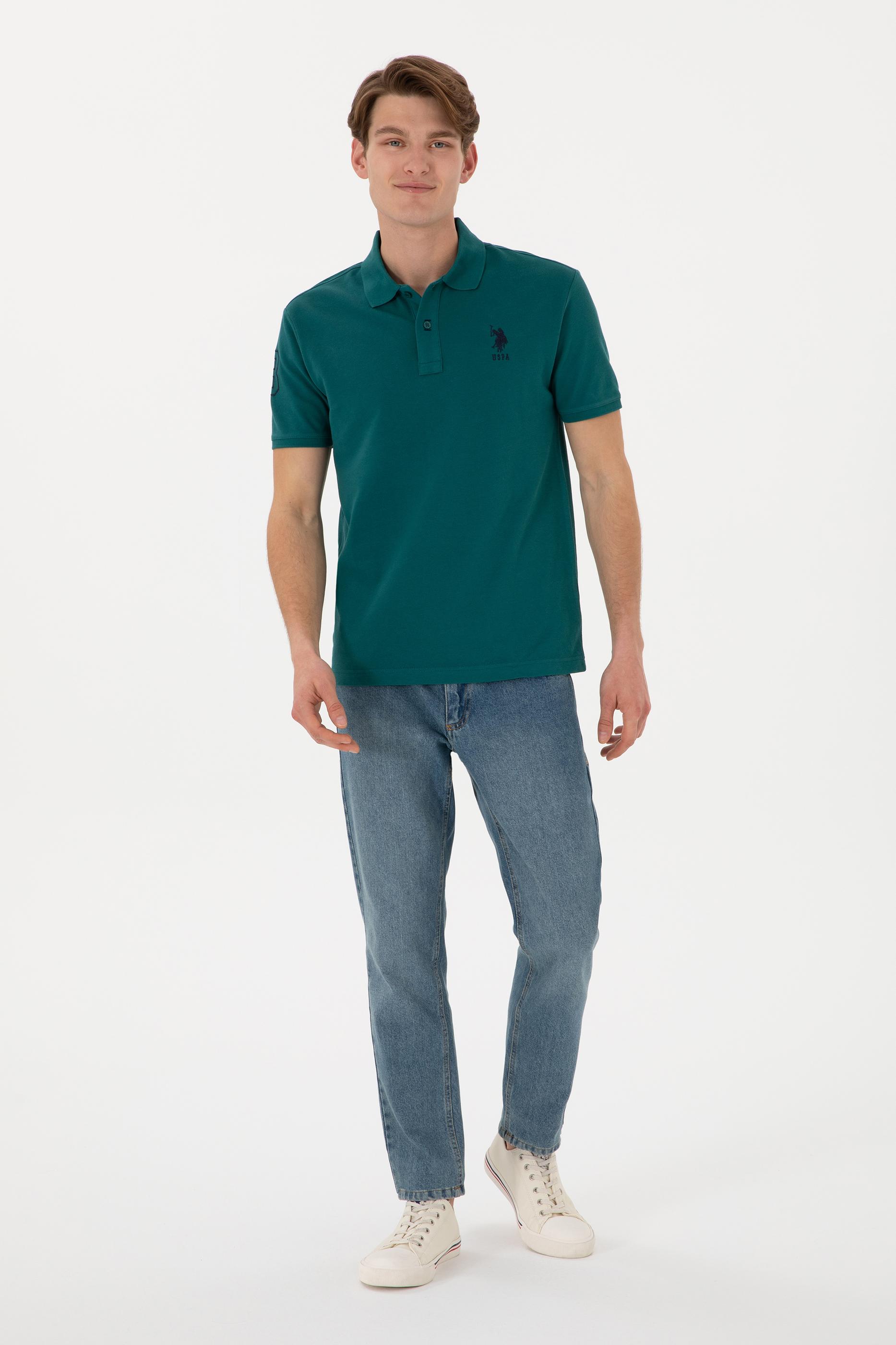Erkek Slim Fit Polo Yaka Koyu Yeşil Basic Tişört