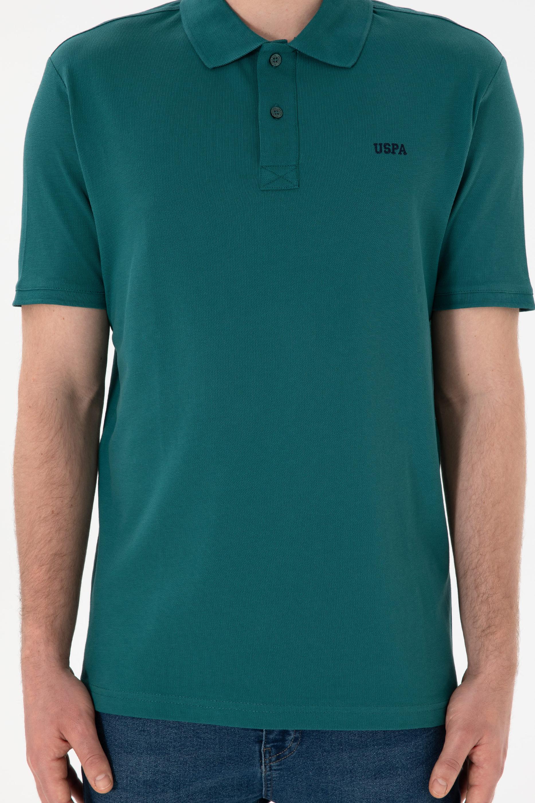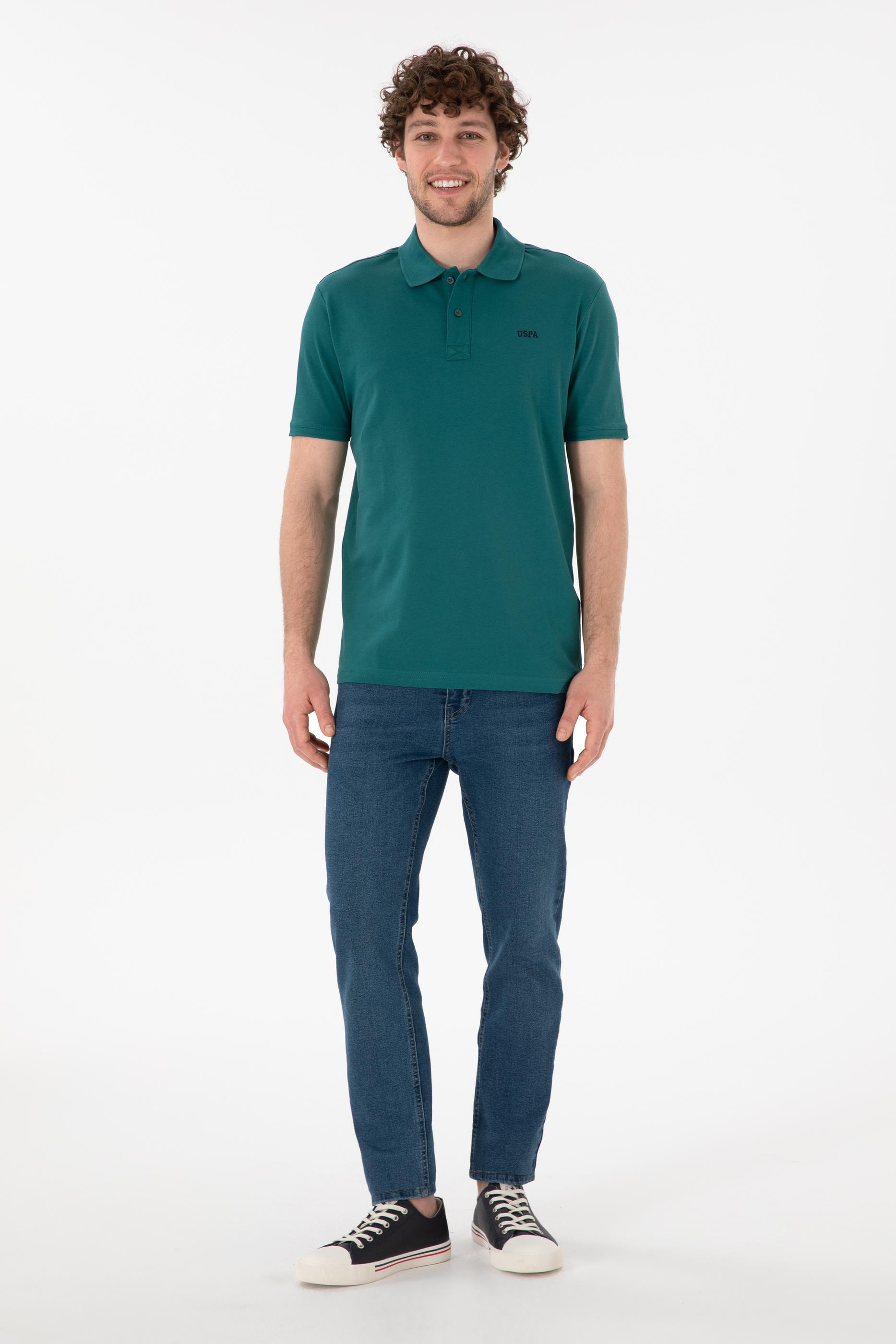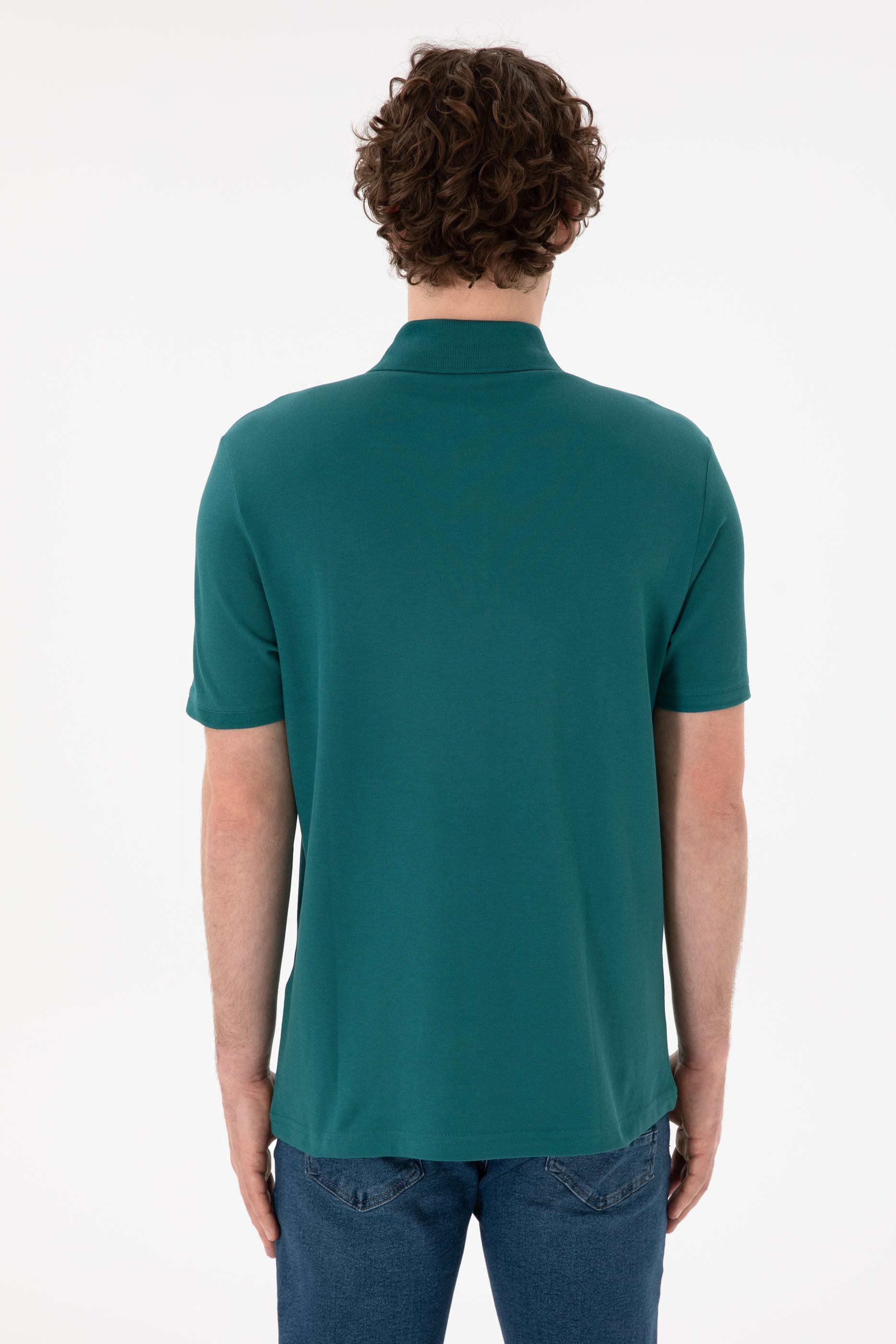 Erkek Regular Fit Polo Yaka Koyu Yeşil Basic Tişört