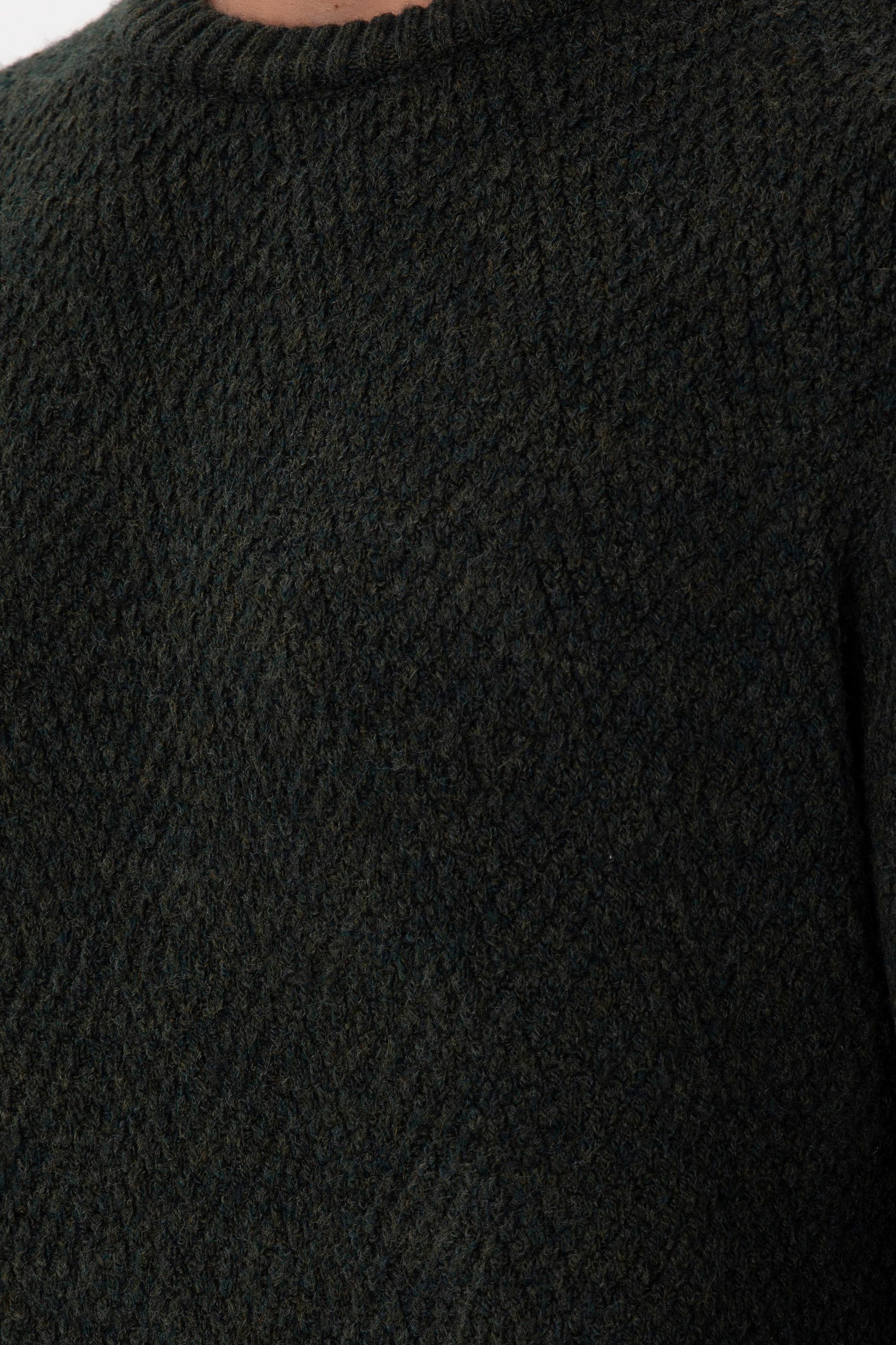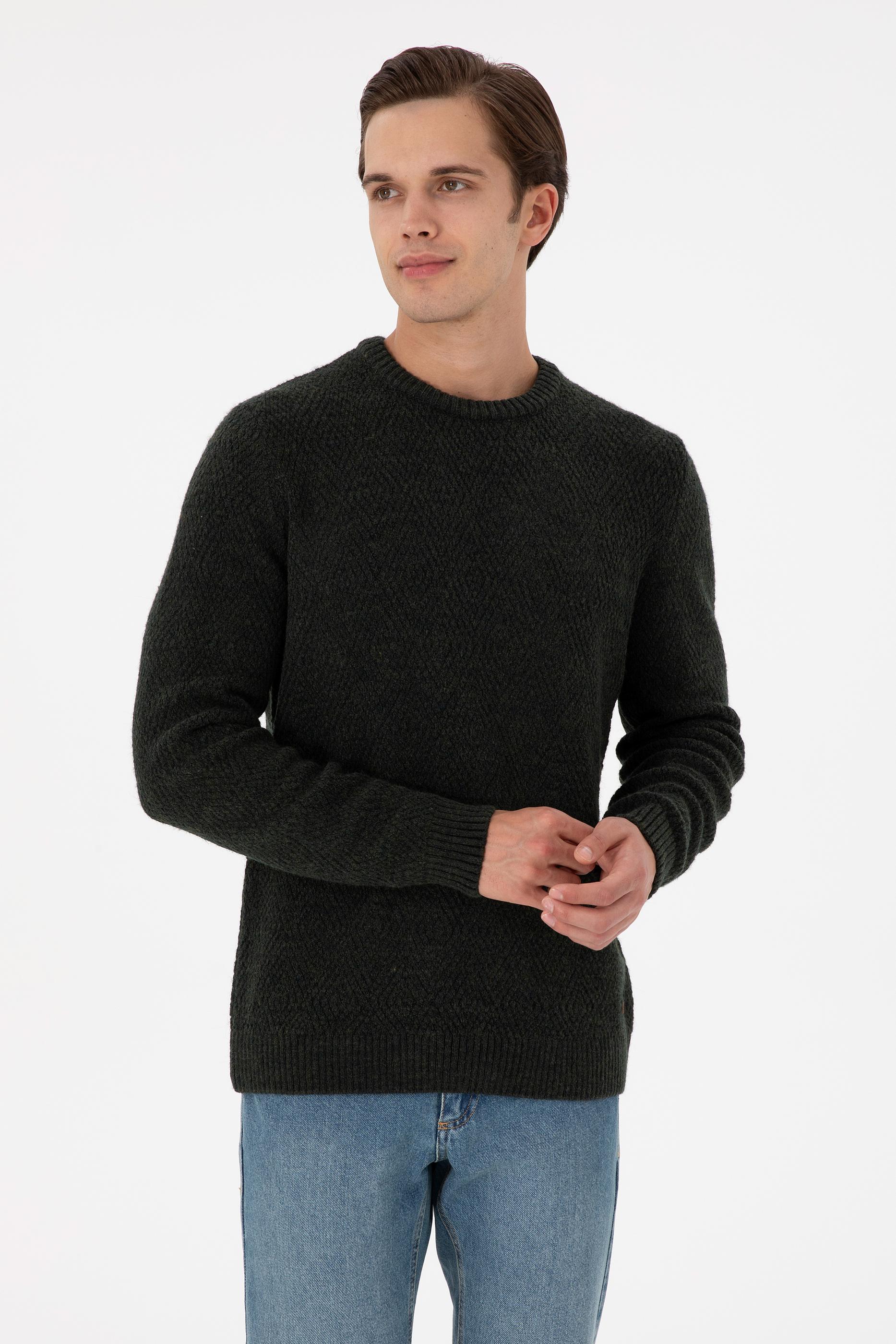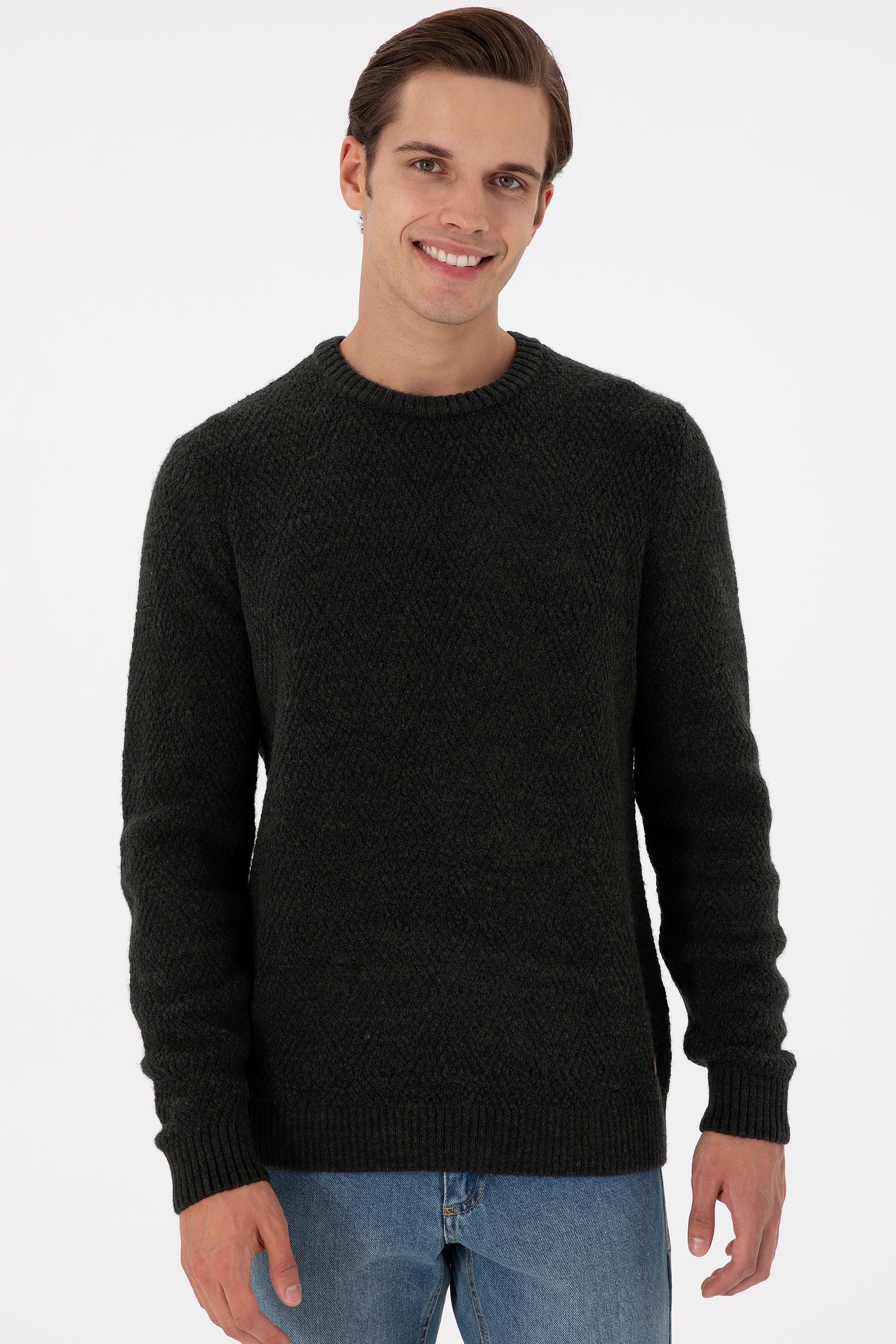 Erkek Regular Fit Bisiklet Yaka Koyu Yeşil Kazak