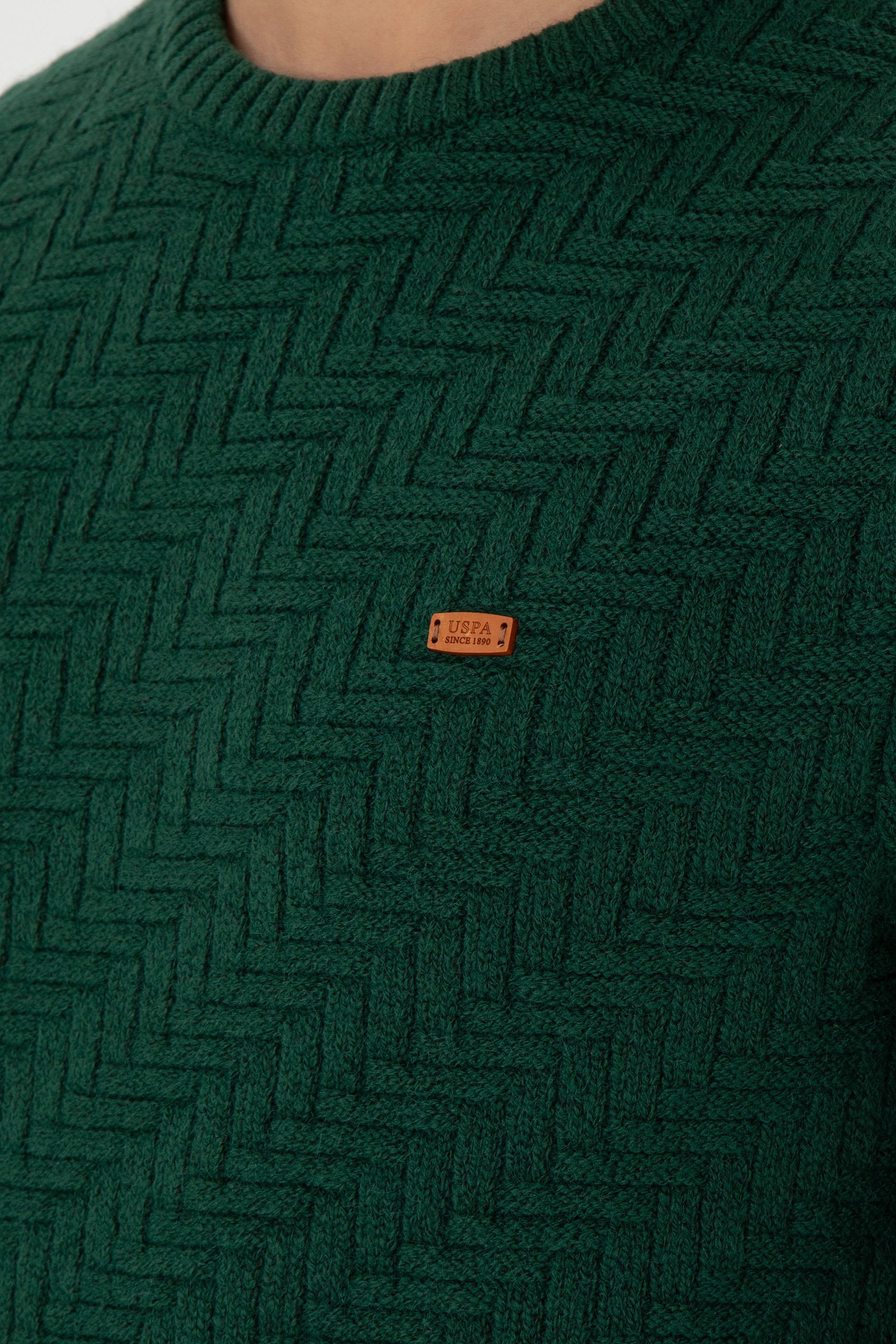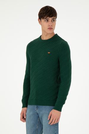 - Erkek Slim Fit Bisiklet Yaka Koyu Yeşil Kazak