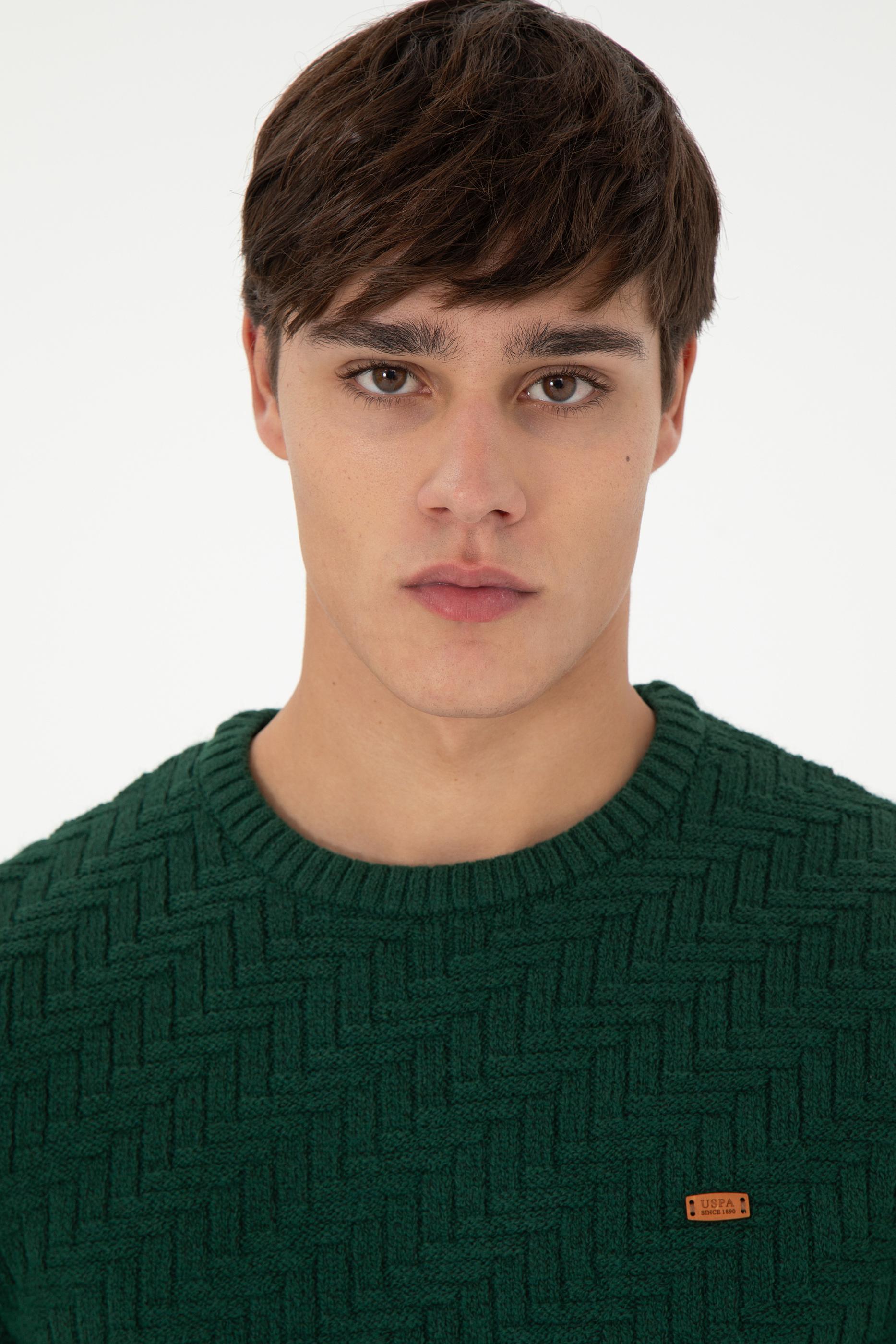 Erkek Slim Fit Bisiklet Yaka Koyu Yeşil Kazak