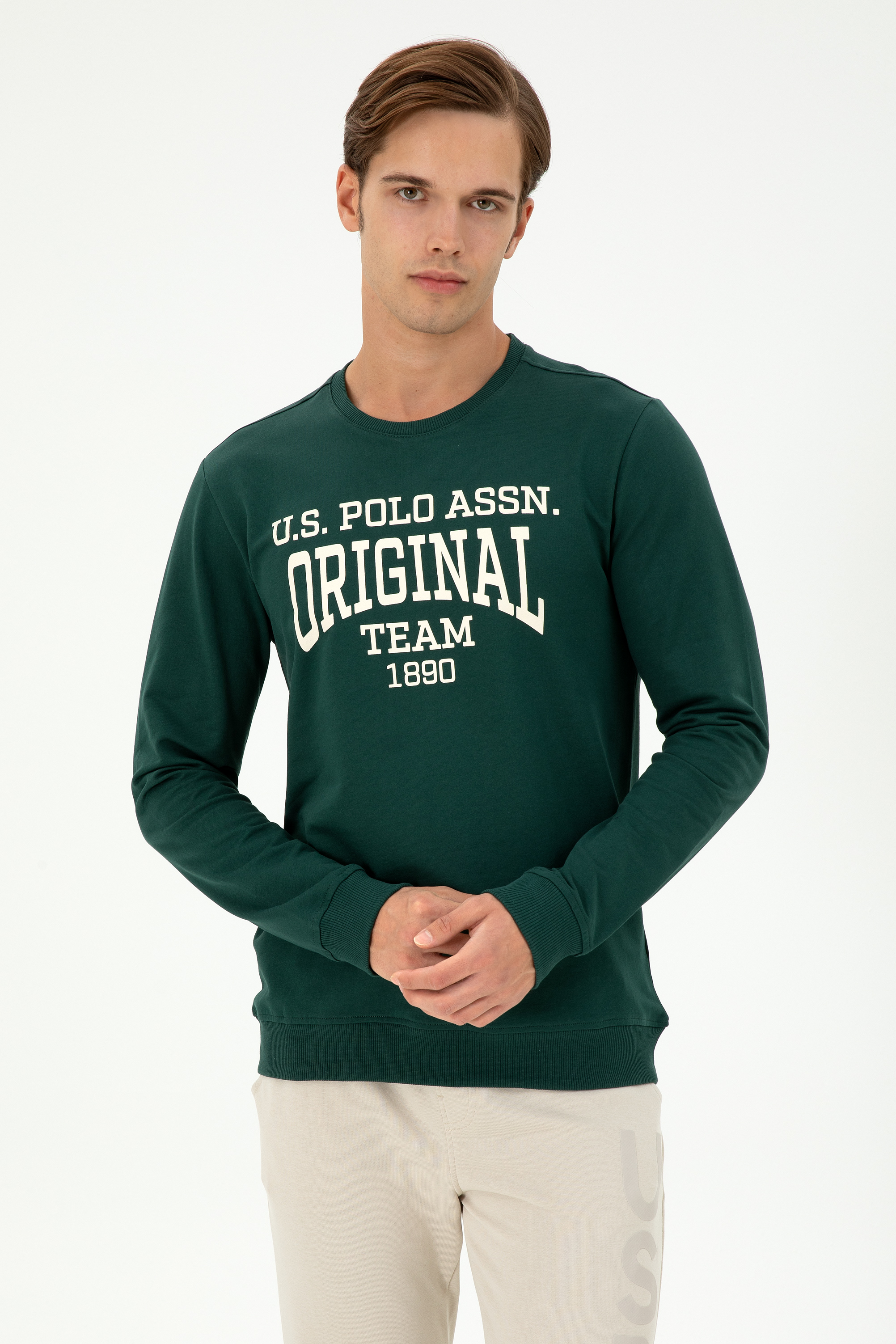 - Erkek Regular Fit Bisiklet Yaka Koyu Yeşil Sweatshirt