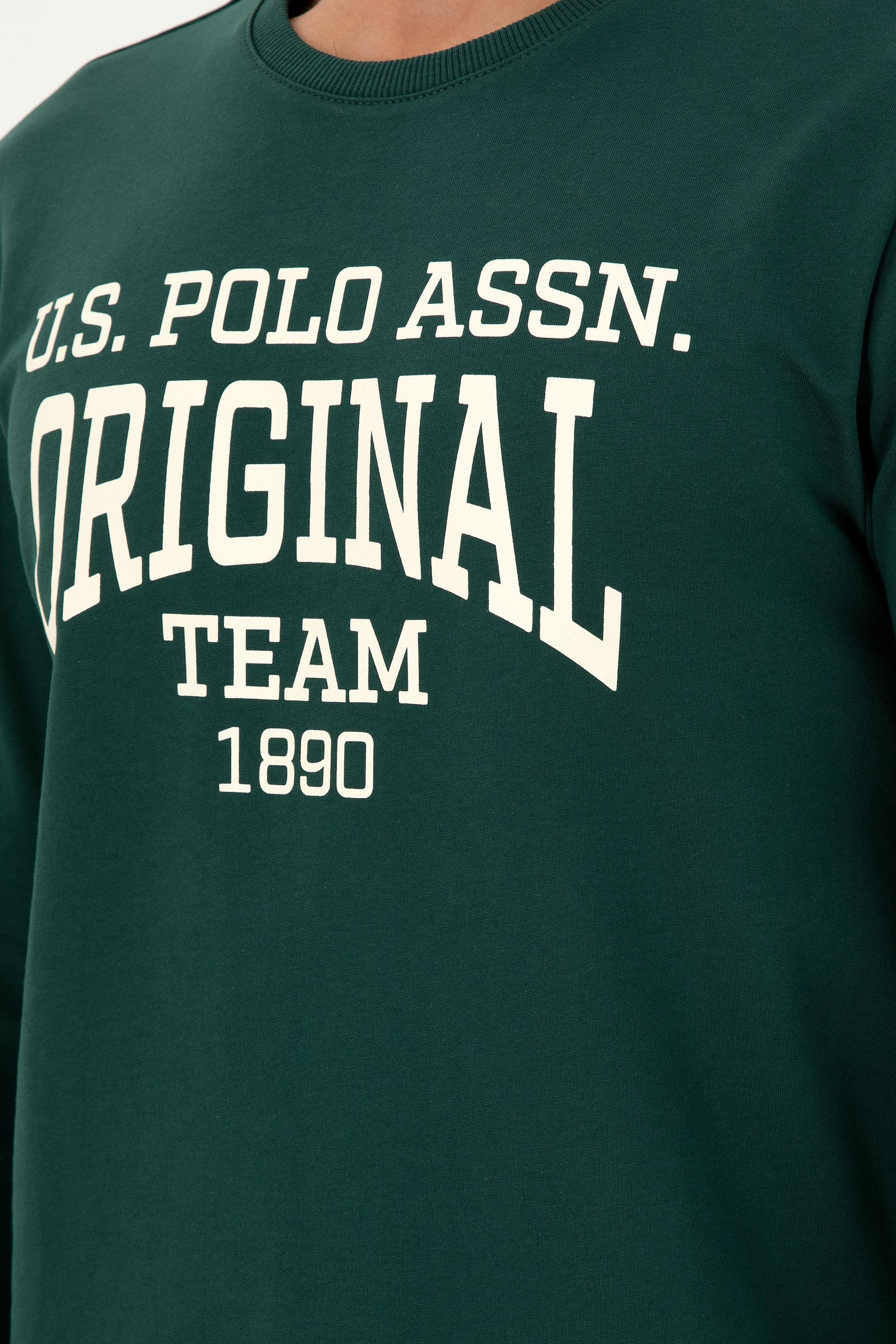 Erkek Regular Fit Bisiklet Yaka Koyu Yeşil Sweatshirt