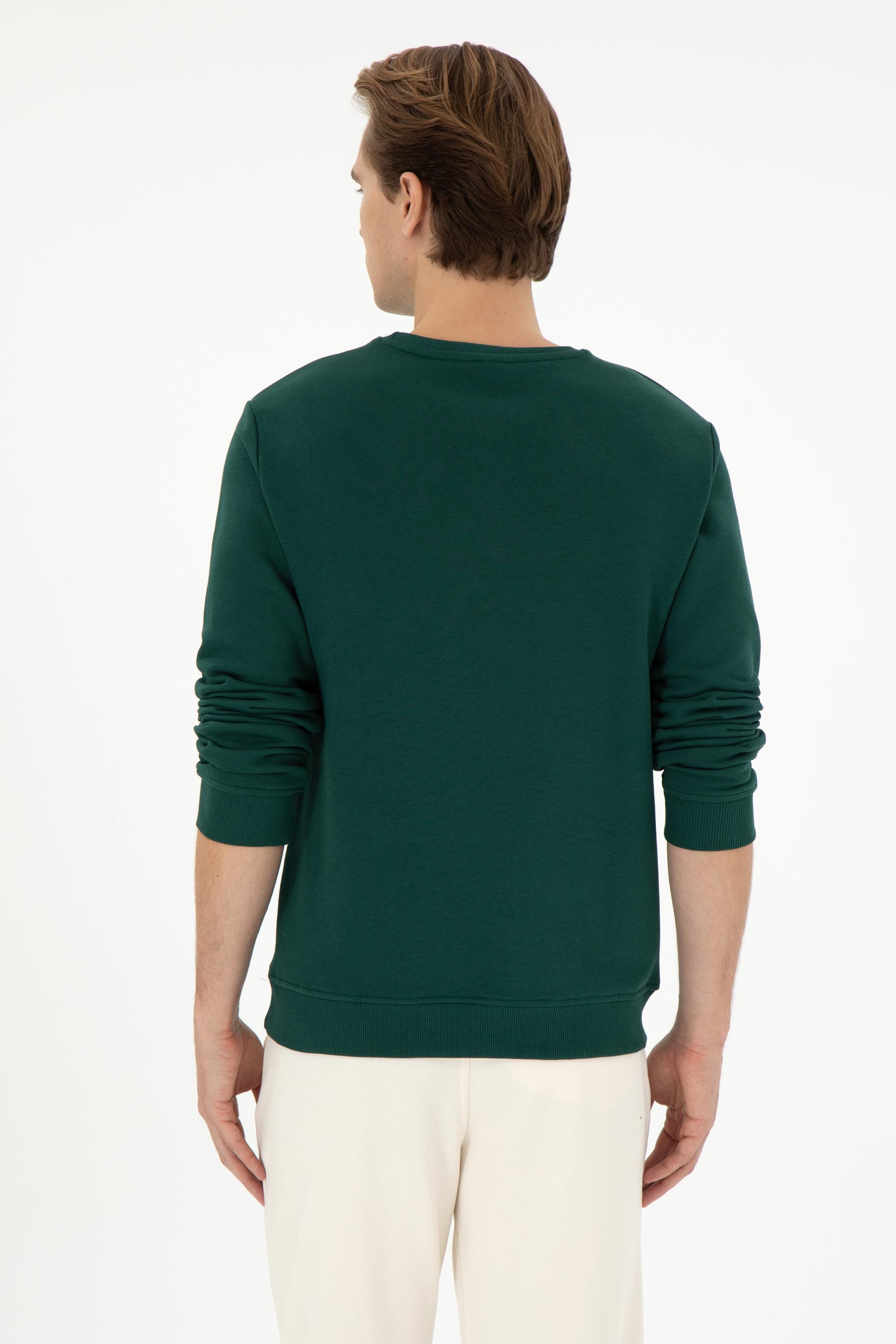 Erkek Regular Fit Bisiklet Yaka Koyu Yeşil Sweatshirt