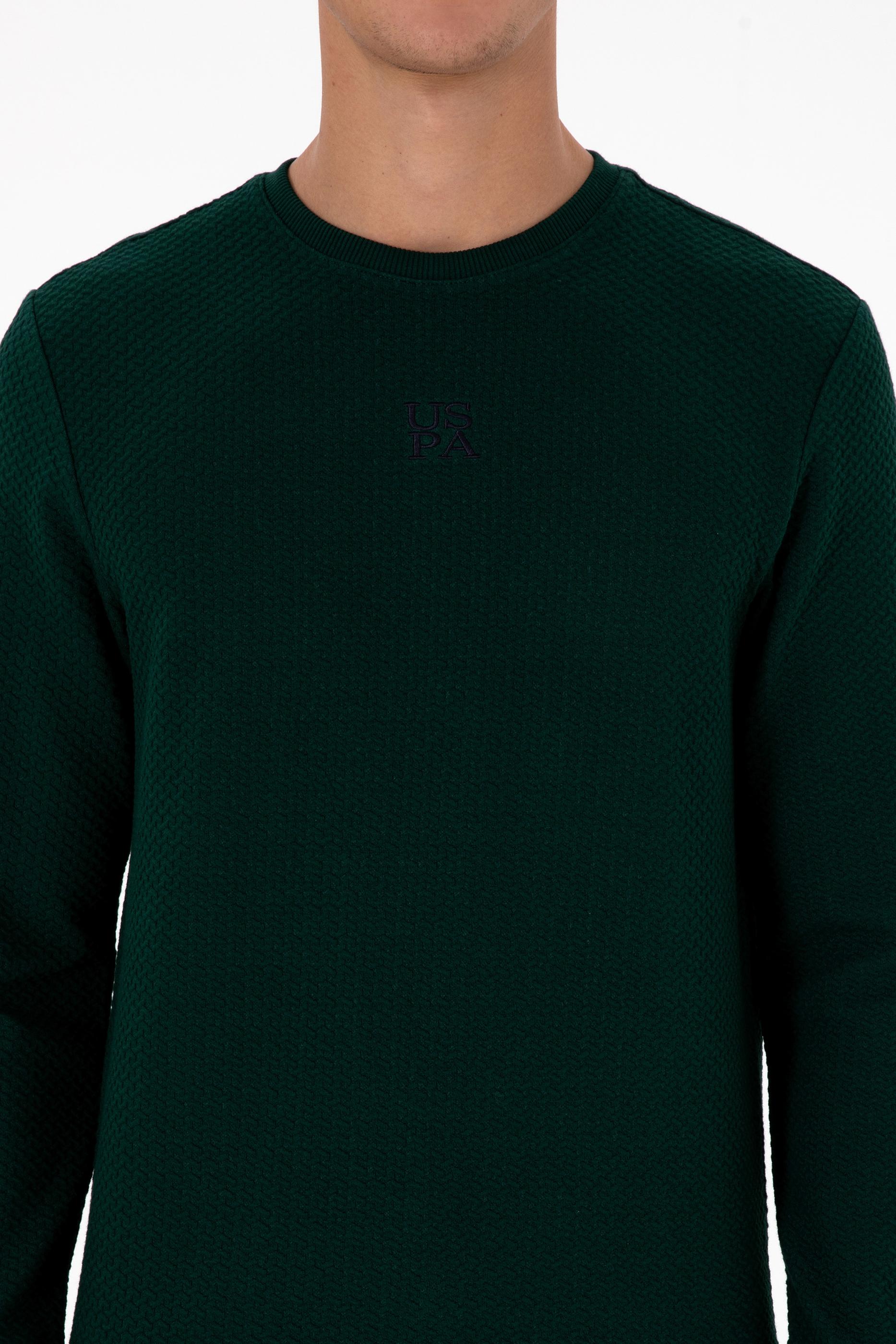 Erkek Regular Fit Bisiklet Yaka Koyu Yeşil Sweatshirt