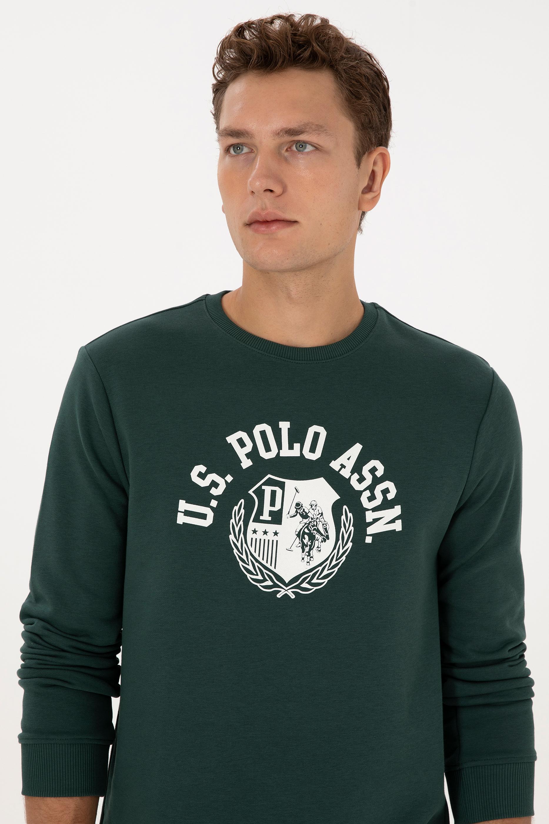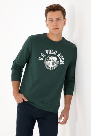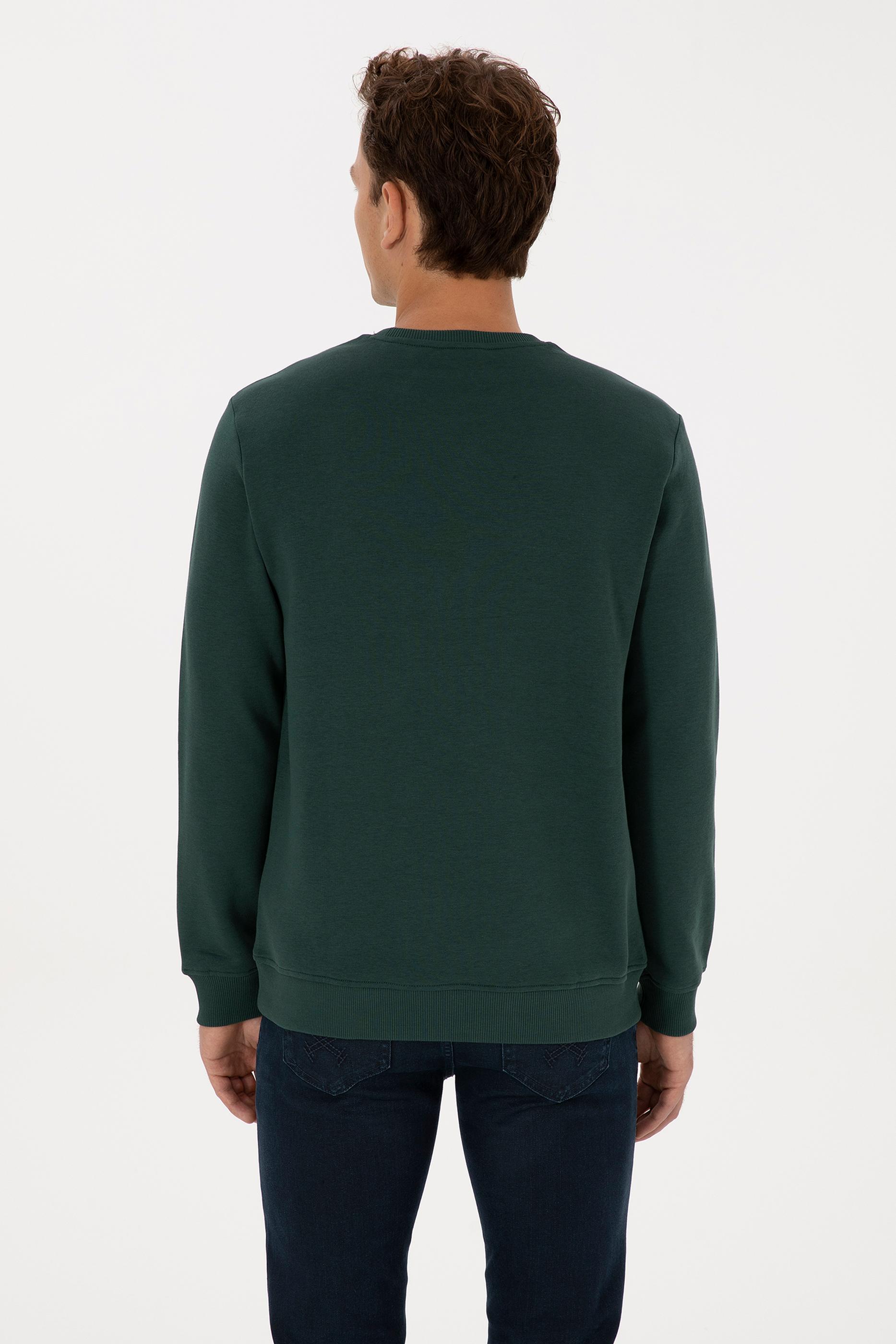 Erkek Regular Fit Bisiklet Yaka Koyu Yeşil Sweatshirt