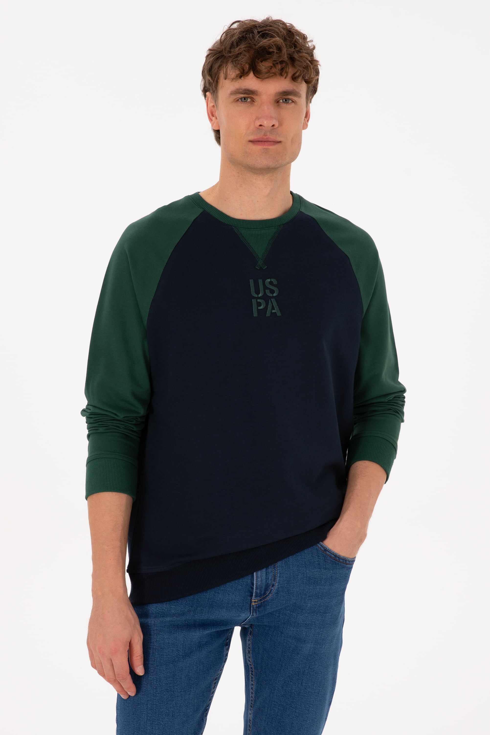 - Erkek Bisiklet Yaka Regular Fit Koyu Yeşil İnce Sweatshirt