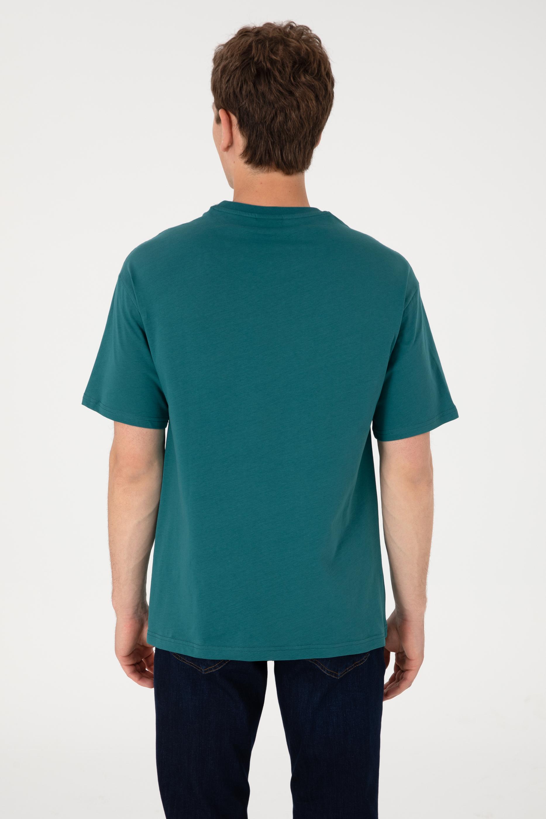 Erkek Comfort Fit Bisiklet Yaka Koyu Yeşil Tişört
