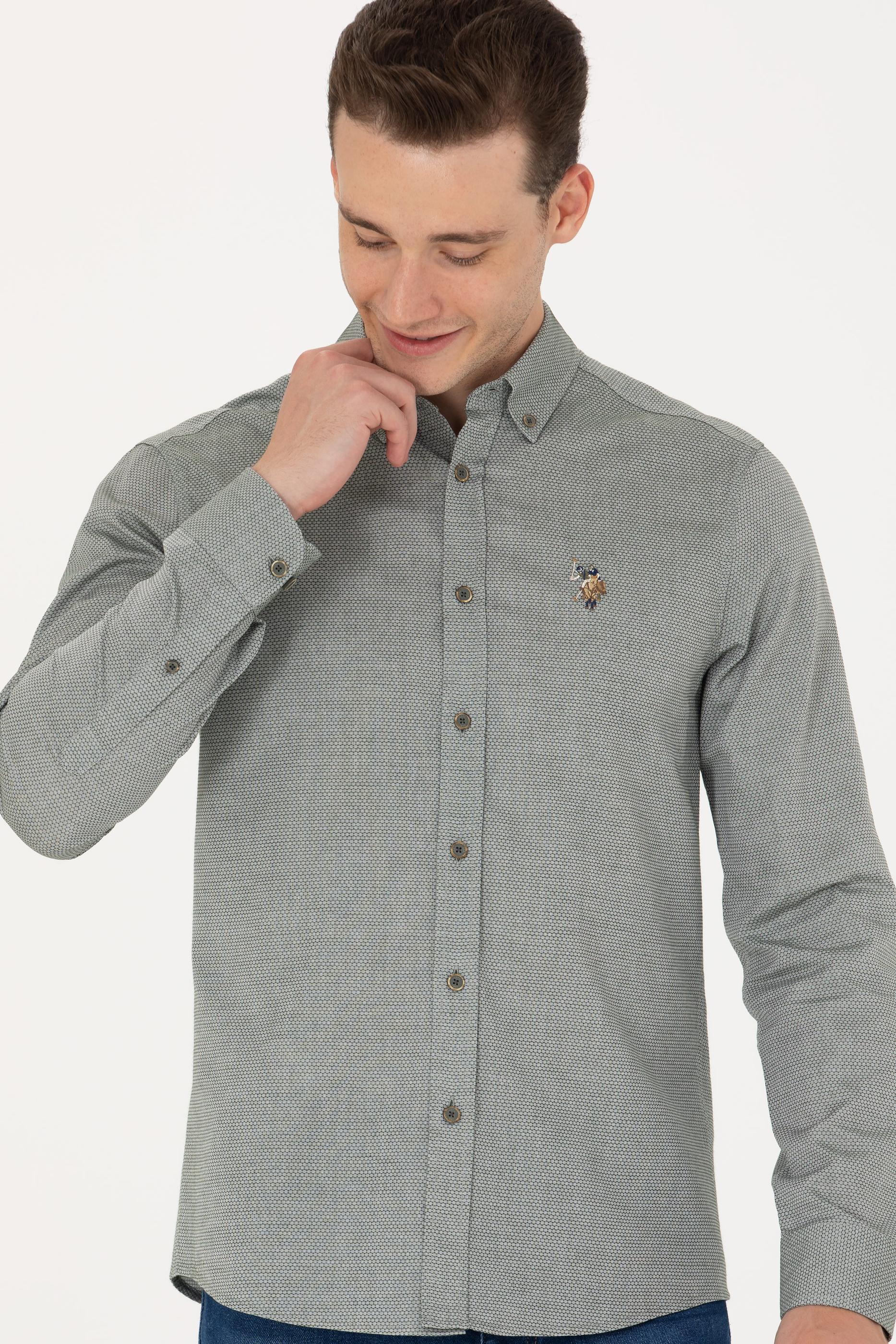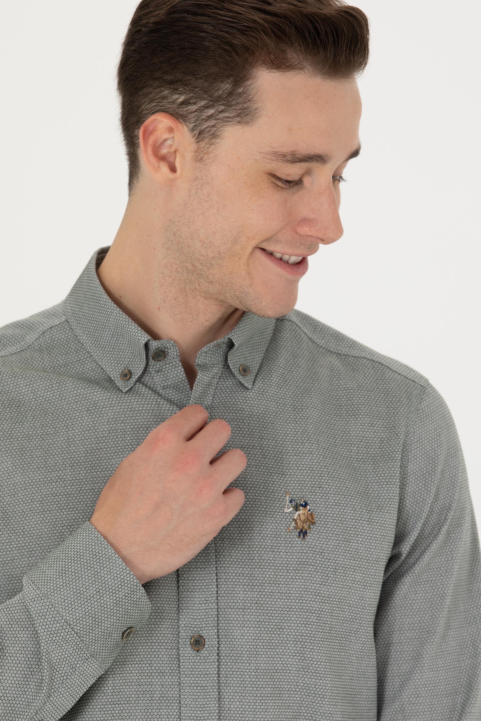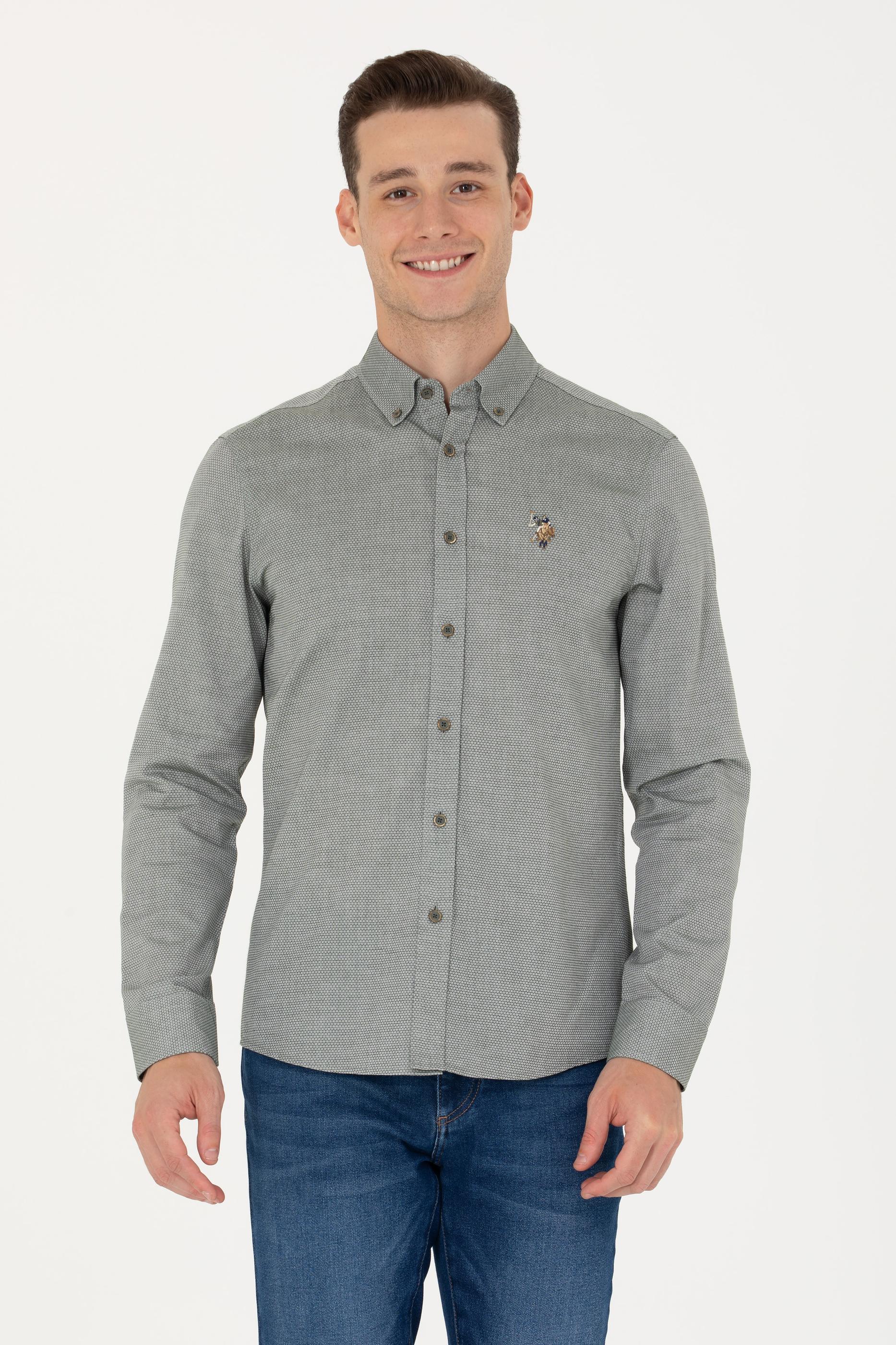 Erkek Koyu Yeşil Uzun Kollu Basic Gömlek