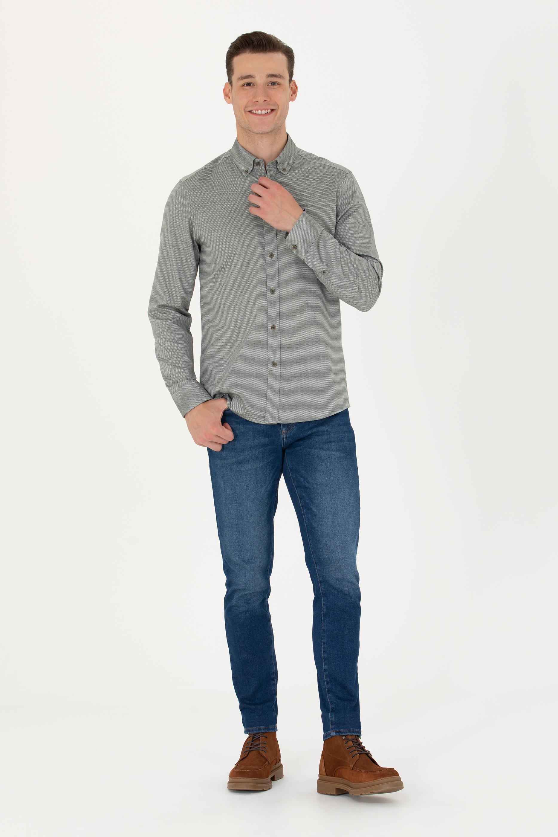 Erkek Koyu Yeşil Uzun Kollu Basic Gömlek - 50271292126