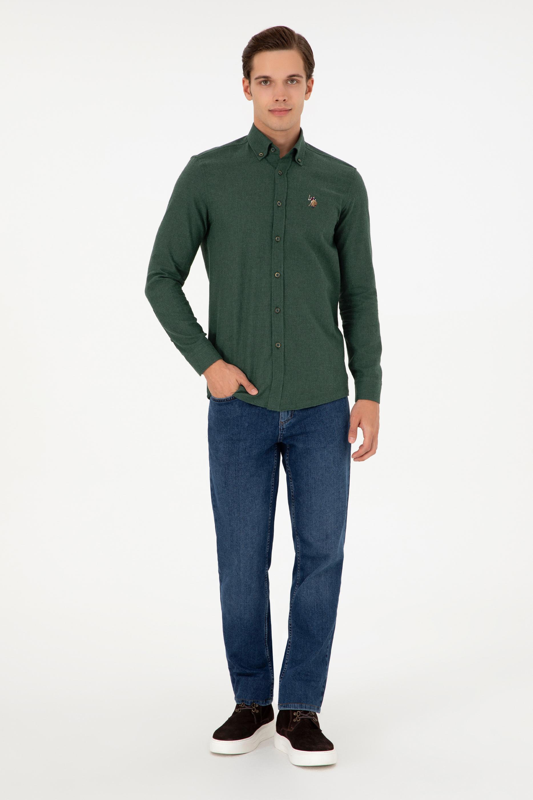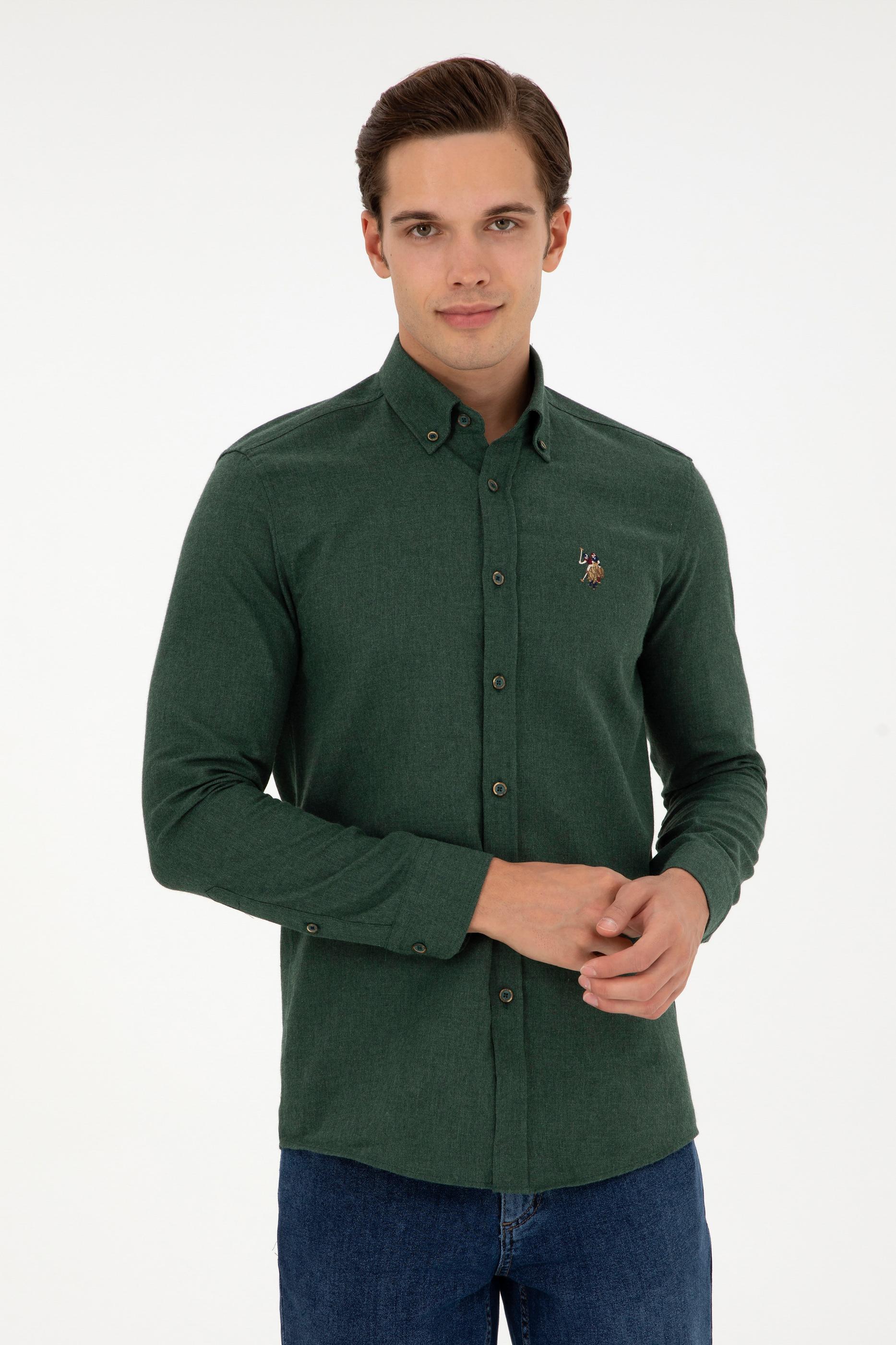 - Erkek Koyu Yeşil Uzun Kollu Basic Gömlek