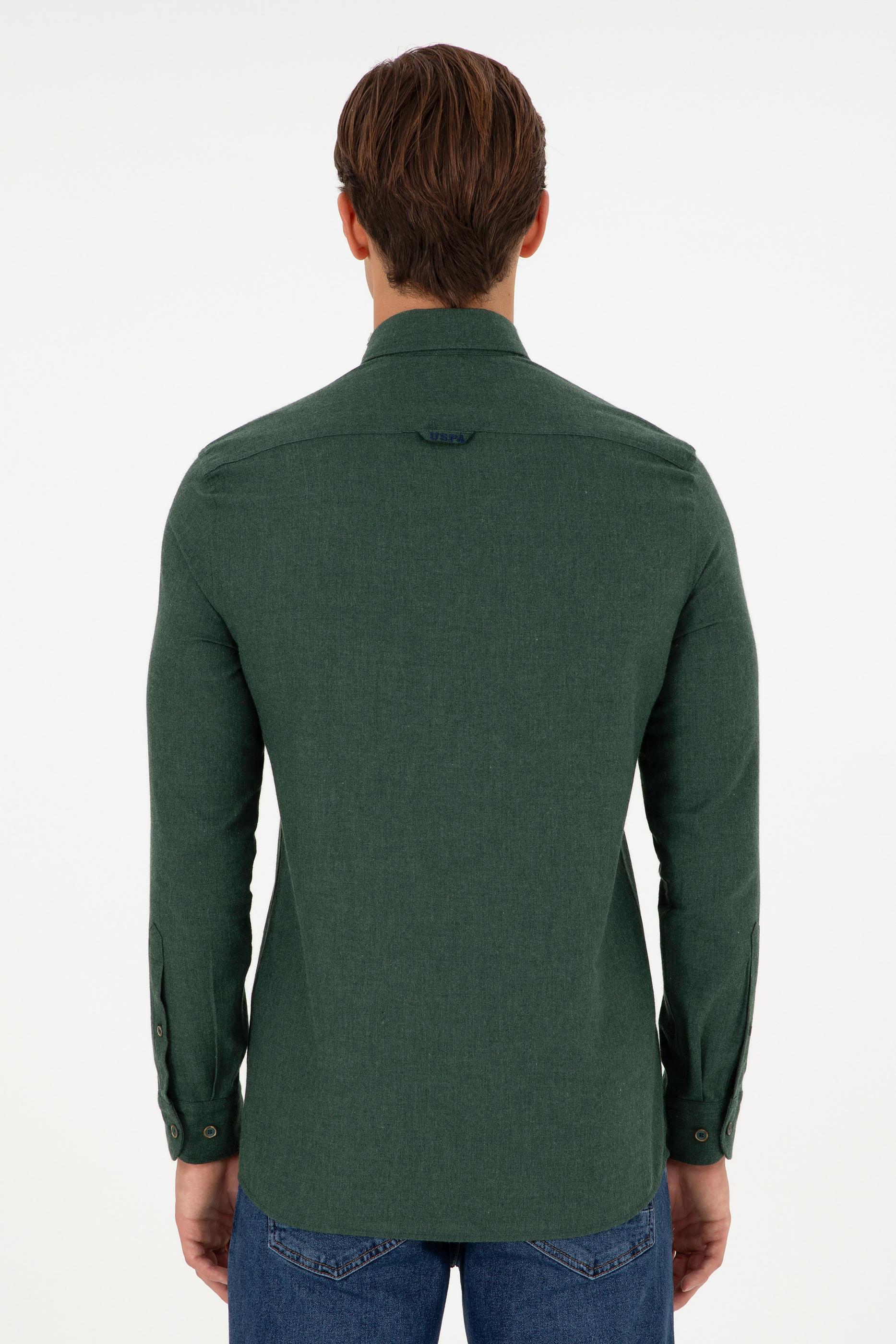 Erkek Koyu Yeşil Uzun Kollu Basic Gömlek