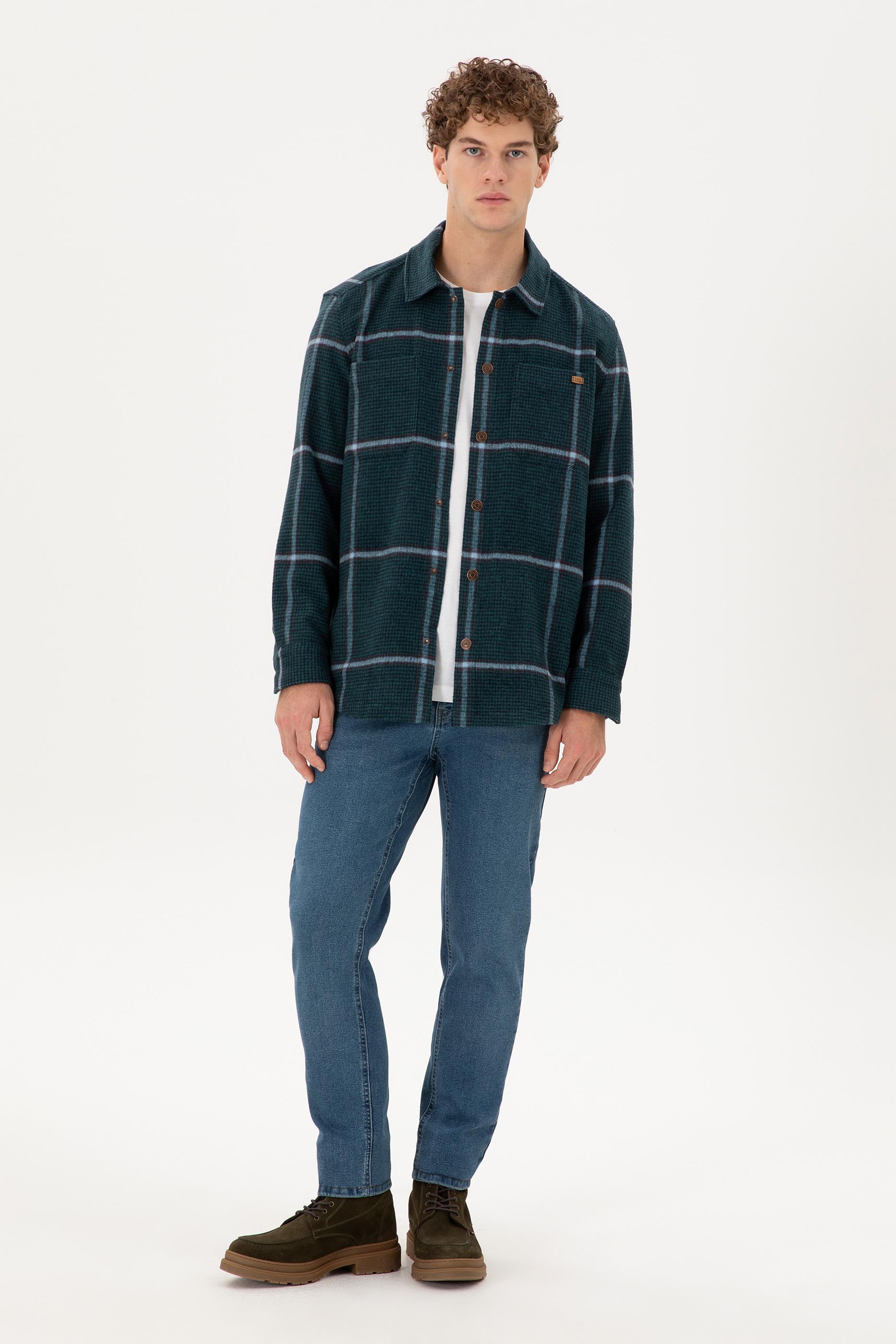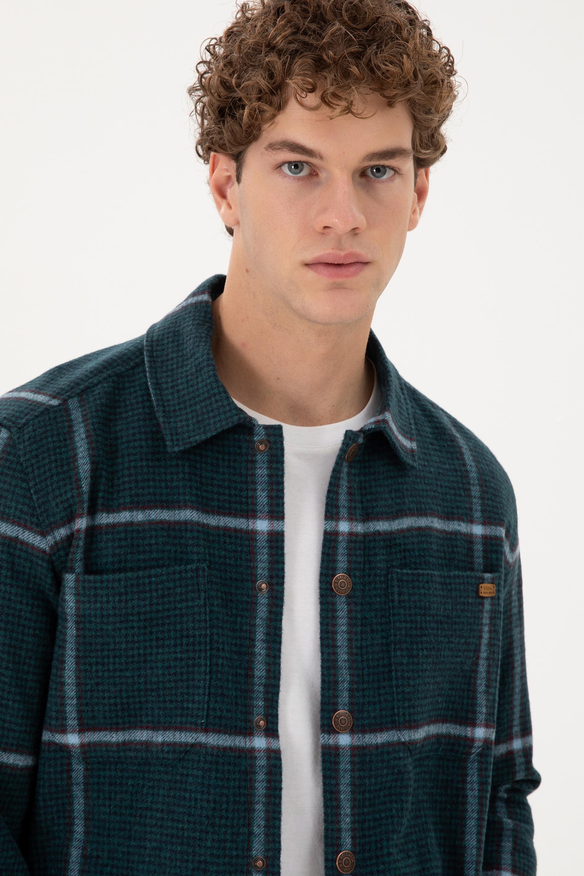 Erkek Koyu Yeşil Uzun Kollu Gömlek