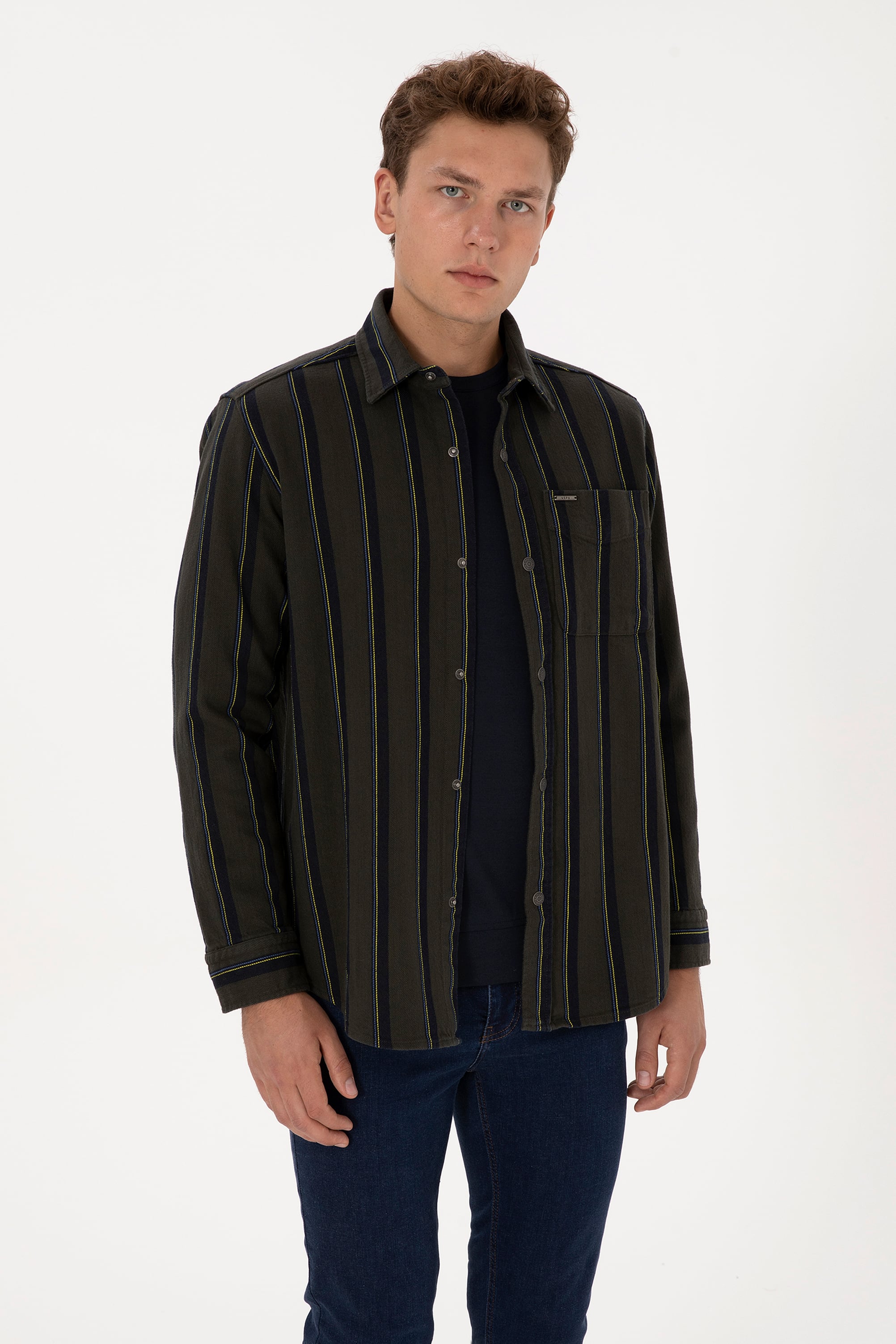 - Erkek Koyu Yeşil Çizgili Uzun Kollu Gömlek