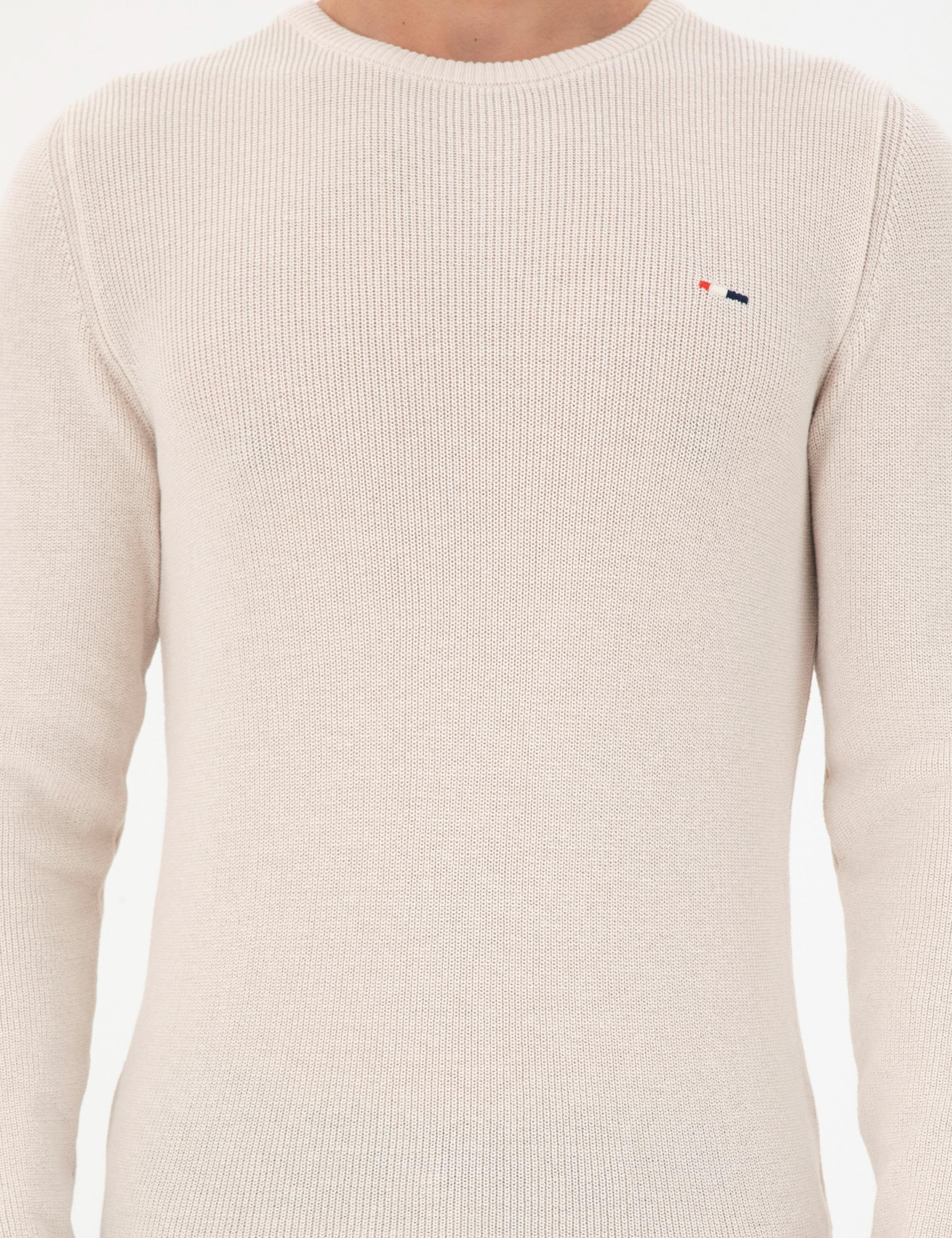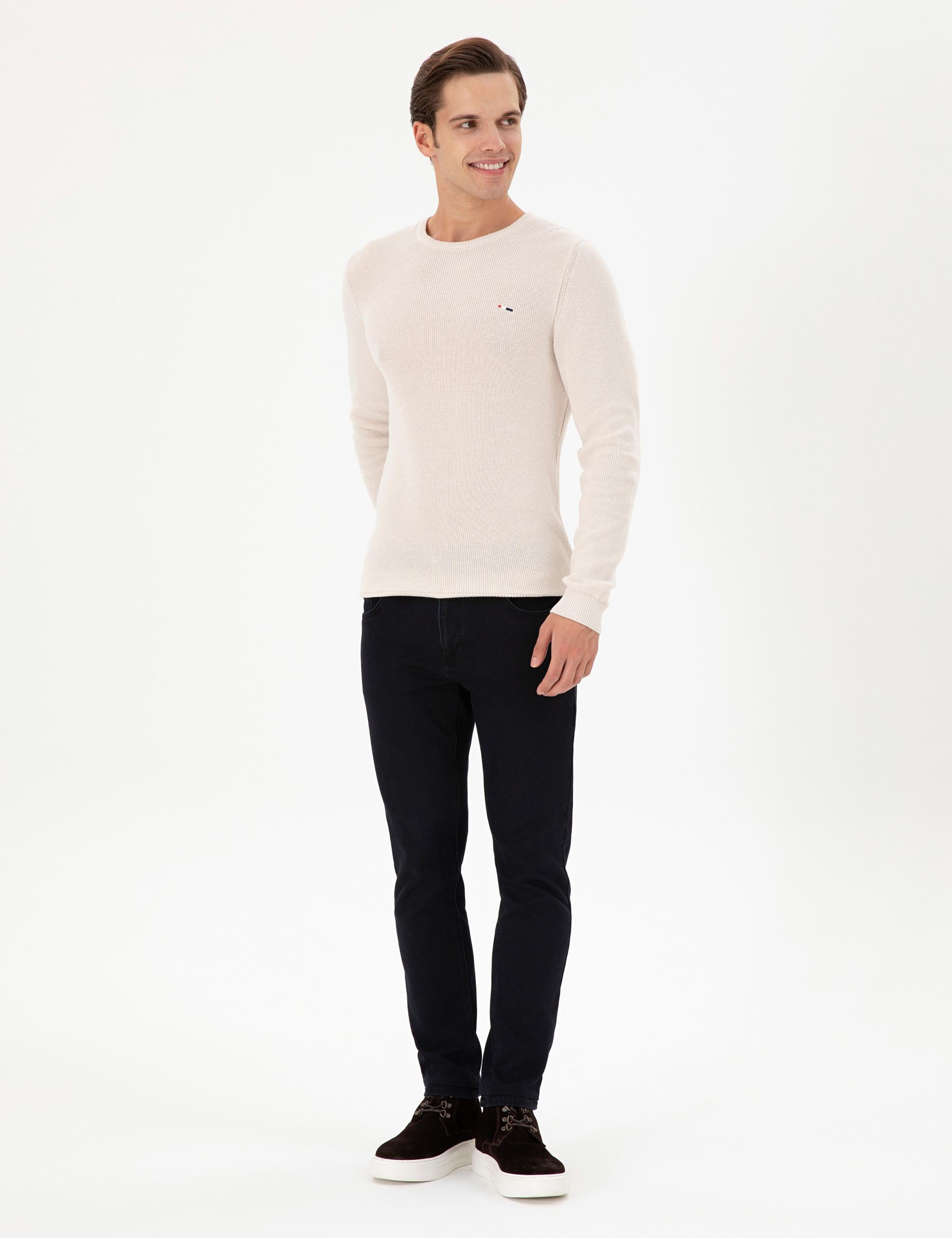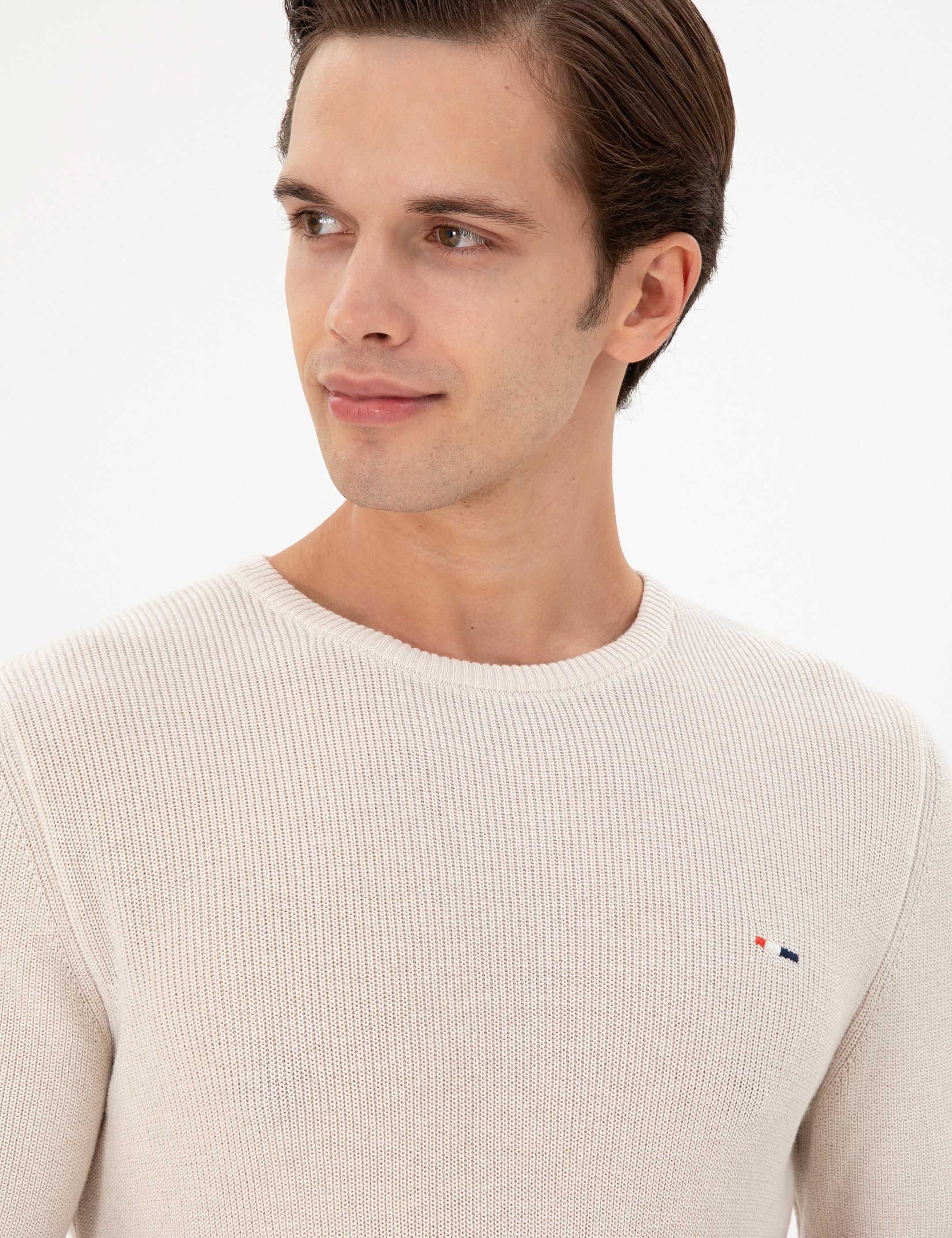 Erkek Slim Fit Bisiklet Yaka Krem Basic Kazak