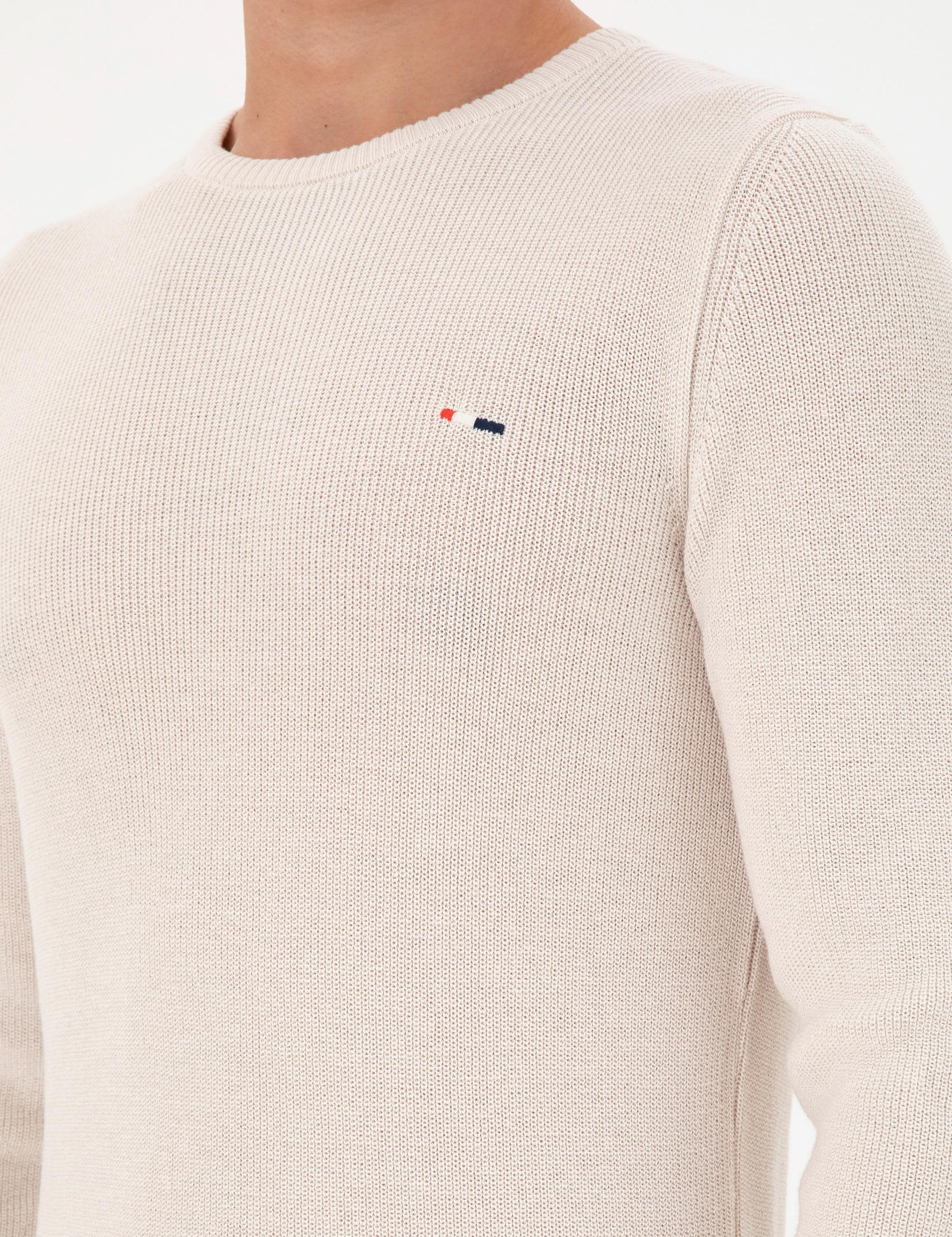 - Erkek Slim Fit Bisiklet Yaka Krem Basic Kazak