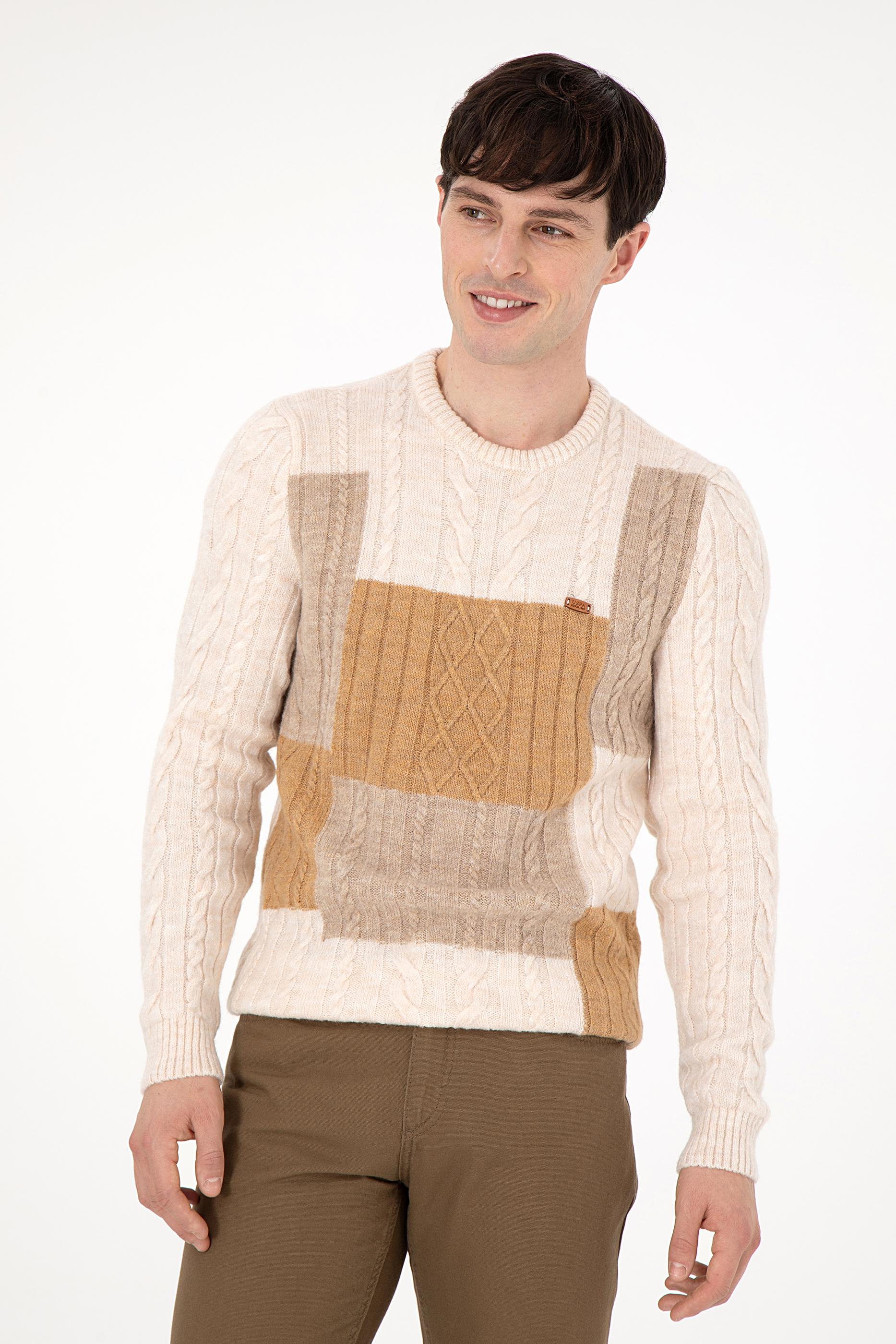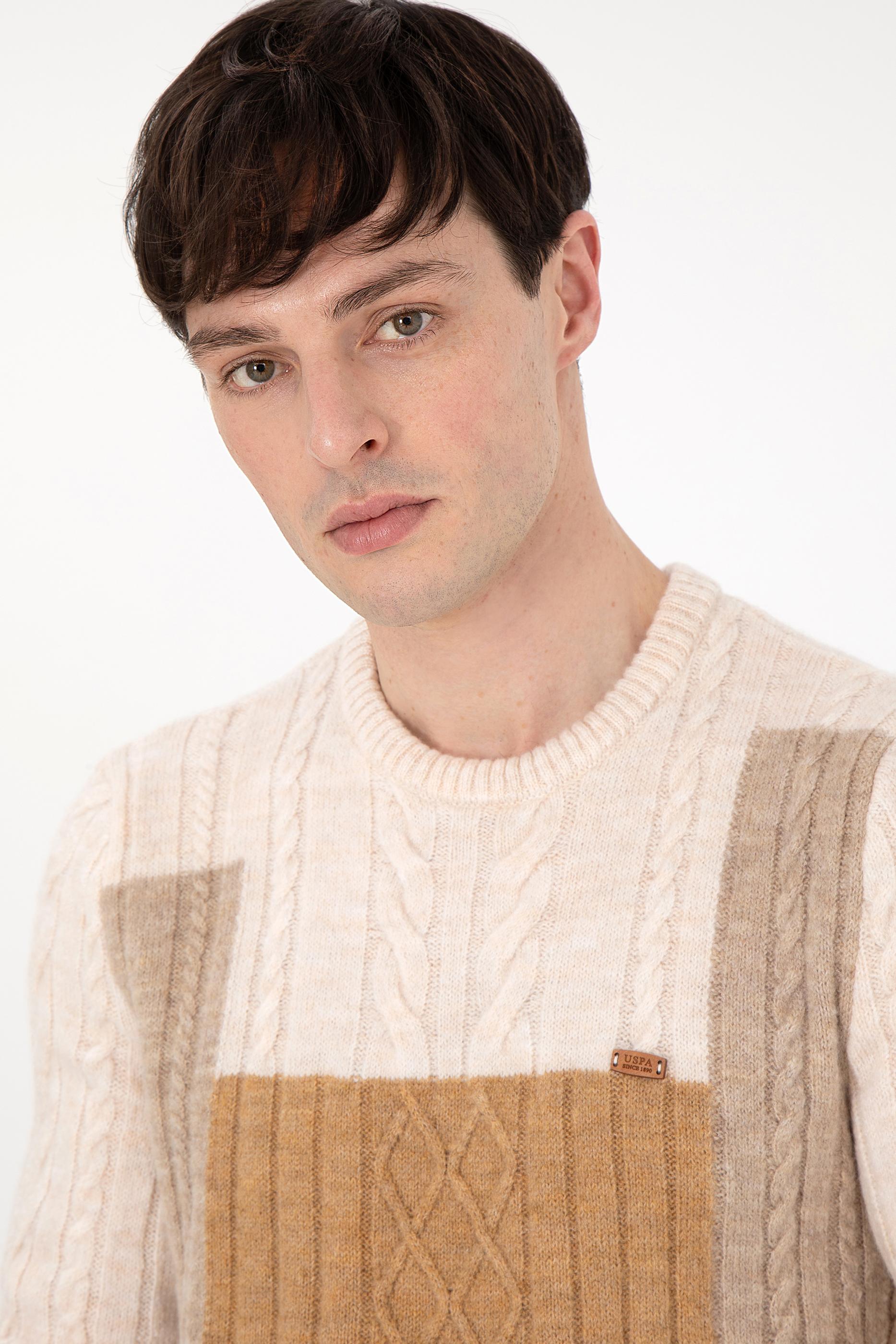 Erkek Regular Fit Bisiklet Yaka Krem Kazak