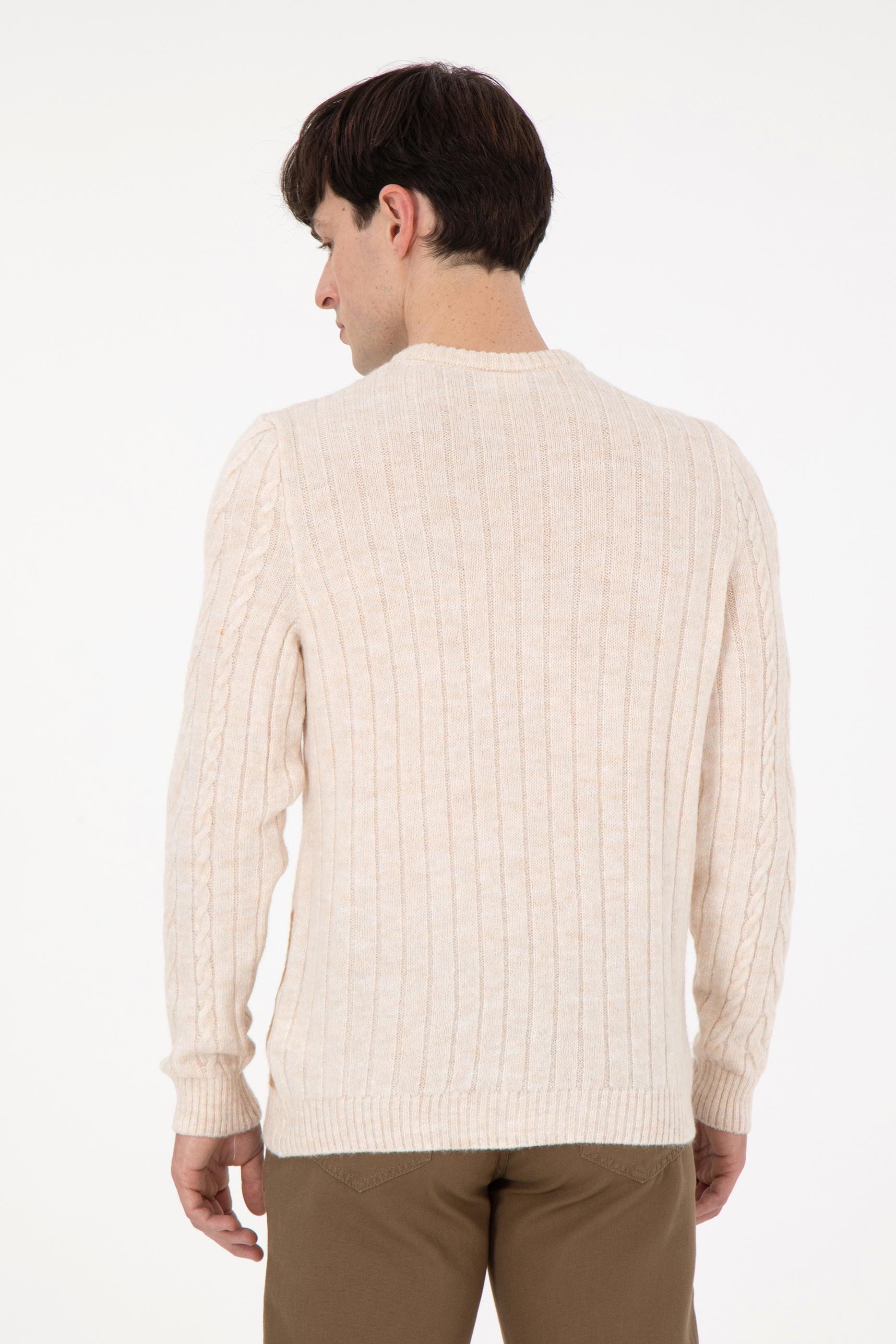 - Erkek Regular Fit Bisiklet Yaka Krem Kazak