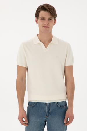 Erkek Slim Fit Polo Yaka Krem Tişört
