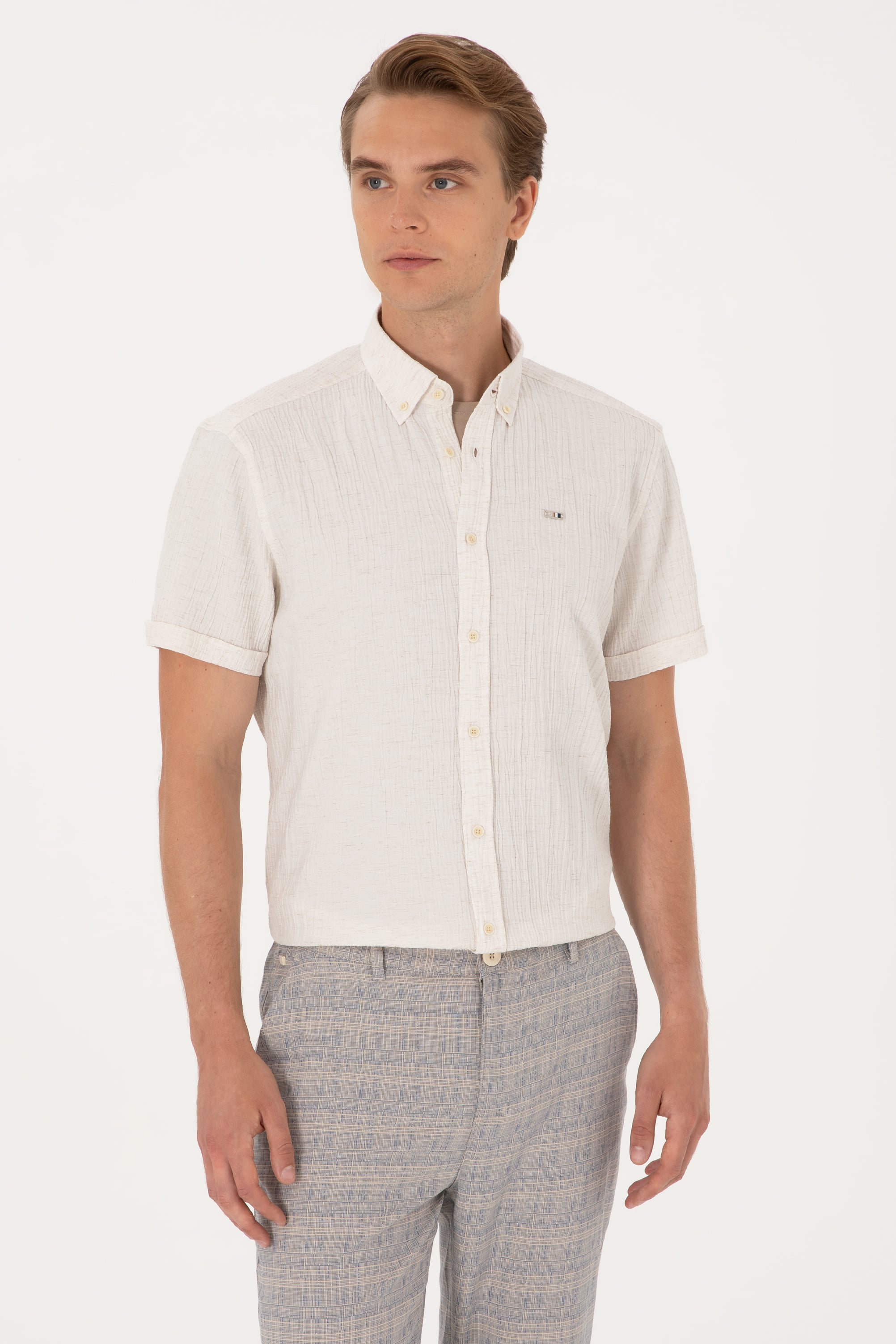 - Erkek Krem Kısa Kollu Gömlek
