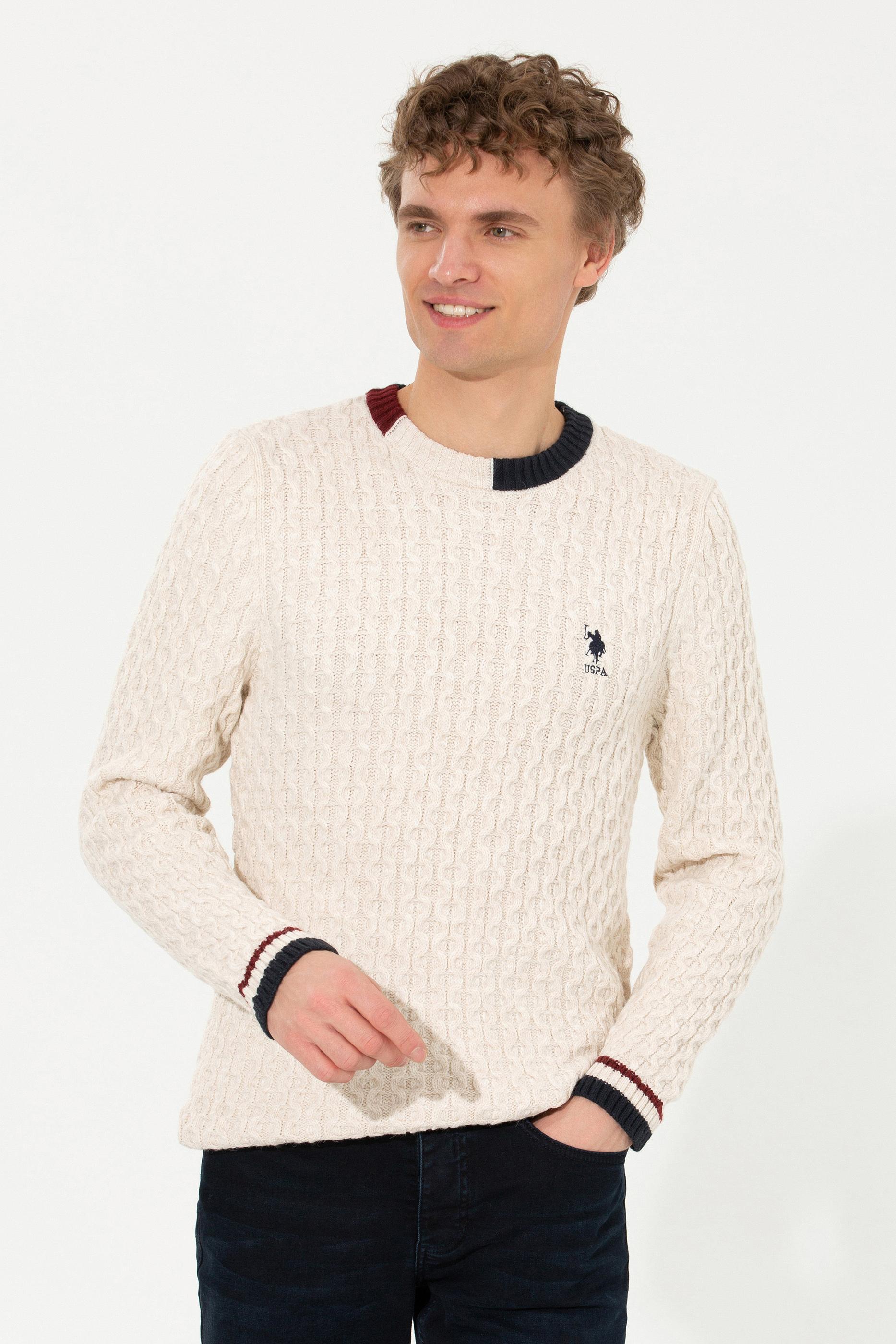 - Erkek Krem Melanj Bisiklet Yaka Triko Kazak