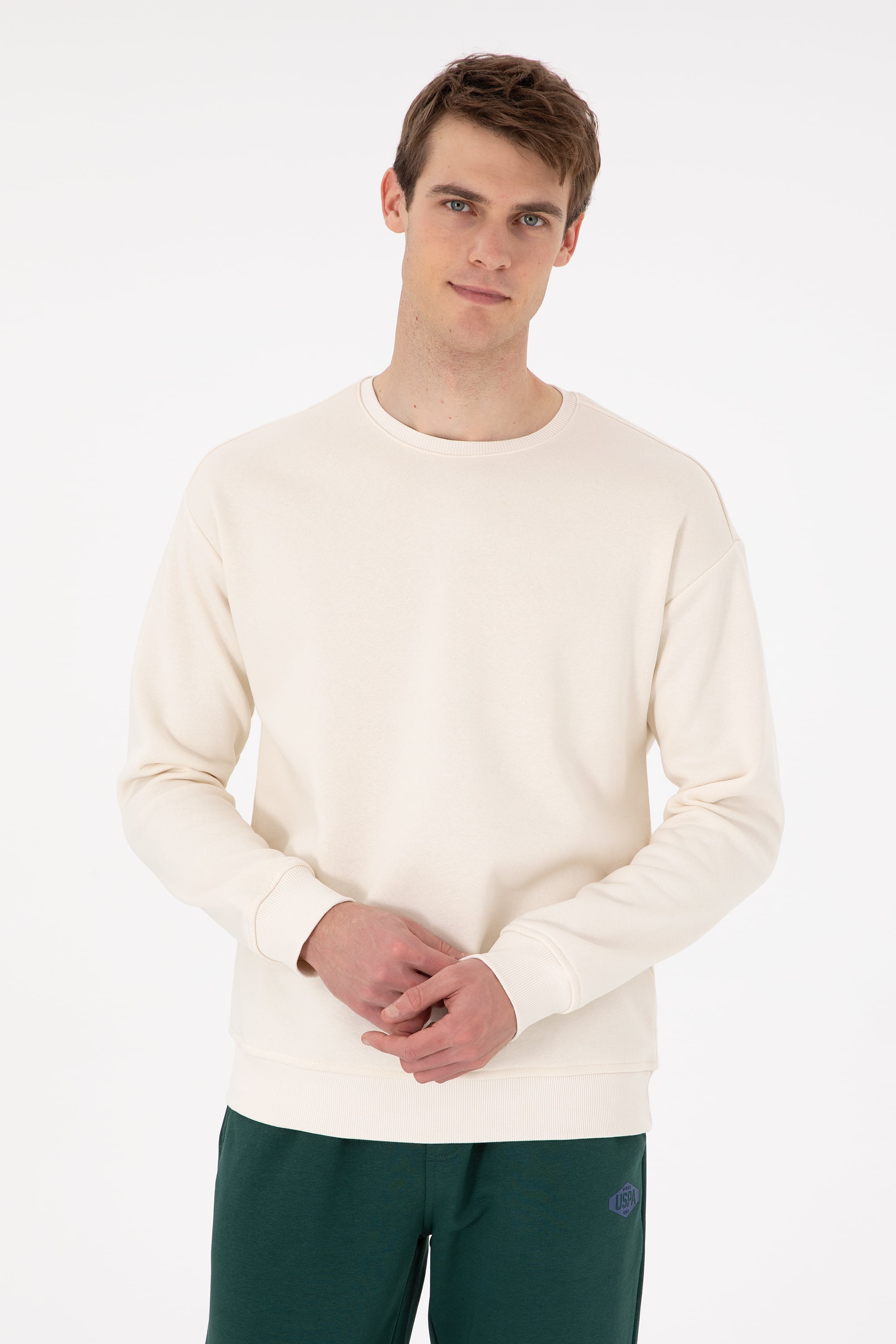 Erkek Comfort Fit Bisiklet Yaka Krem Sweatshirt