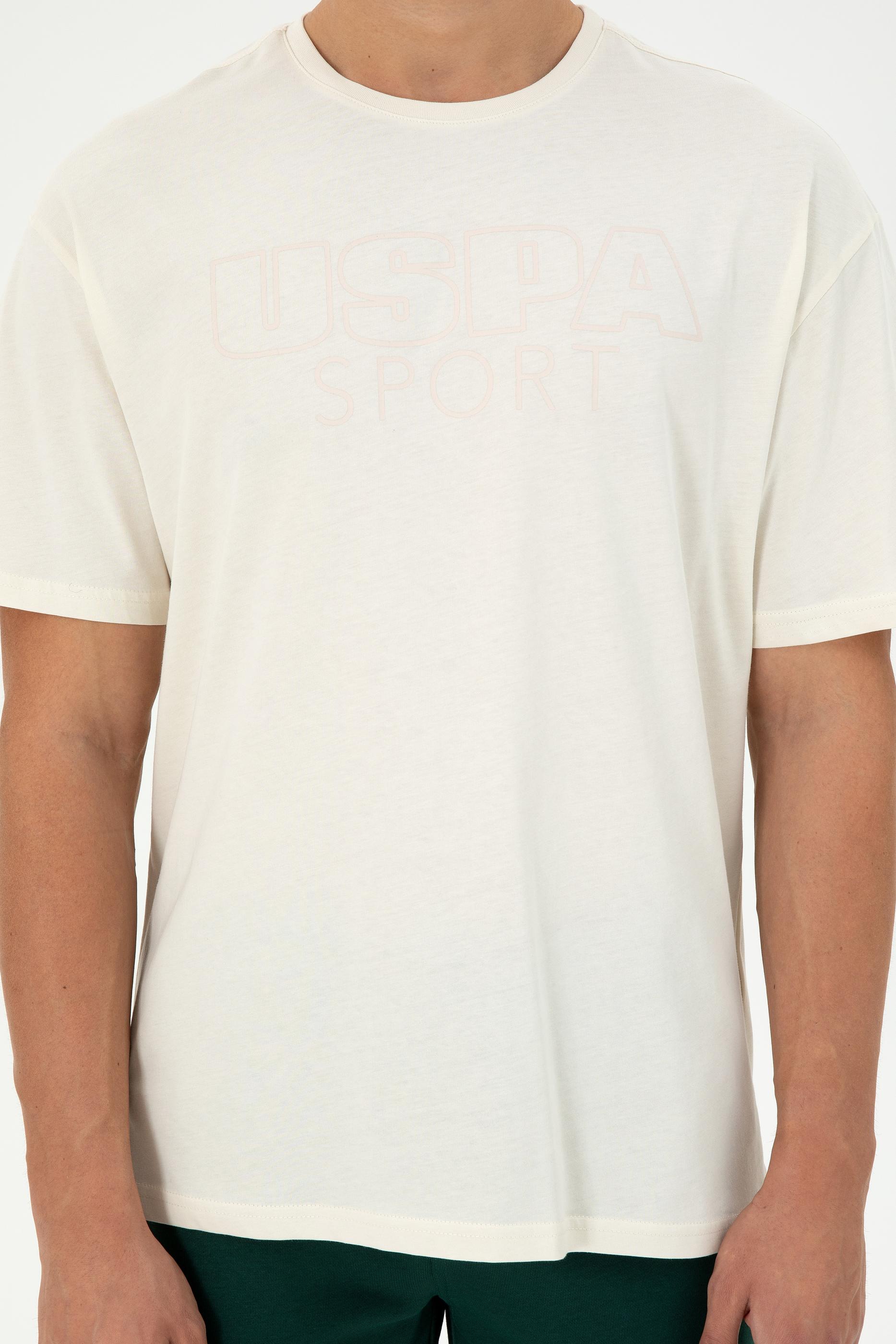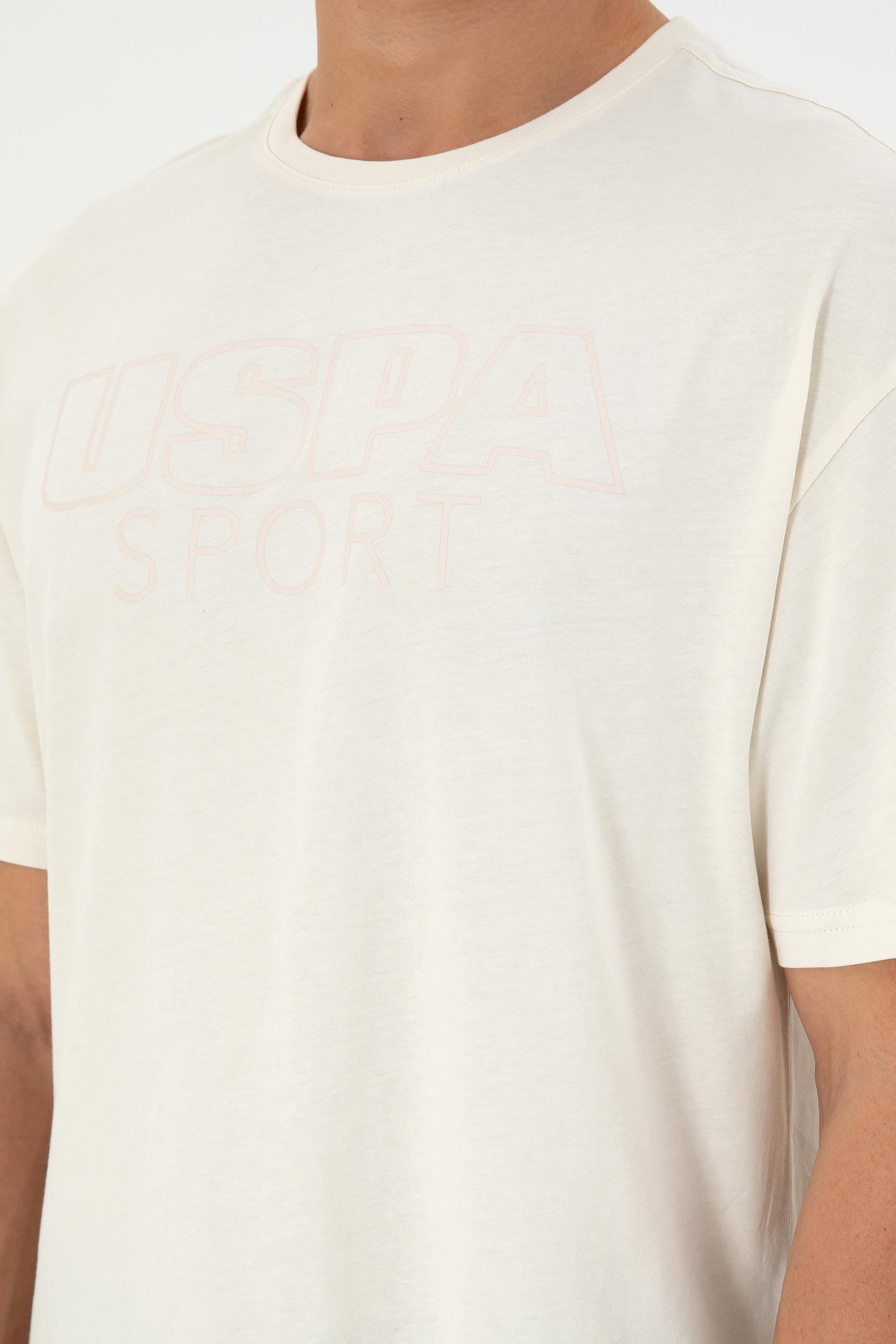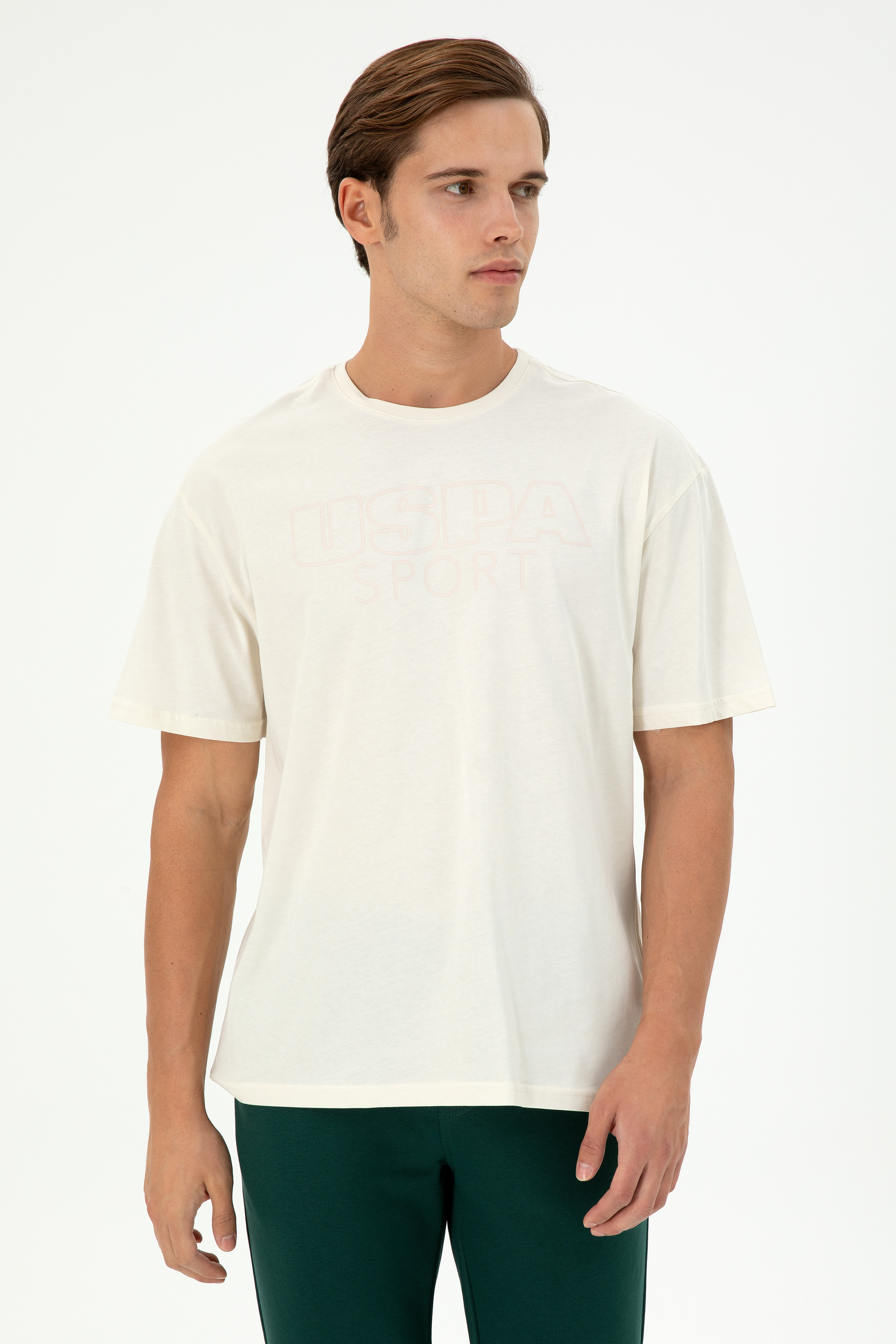 Erkek Comfort Fit Bisiklet Yaka Krem Tişört