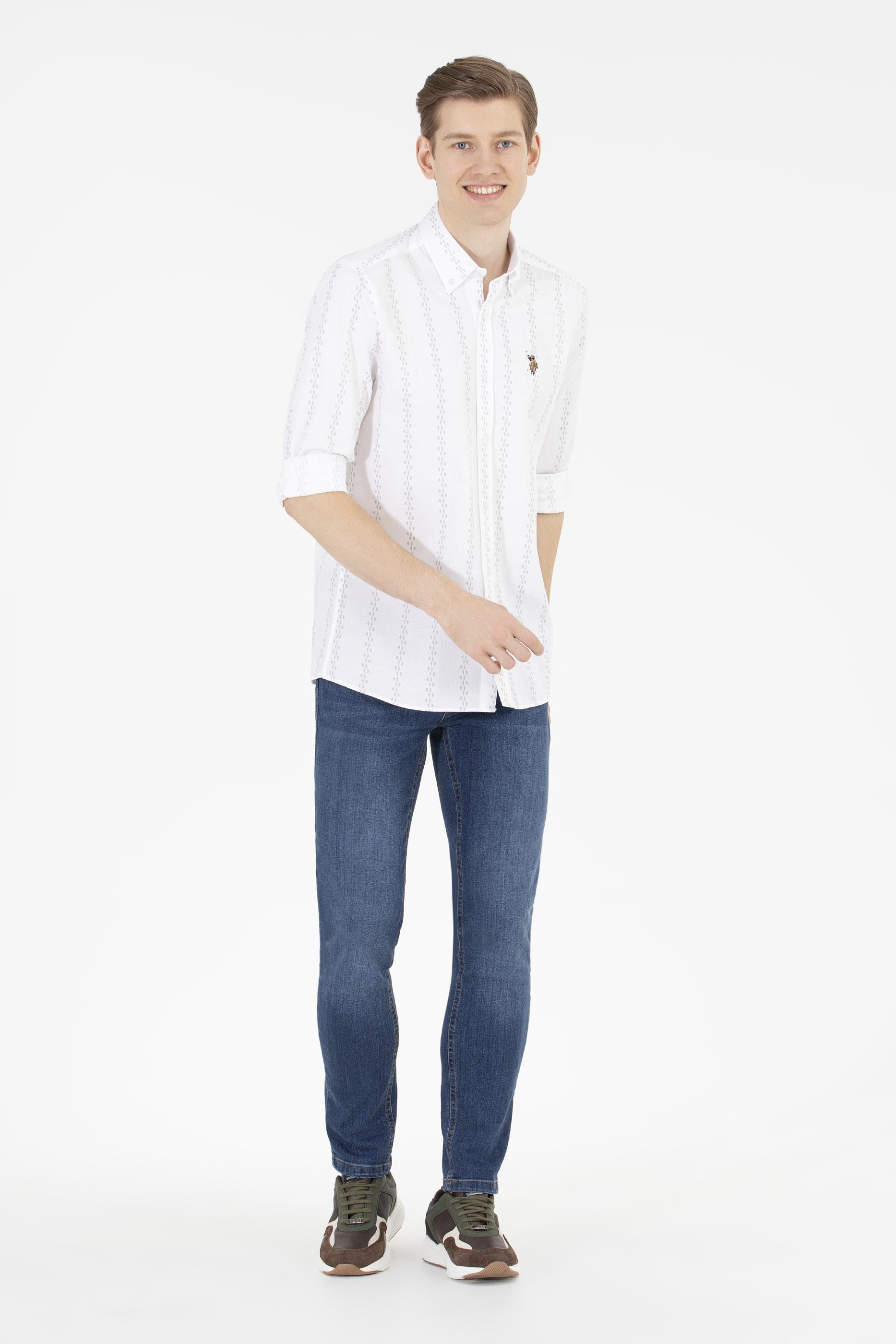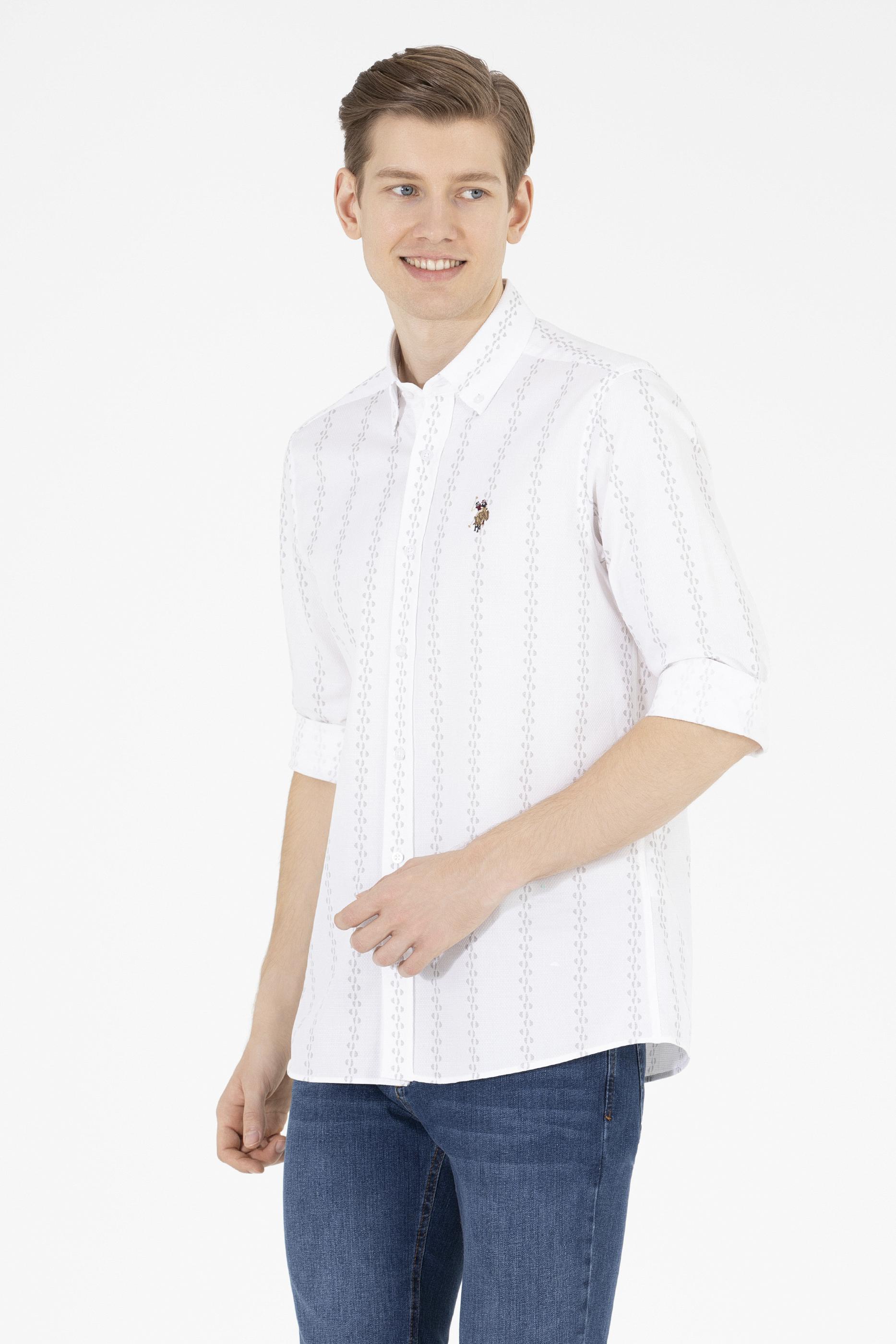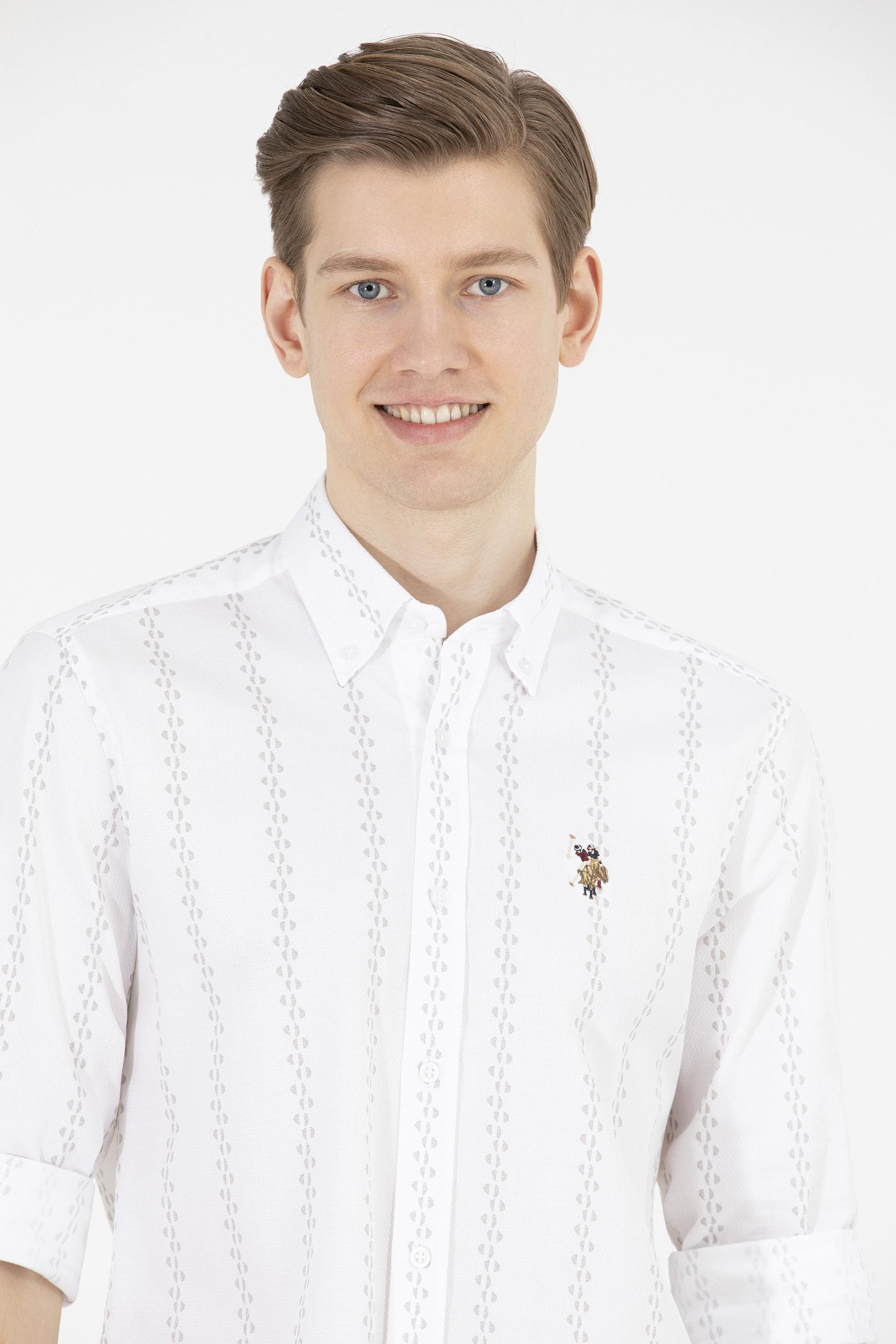 Erkek Krem Çizgili Beyaz Gömlek