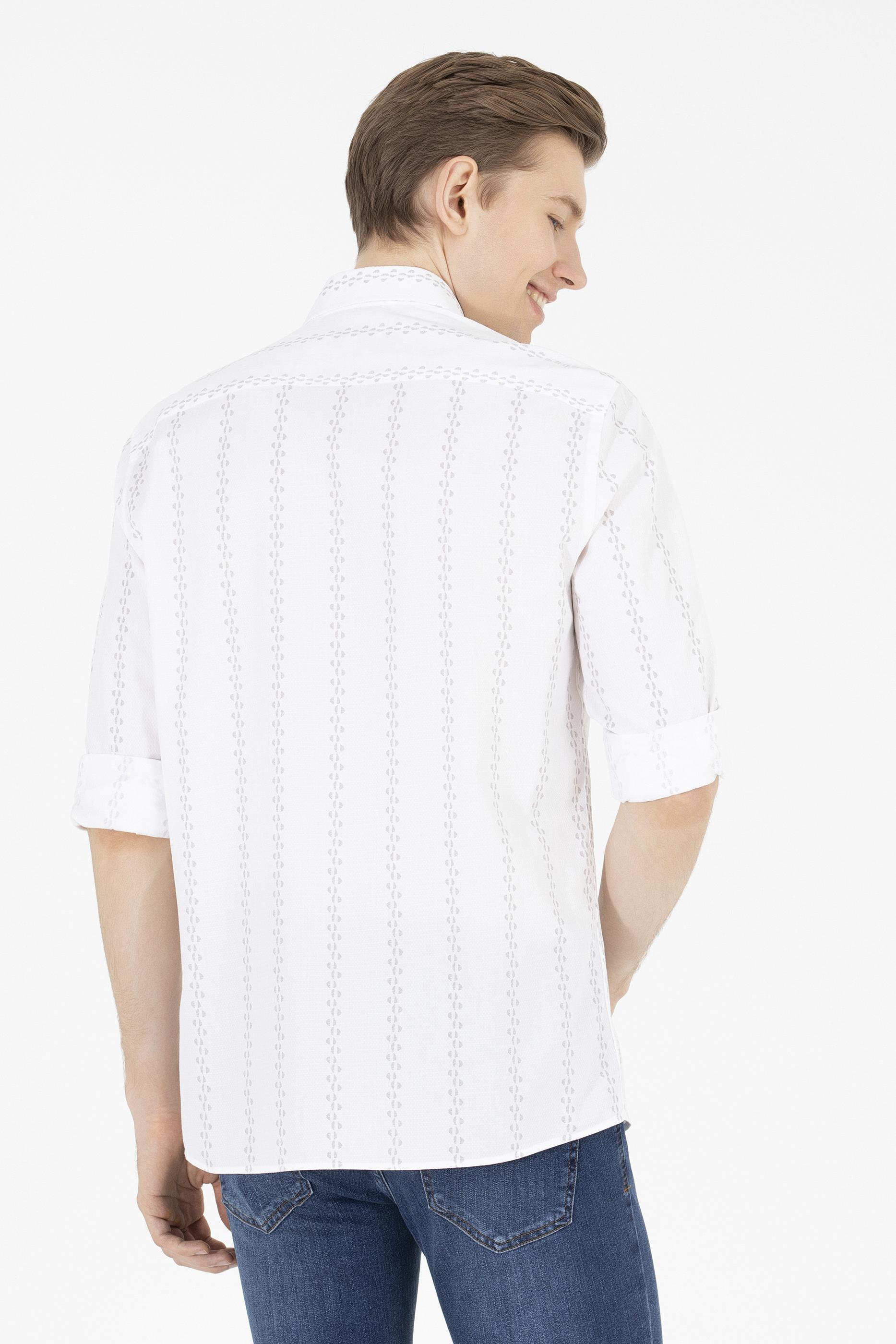 - Erkek Krem Çizgili Beyaz Gömlek
