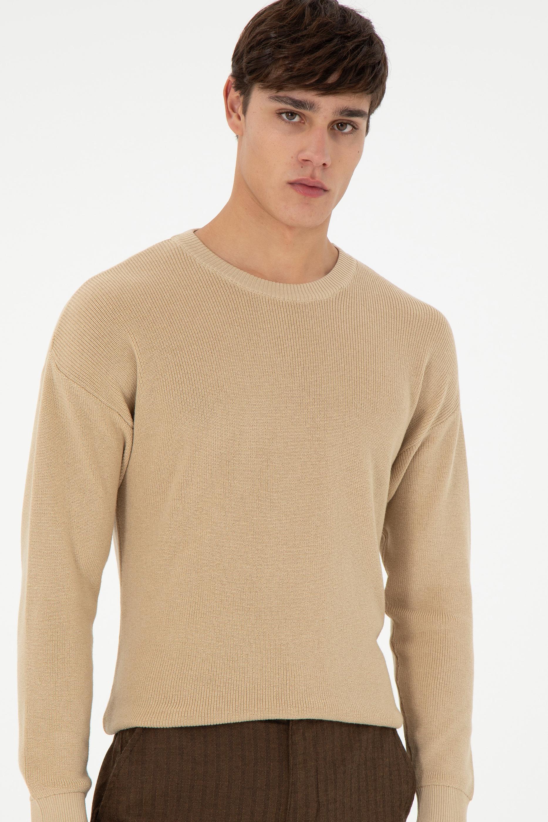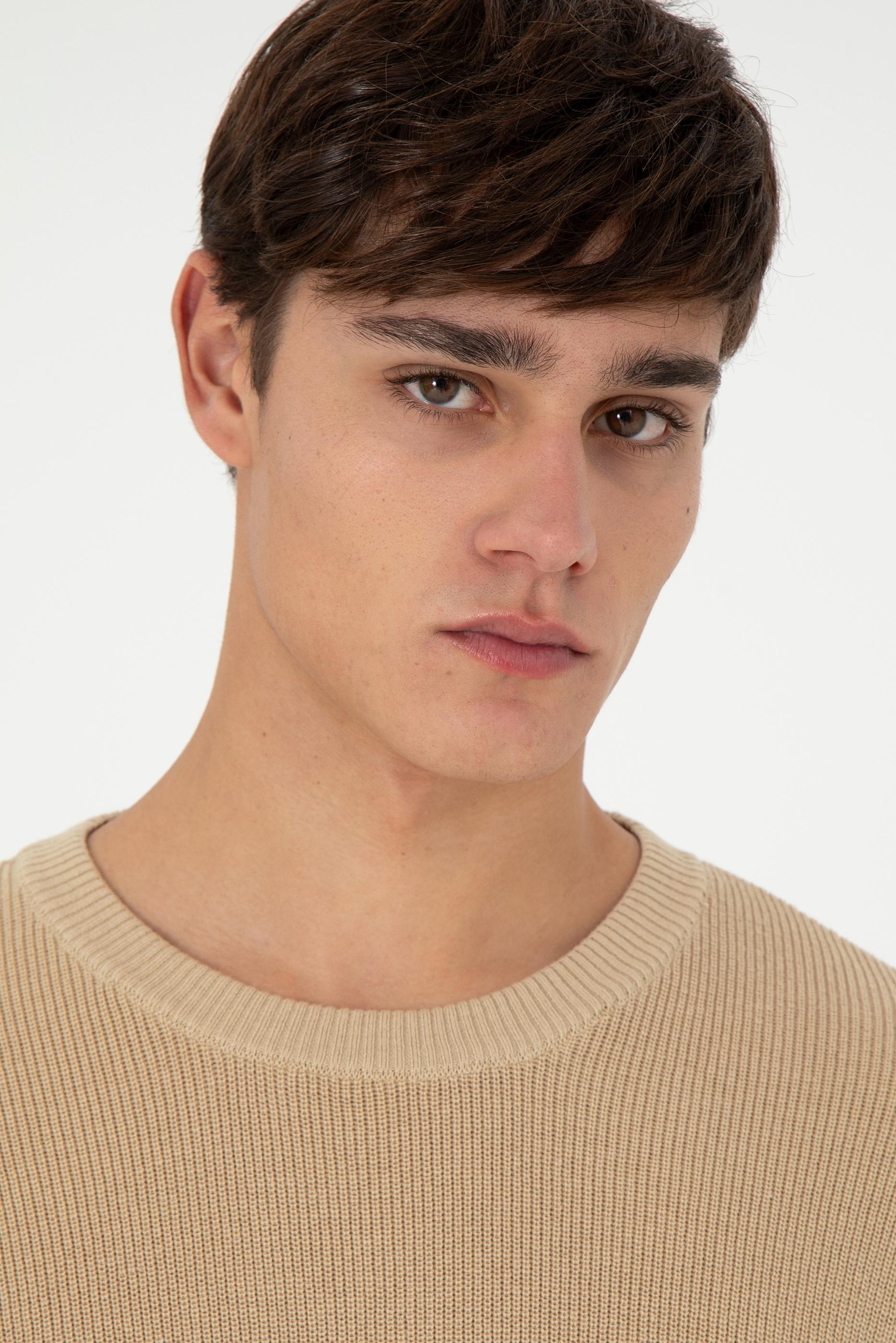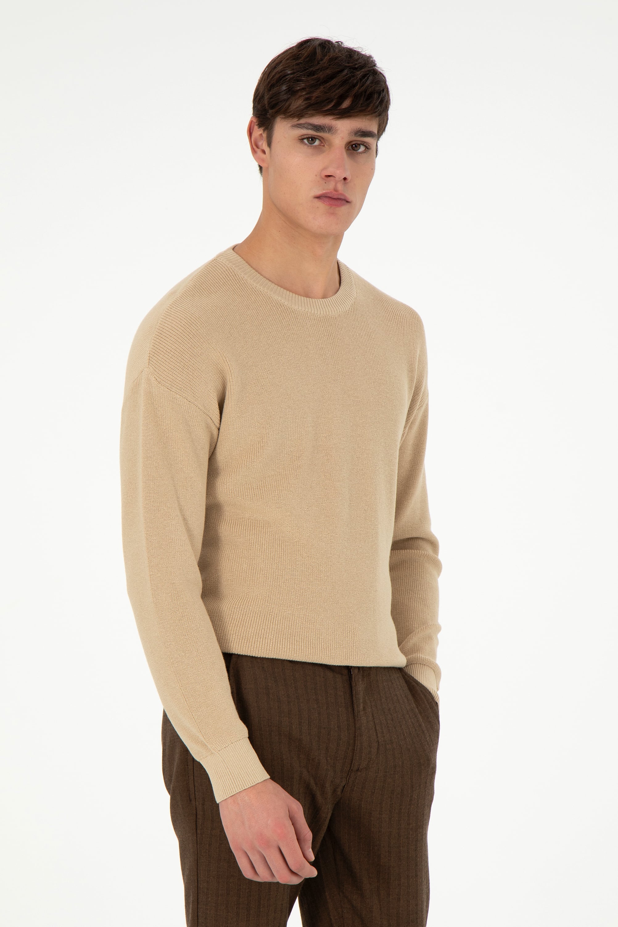 Erkek Regular Fit Bisiklet Yaka Kum Basic Kazak